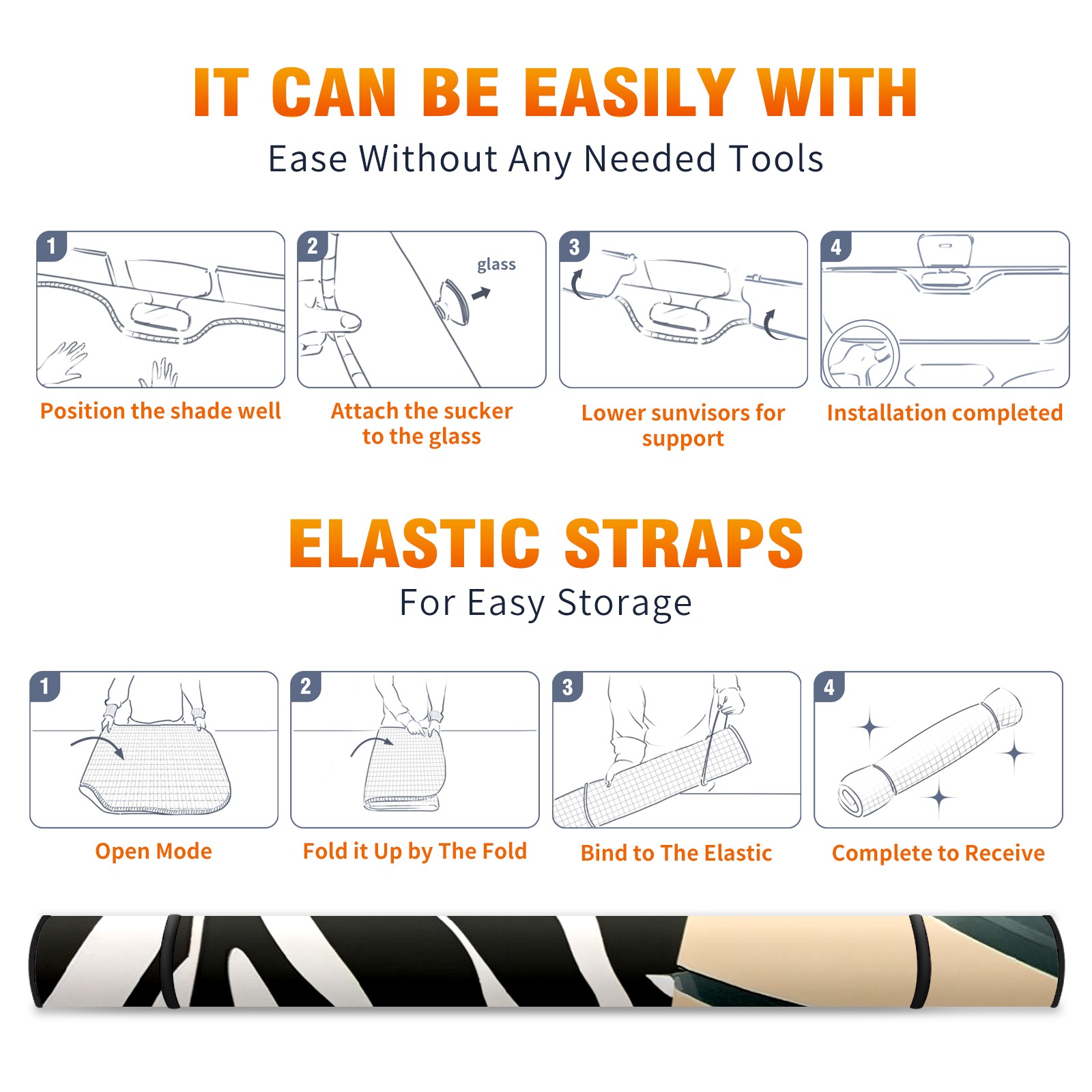 Diameter /Size 63"L x 33.5"W</b><br> Made from excellent materials which makes it sturdy and protects the car from the sun. Easy to use and pack. Makes the interior of the car cooler.You can easily stash the sunshade in the storage bag or store long term.It open and closes easy. Also the leather storage bag is durable and easy to put the umbrella back into.This windshield sunshade provides complete coverage and keeps your car interior cool under direct sun. It is easy to open and position under the windshield and around the rear-view mirror. Makes Your Car Easy To Identify, Perfect For Finding Your Car In Crowded Parking Lots And Garages.Great Choice: It Is A Great Gift For Dad, Boyfriend, Brother, Brother And Uncle, Friends, Classmates, Family And So On.<br> Notice:</b><br> Due To Difference Computer Monitors, The Color Maybe Slightly Different From Picture. As Different Measurement Methods, Measurement Data Will Float Within 2%.I Hope You Understand.<br> If You Have Any Question About The Item Please Do Not Hesitate To Contact Us Immediately And We Will Give You A Satisfactory Reply Within 24 Hours.