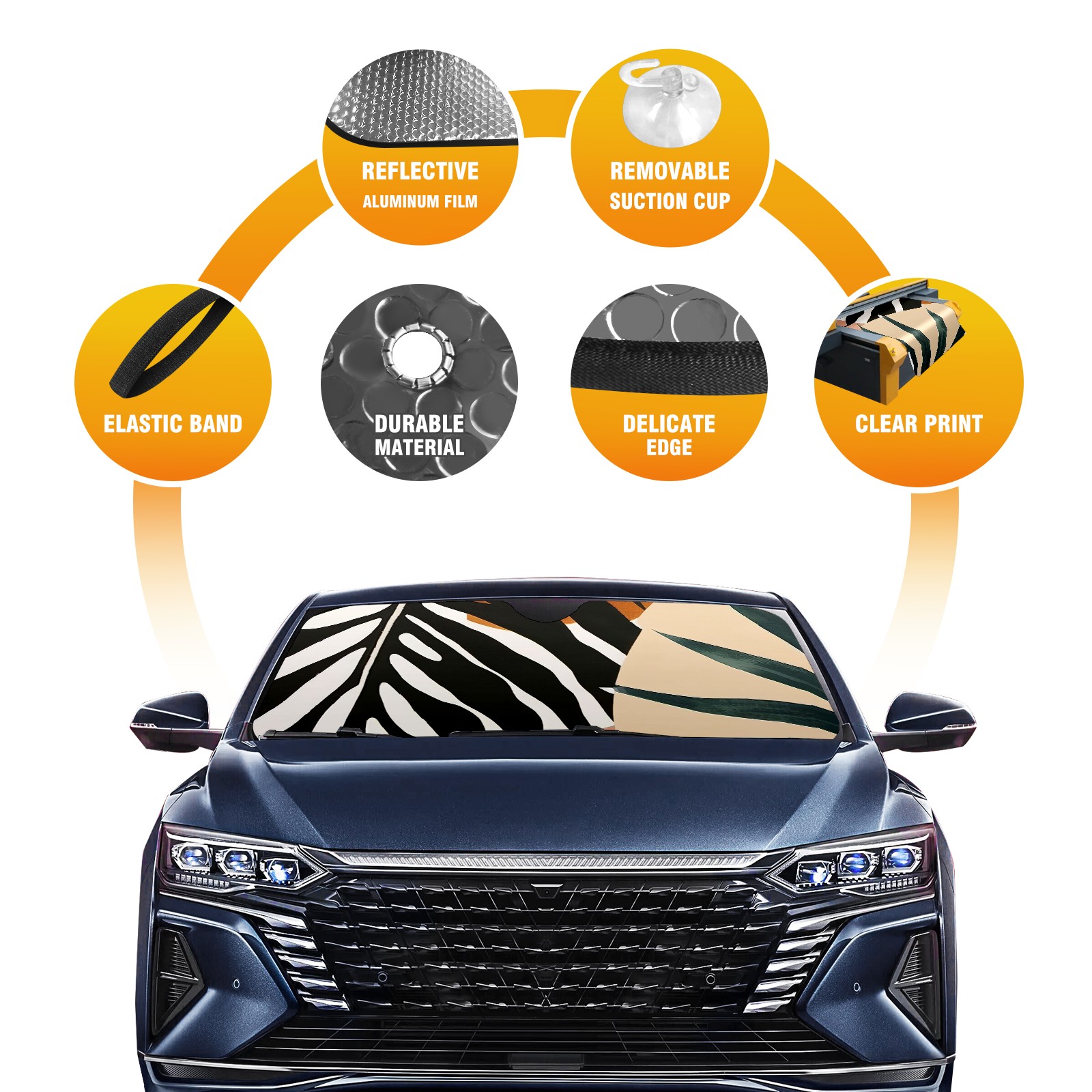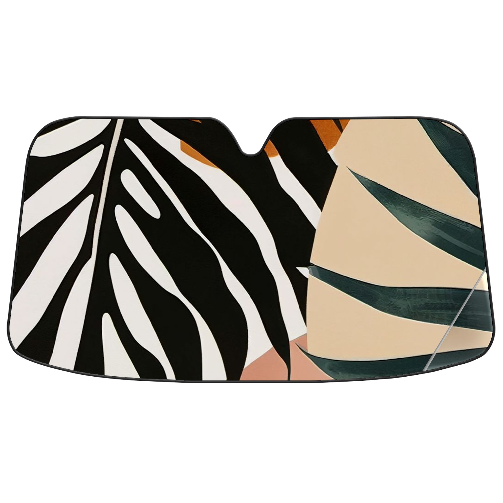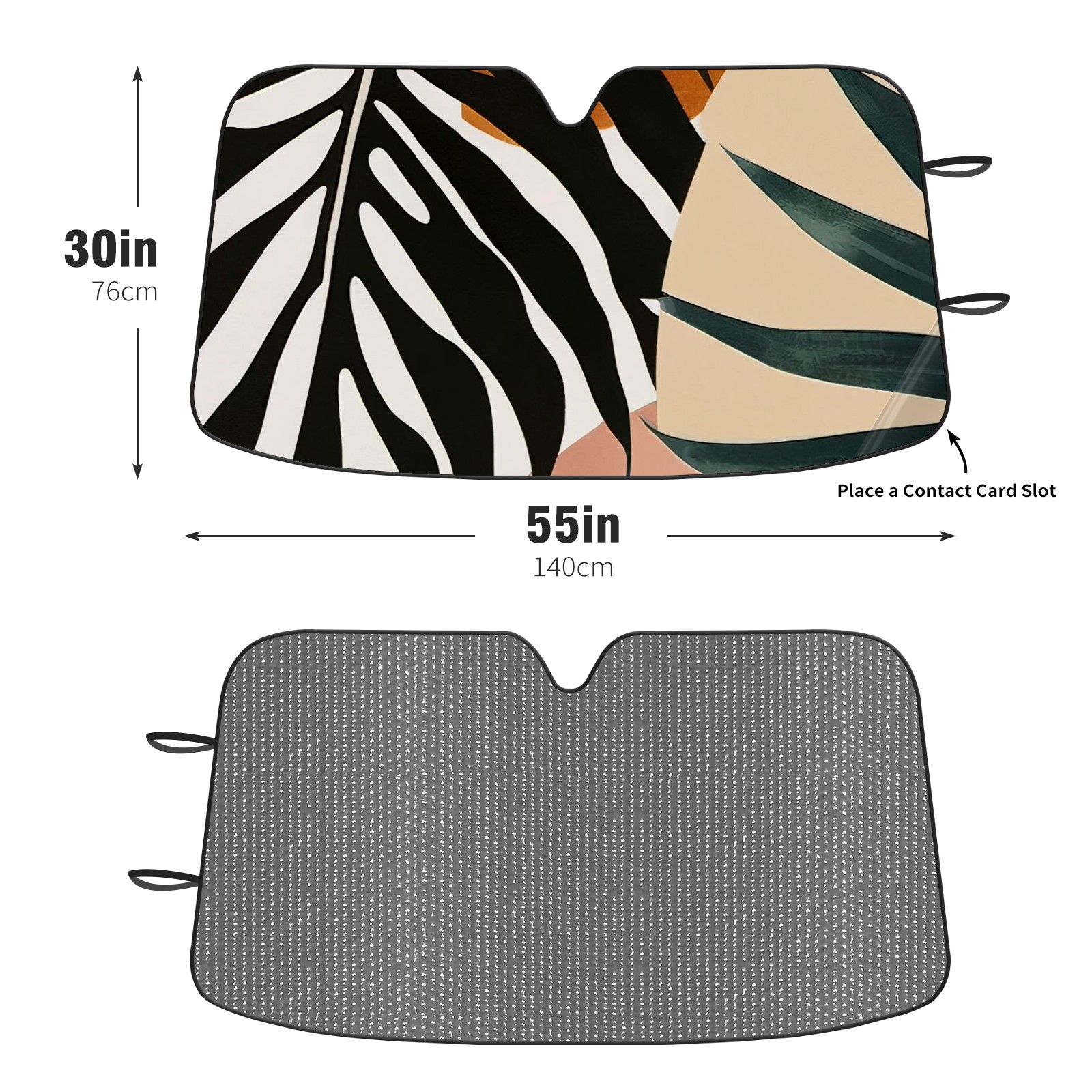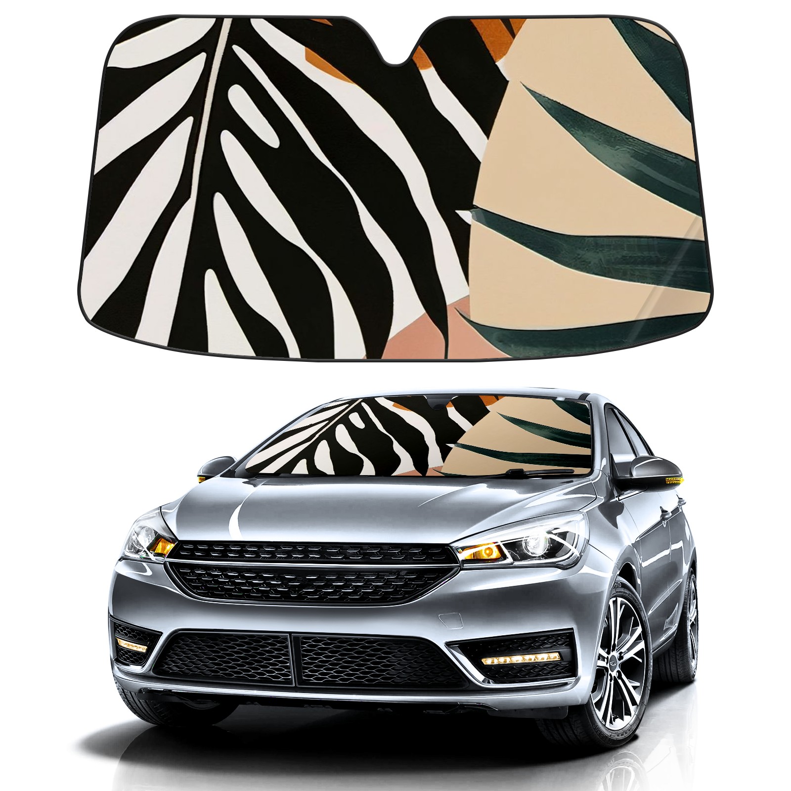 Car Windshield Sun Shade for Front Window Gold Painting Boho Leaves Foldable Vehicle Windshield Car Sun Visor Covers Automotive Window Protector Car Camping Privacy Sun Blocker