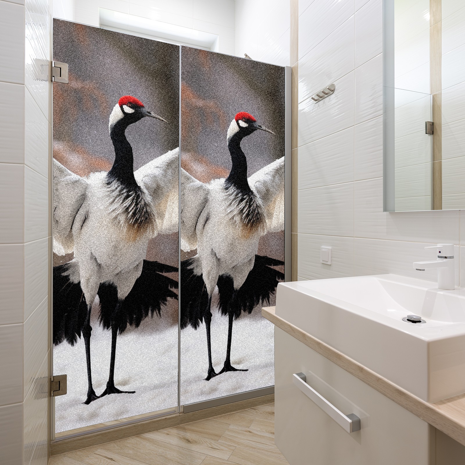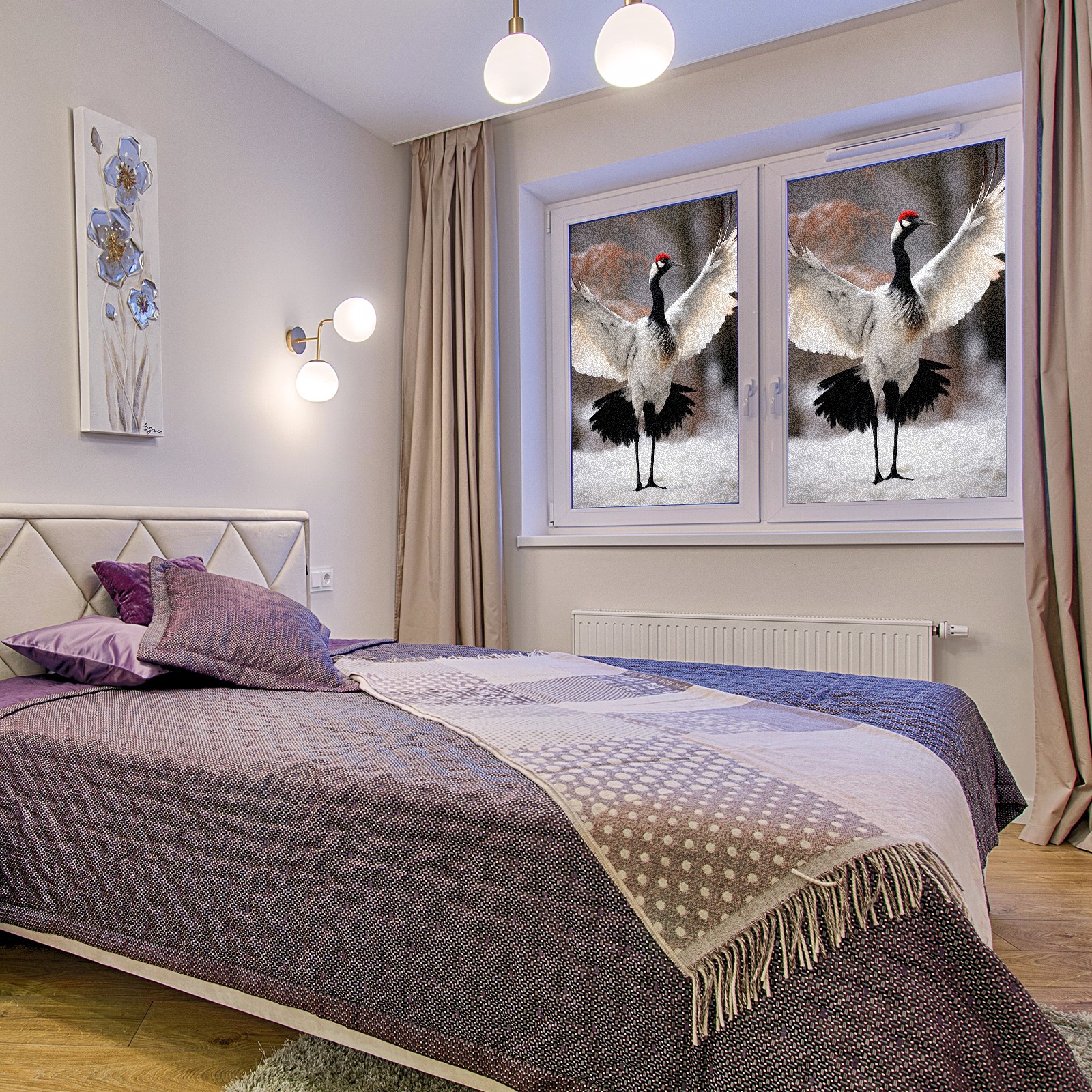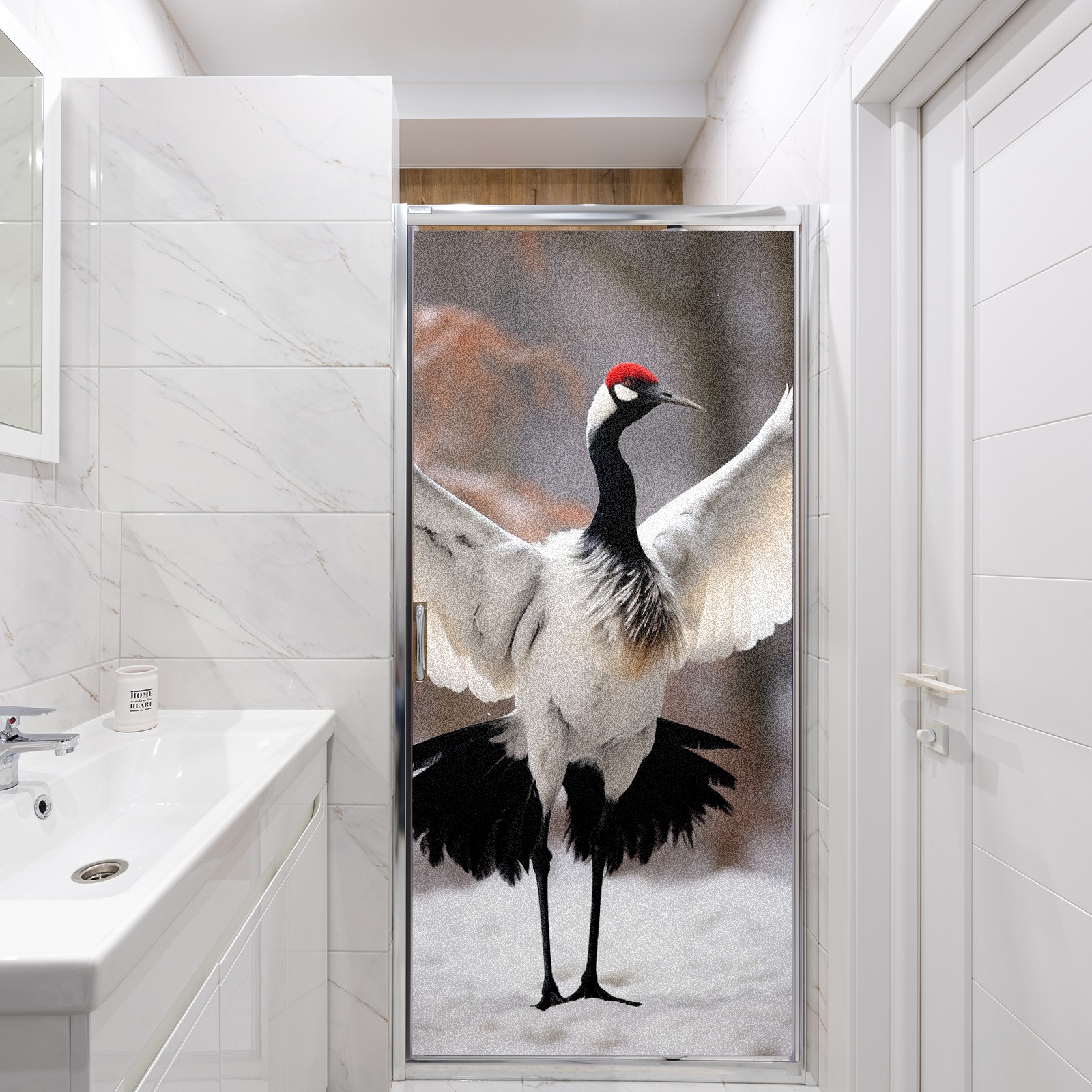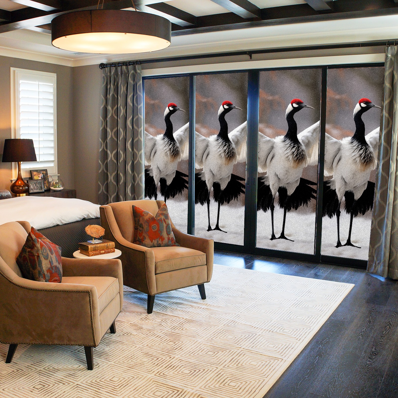 Static Cling Decorative Window Film Frosted Privacy Film Window Clings for Glass Windows No Glue Window Sticker for Bathroom Bedroom Office Crane