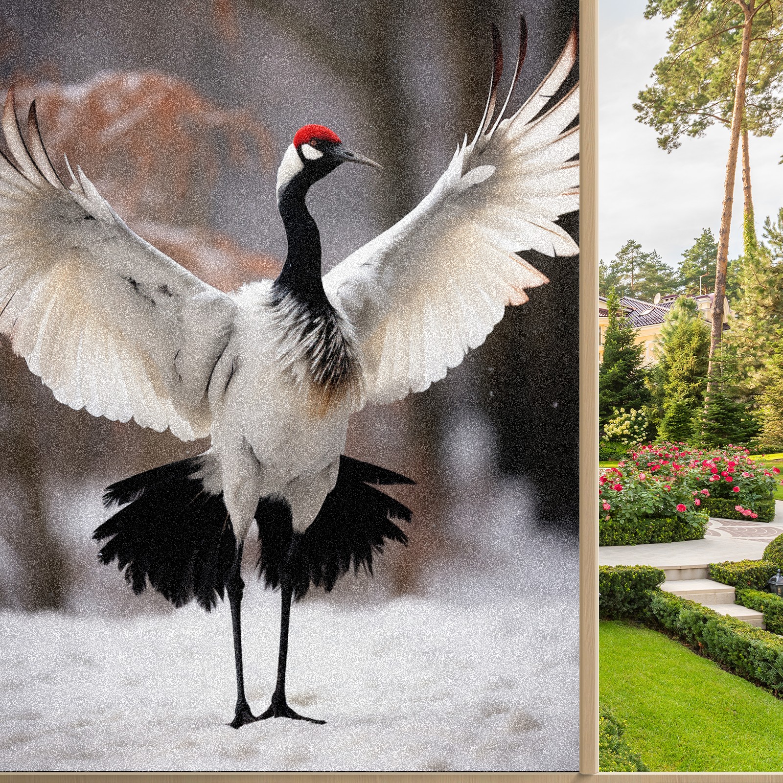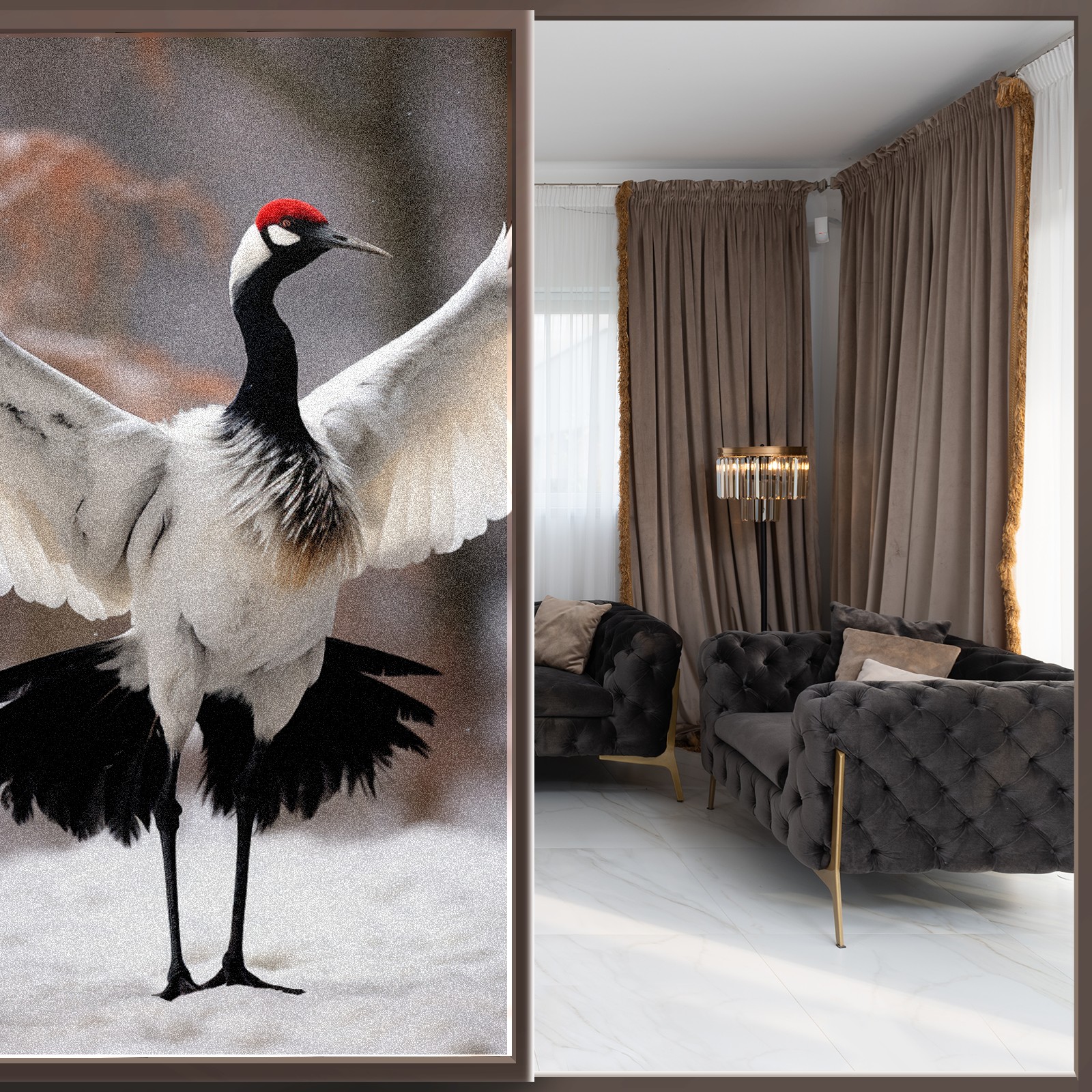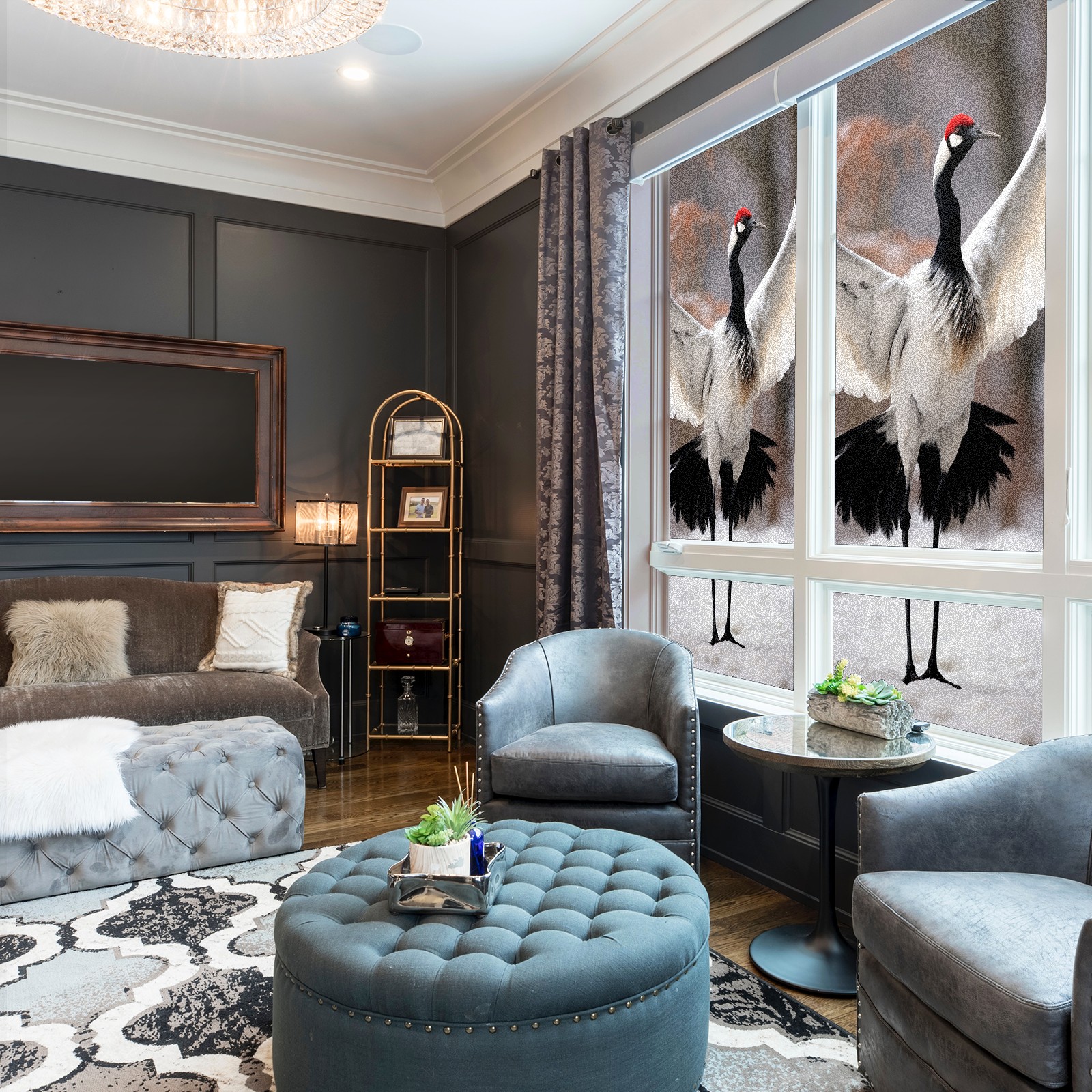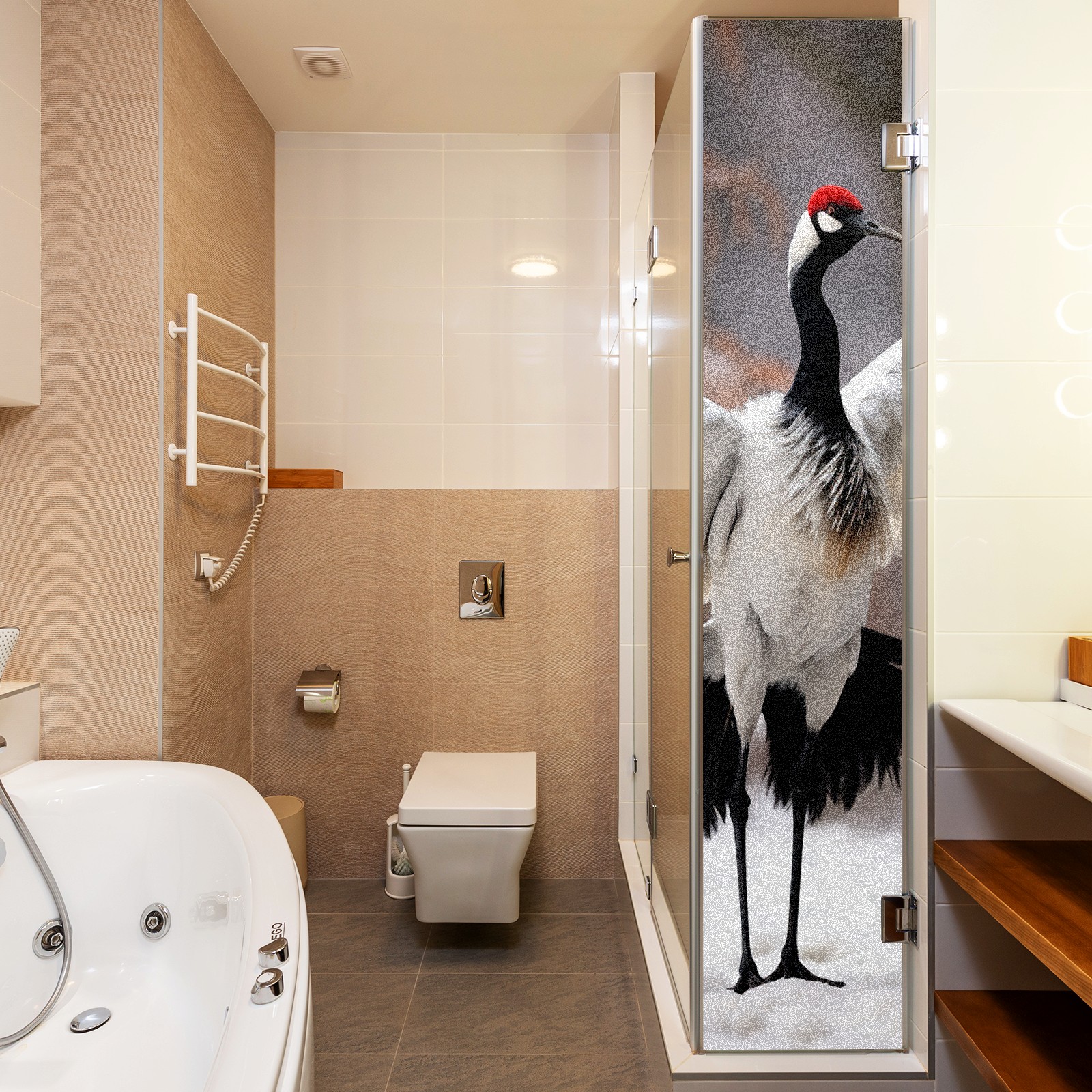 Static Cling Decorative Window Film Frosted Privacy Film Window Clings for Glass Windows No Glue Window Sticker for Bathroom Bedroom Office Crane
