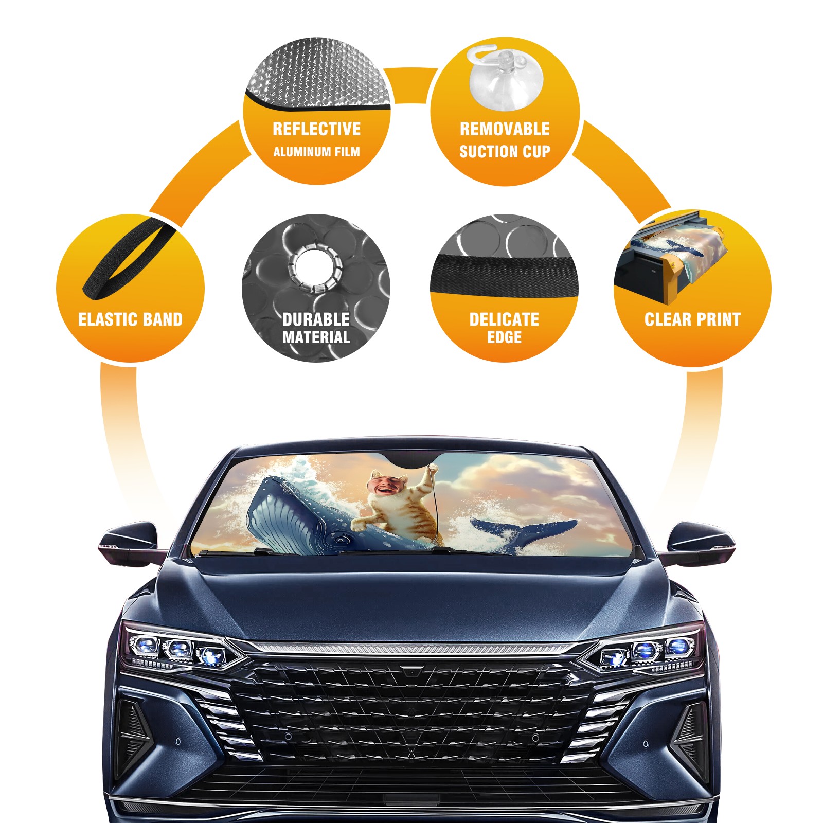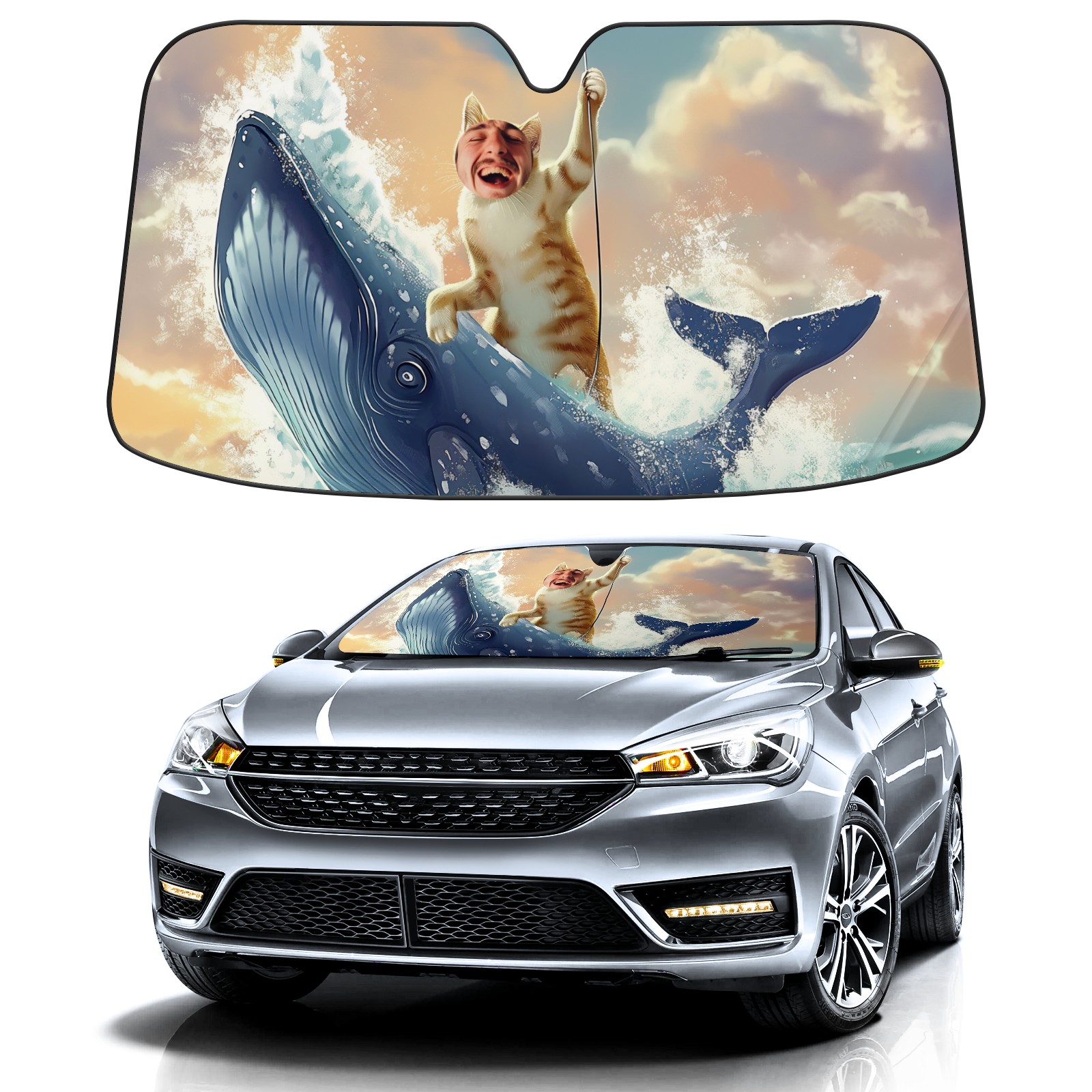 Car Windshield Sun Shade for Front Window 有趣头像浴帘 Foldable Vehicle Windshield Car Sun Visor Covers Automotive Window Protector Car Camping Privacy Sun Blocker