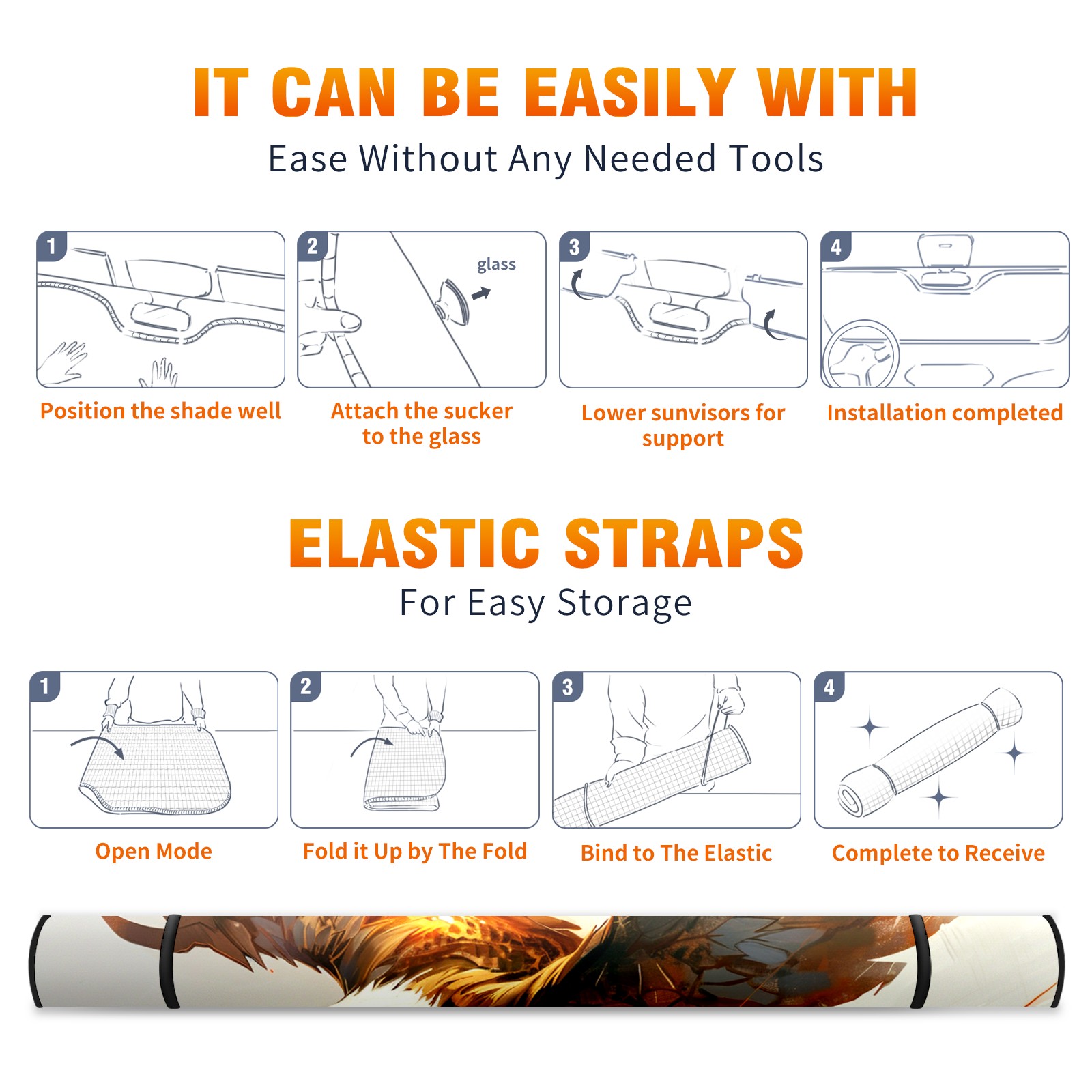 Car Windshield Sun Shade for Front Window Eagle Foldable Vehicle Windshield Car Sun Visor Covers Automotive Window Protector Car Camping Privacy Sun Blocker
