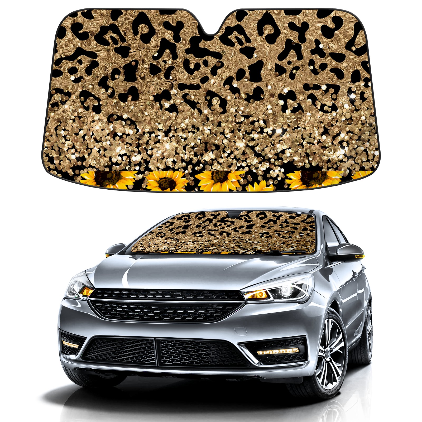 Car Windshield Sun Shade for Front Window Leopard Sunflower (1) Foldable Vehicle Windshield Car Sun Visor Covers Automotive Window Protector Car Camping Privacy Sun Blocker