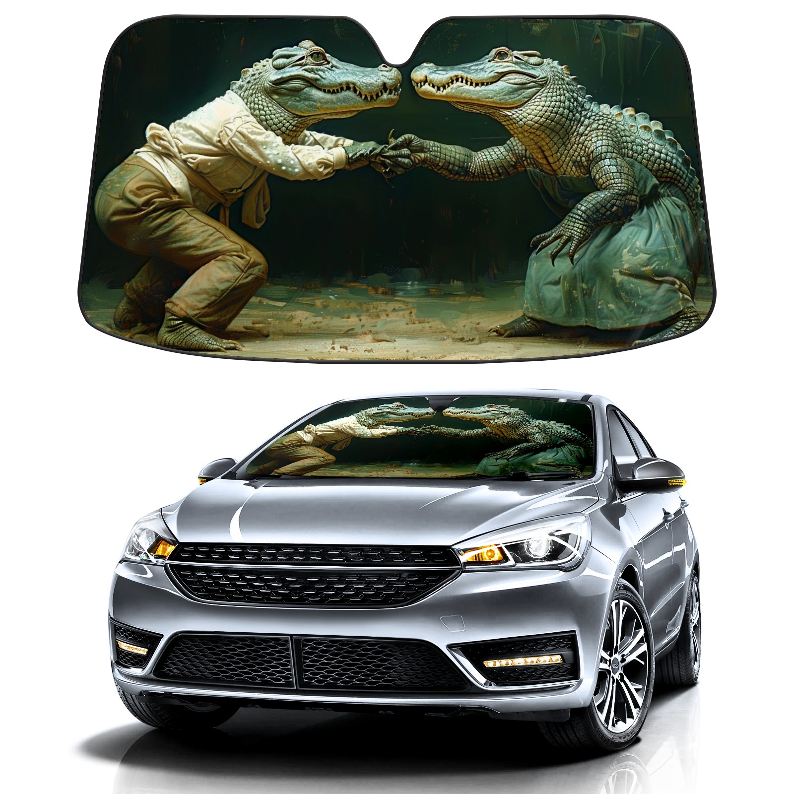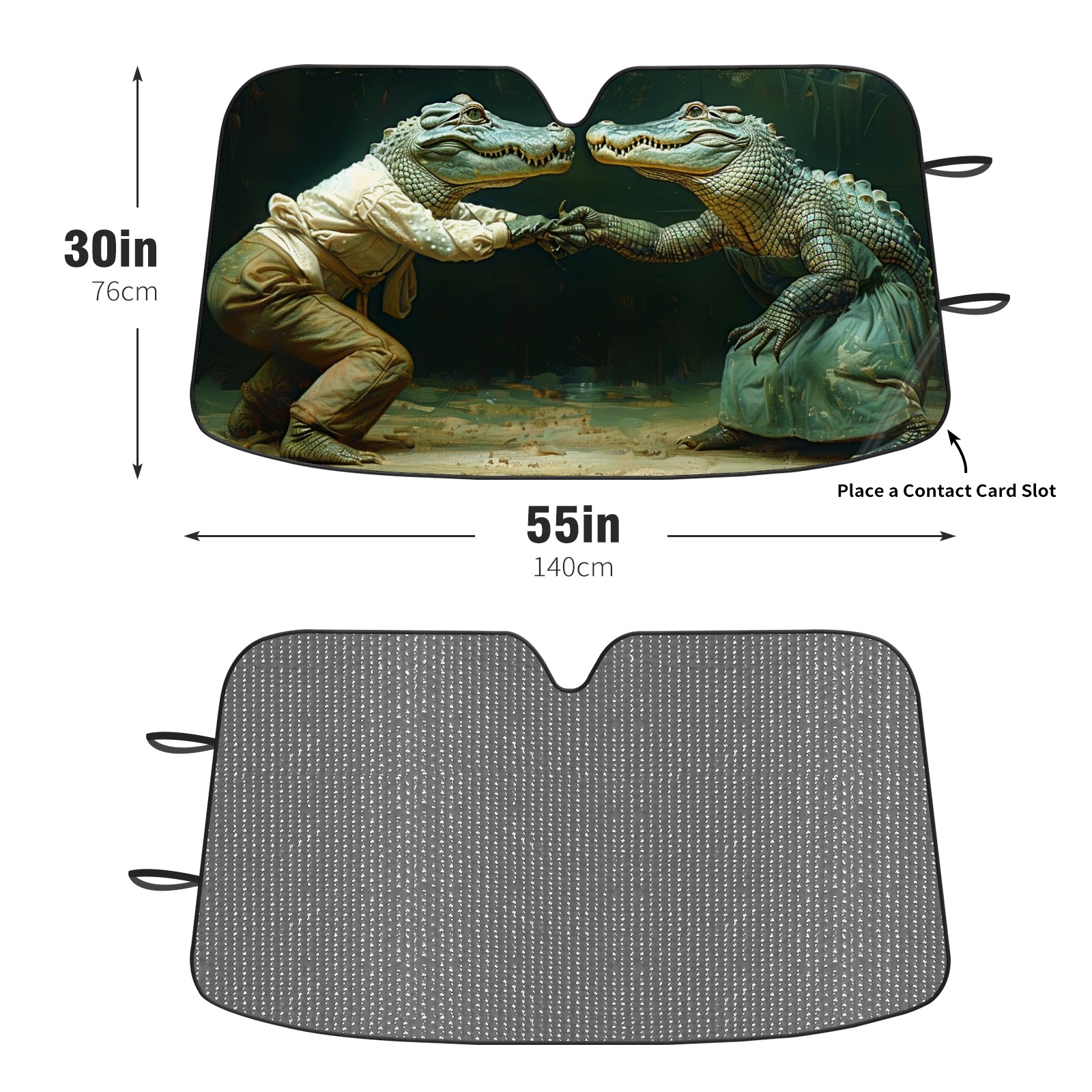 Car Windshield Sun Shade for Front Window Funny Crocodile Foldable Vehicle Windshield Car Sun Visor Covers Automotive Window Protector Car Camping Privacy Sun Blocker