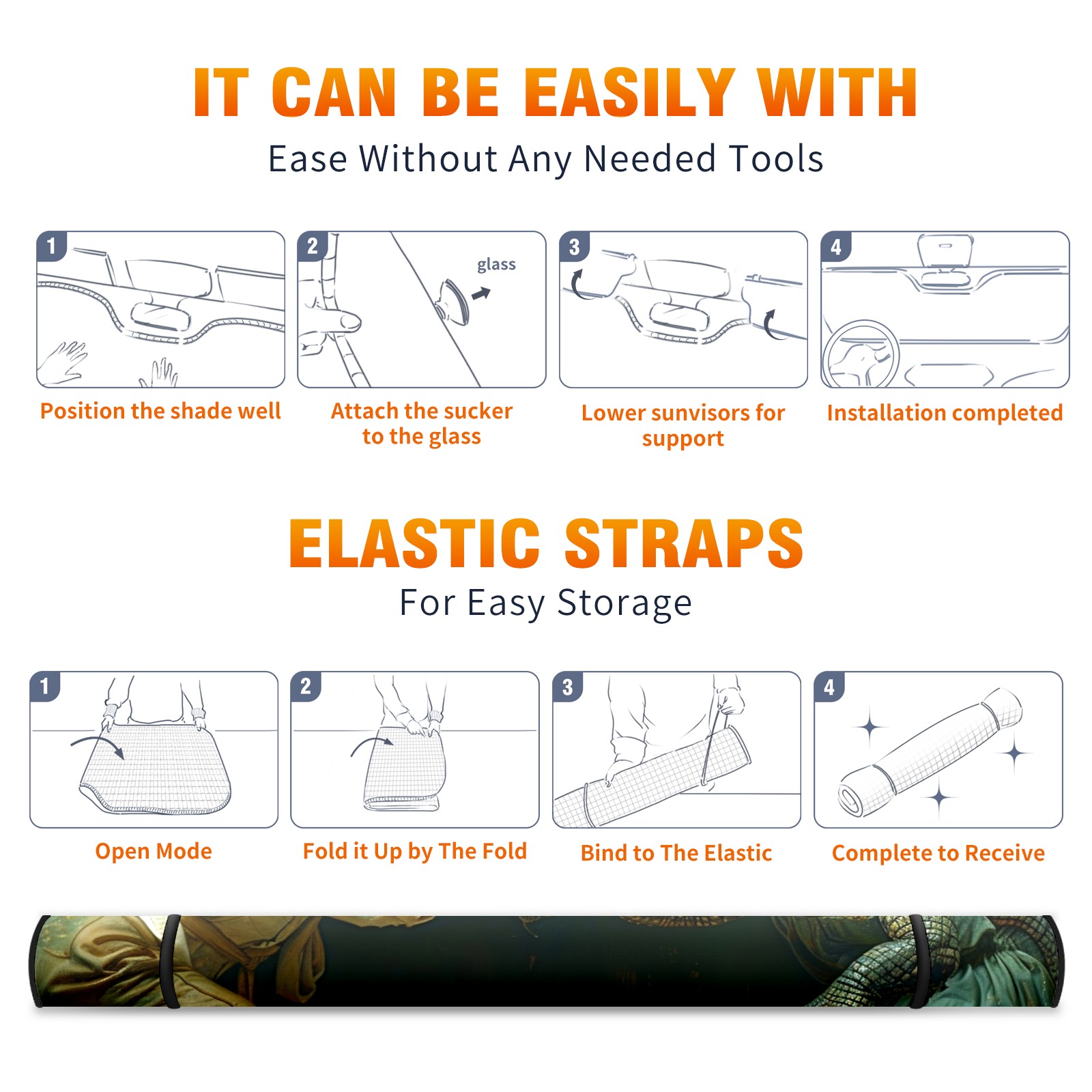 • Diameter /Size 63"L x 33.5"W</b><br> Made from excellent materials which makes it sturdy and protects the car from the sun. Easy to use and pack. Makes the interior of the car cooler.You can easily stash the sunshade in the storage bag or store long term.It open and closes easy. Also the leather storage bag is durable and easy to put the umbrella back into.This windshield sunshade provides complete coverage and keeps your car interior cool under direct sun. It is easy to open and position under the windshield and around the rear-view mirror. Makes Your Car Easy To Identify, Perfect For Finding Your Car In Crowded Parking Lots And Garages.Great Choice: It Is A Great Gift For Dad, Boyfriend, Brother, Brother And Uncle, Friends, Classmates, Family And So On.<br> Notice:</b><br> Due To Difference Computer Monitors, The Color Maybe Slightly Different From Picture. As Different Measurement Methods, Measurement Data Will Float Within 2%.I Hope You Understand.<br> If You Have Any Question About The Item Please Do Not Hesitate To Contact Us Immediately And We Will Give You A Satisfactory Reply Within 24 Hours.