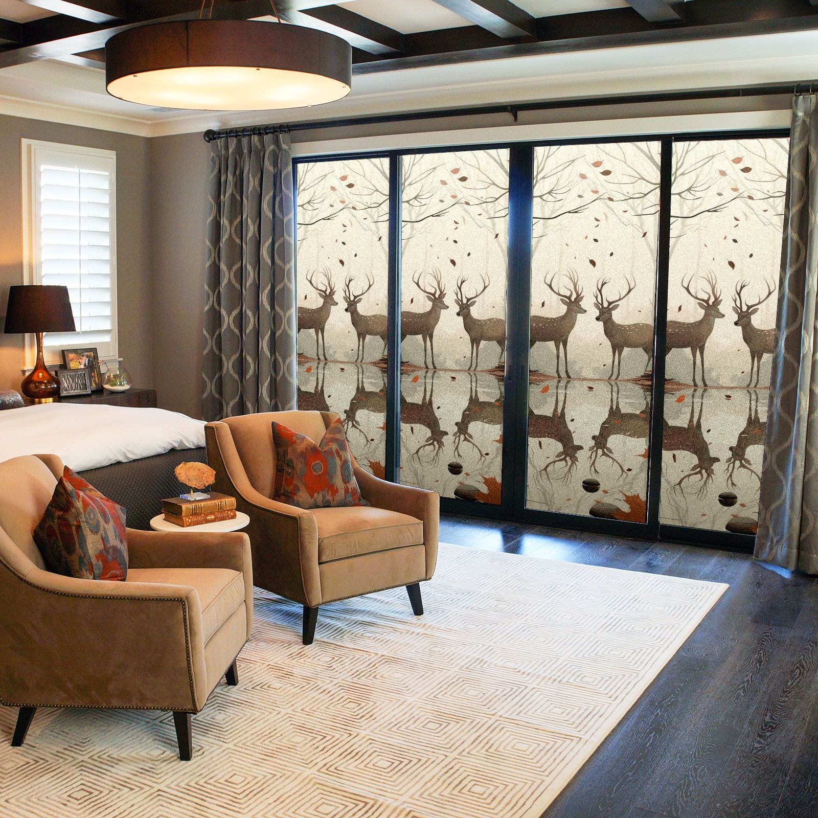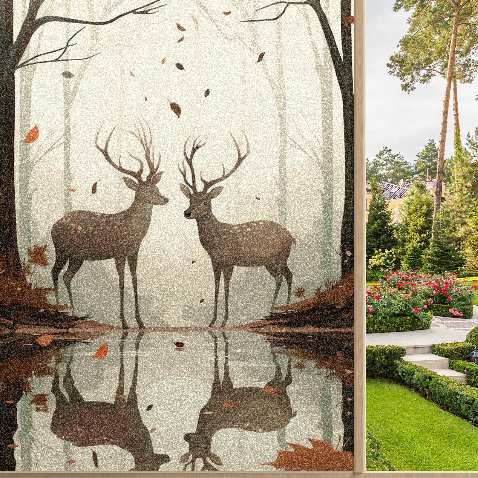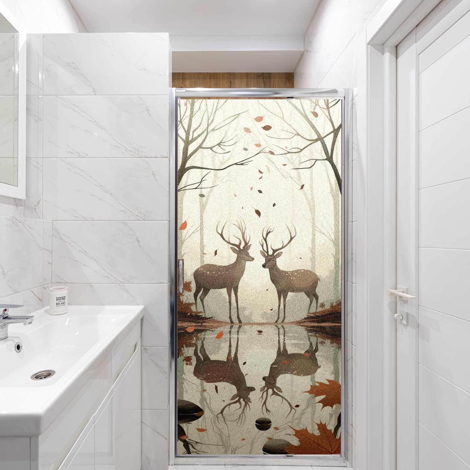 Static Cling Decorative Window Film Frosted Privacy Film Window Clings for Glass Windows No Glue Window Sticker for Bathroom Bedroom Office Reindeer