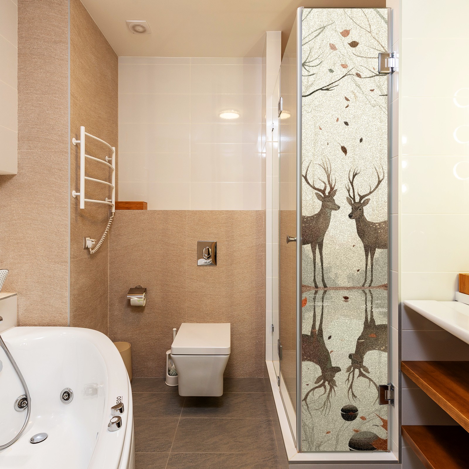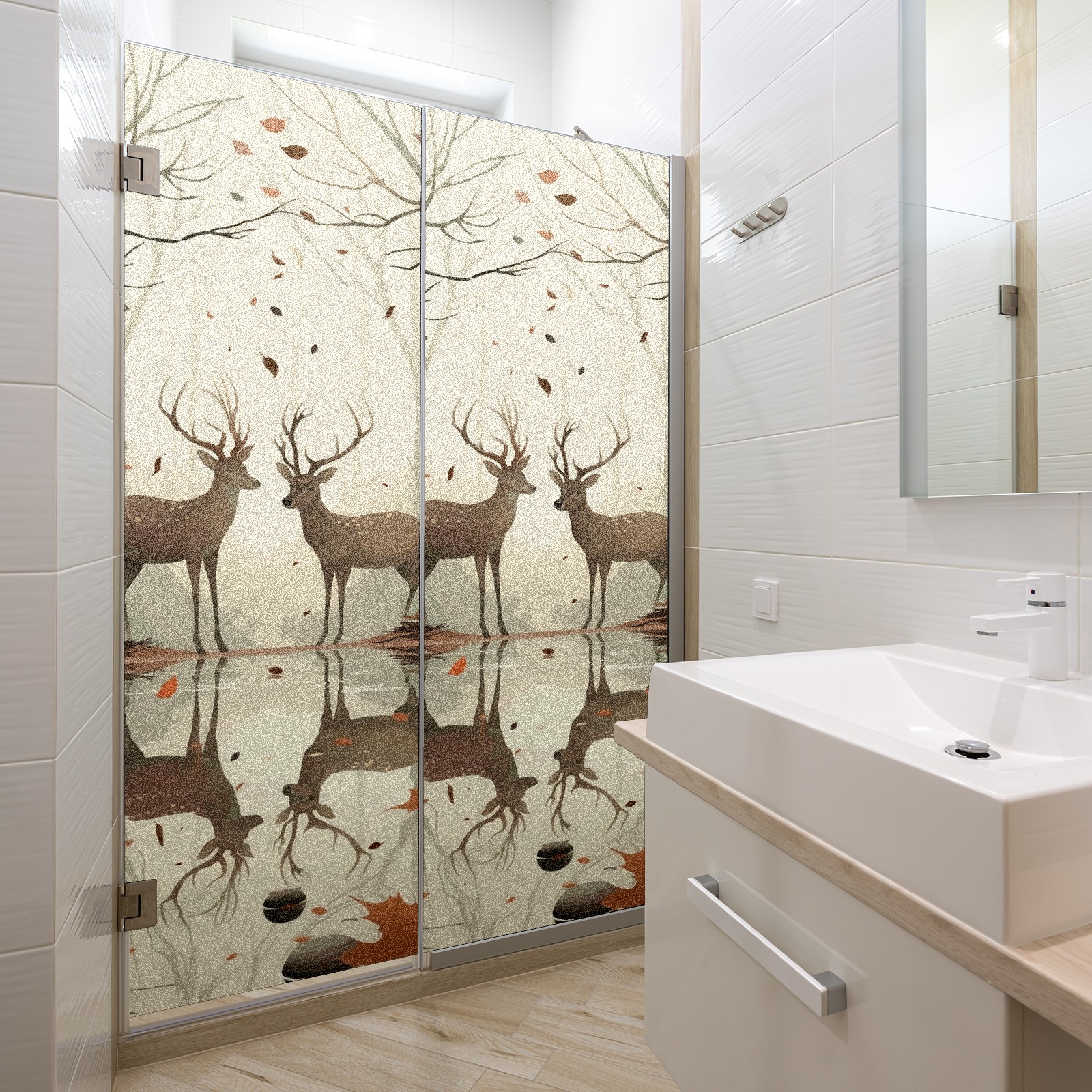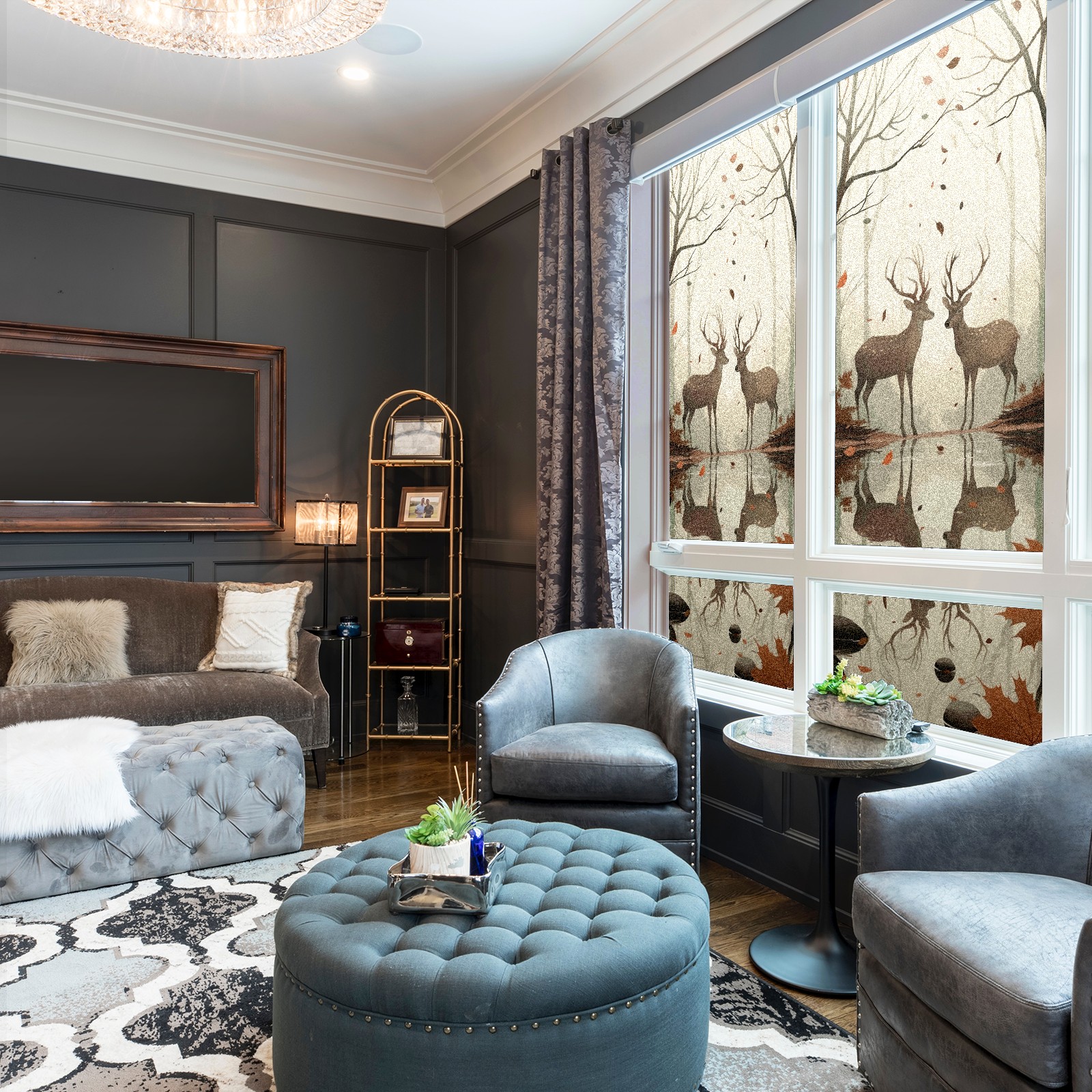 Static Cling Decorative Window Film Frosted Privacy Film Window Clings for Glass Windows No Glue Window Sticker for Bathroom Bedroom Office Reindeer