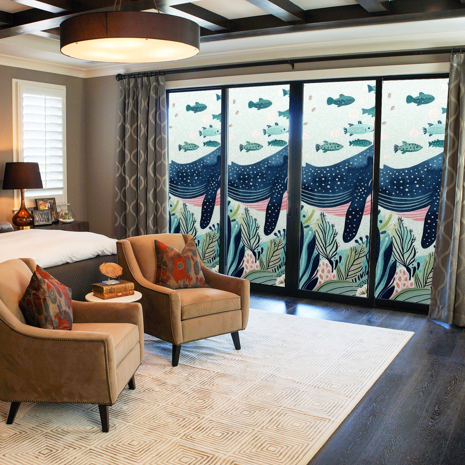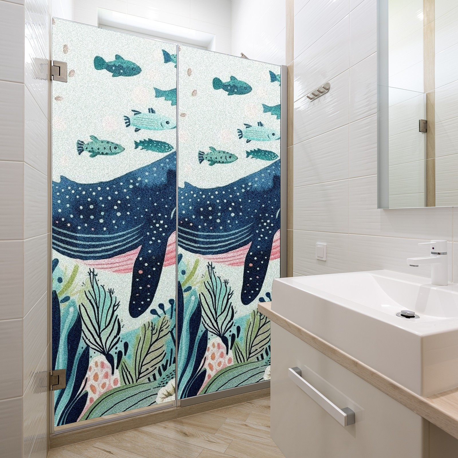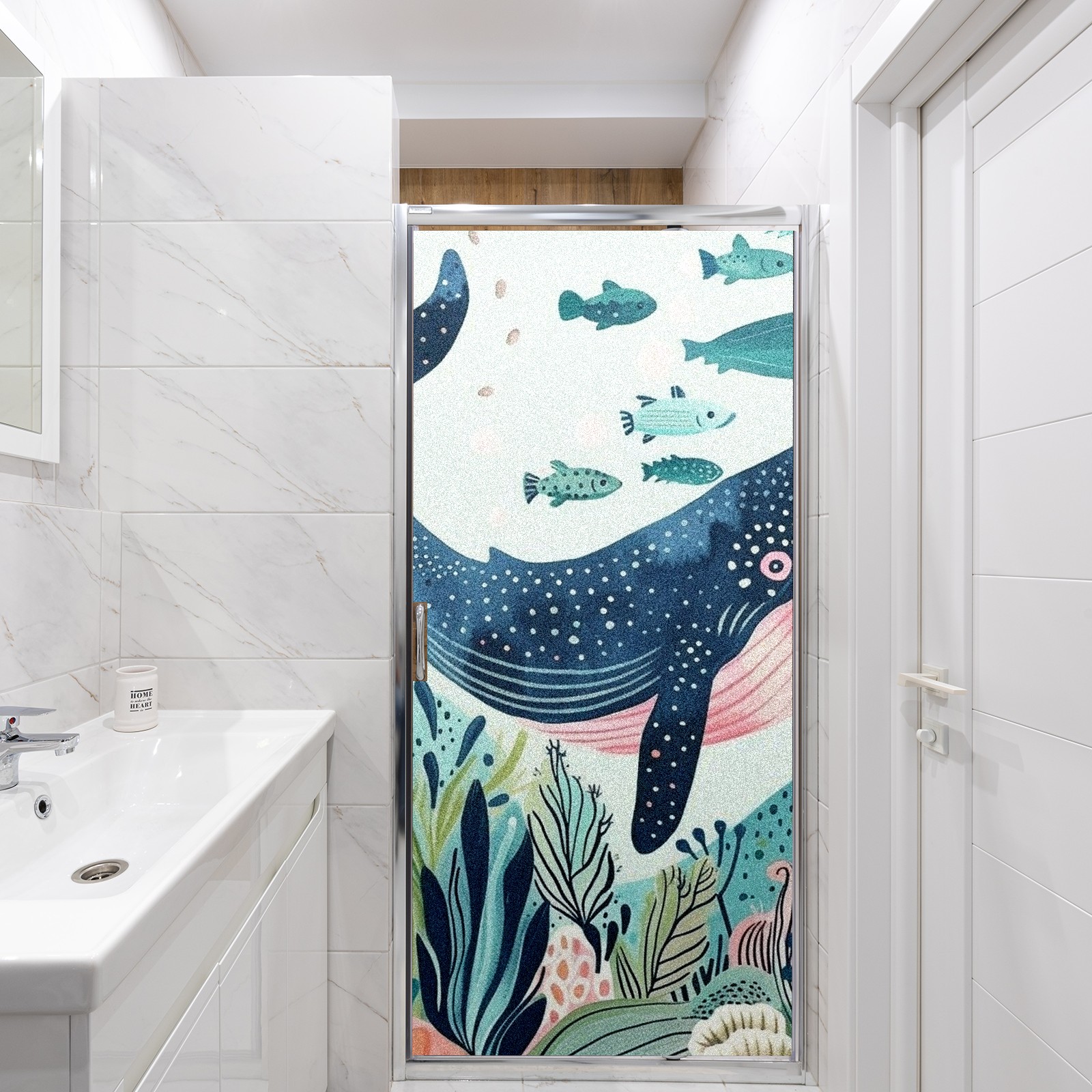 Static Cling Decorative Window Film Frosted Privacy Film Window Clings for Glass Windows No Glue Window Sticker for Bathroom Bedroom Office Whale