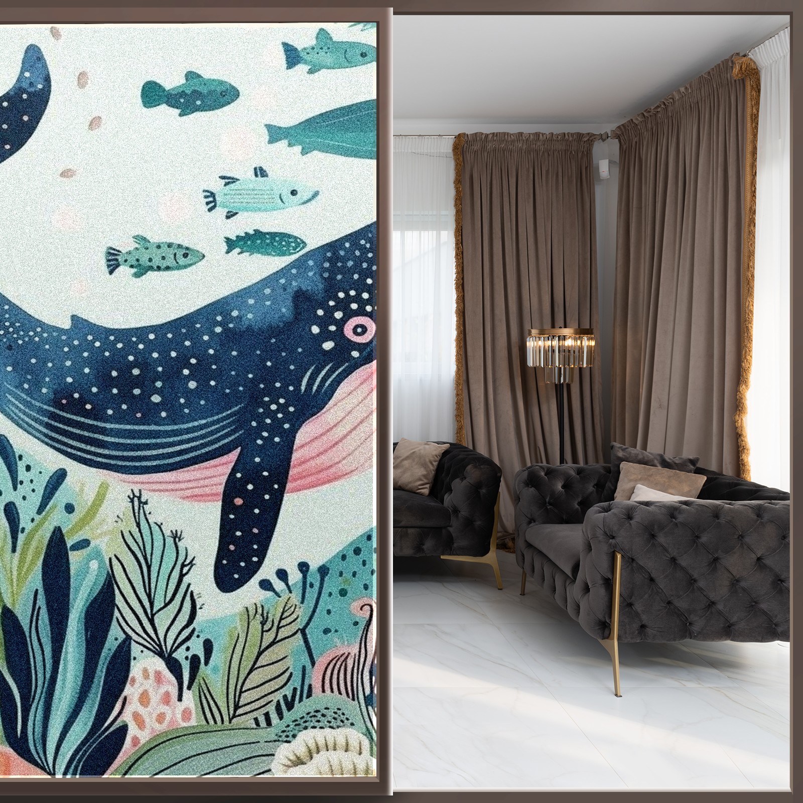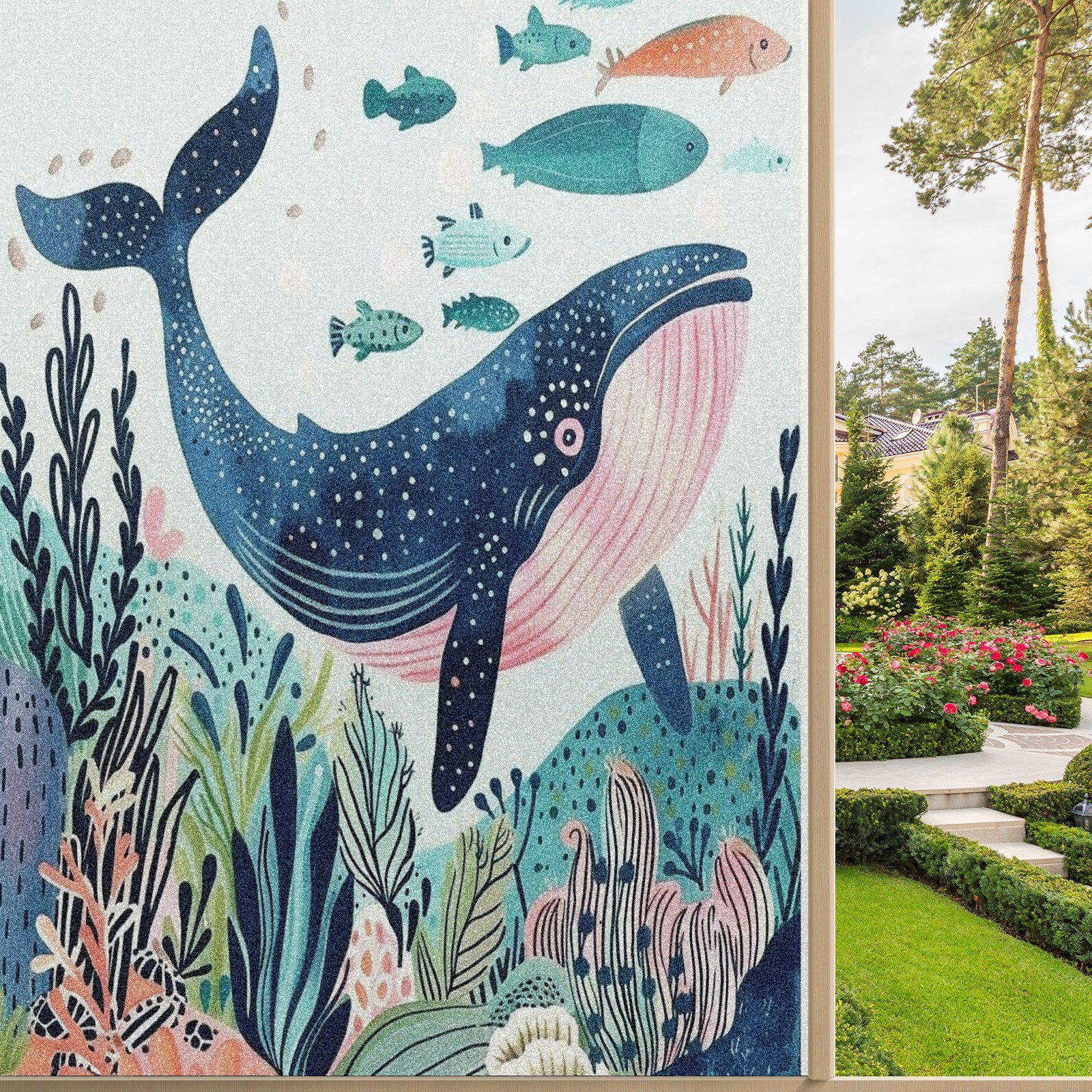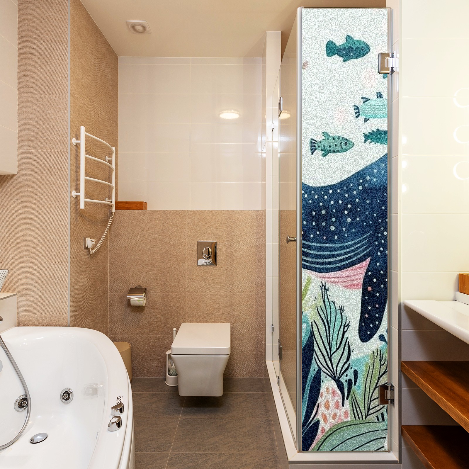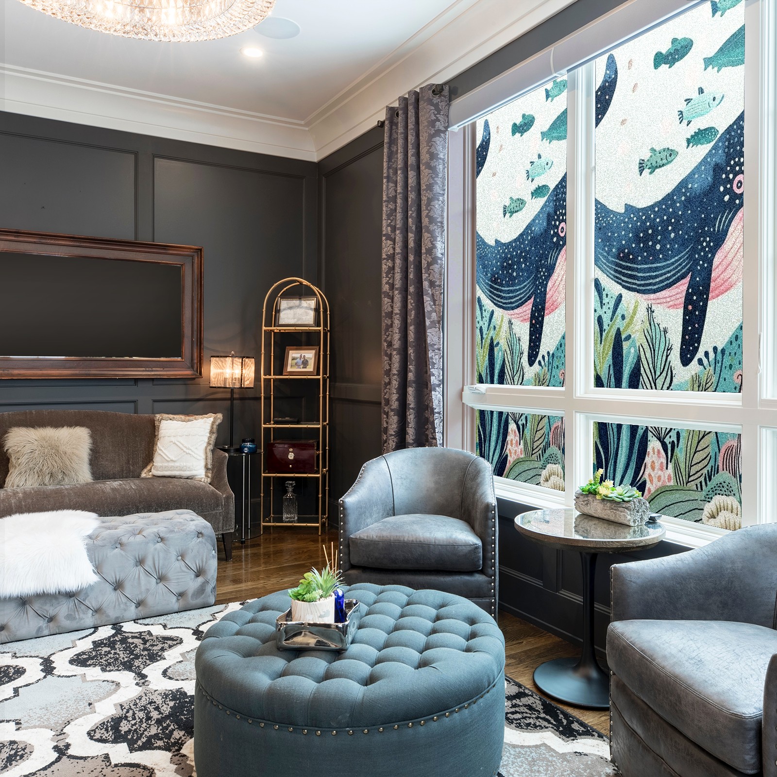 Static Cling Decorative Window Film Frosted Privacy Film Window Clings for Glass Windows No Glue Window Sticker for Bathroom Bedroom Office Whale