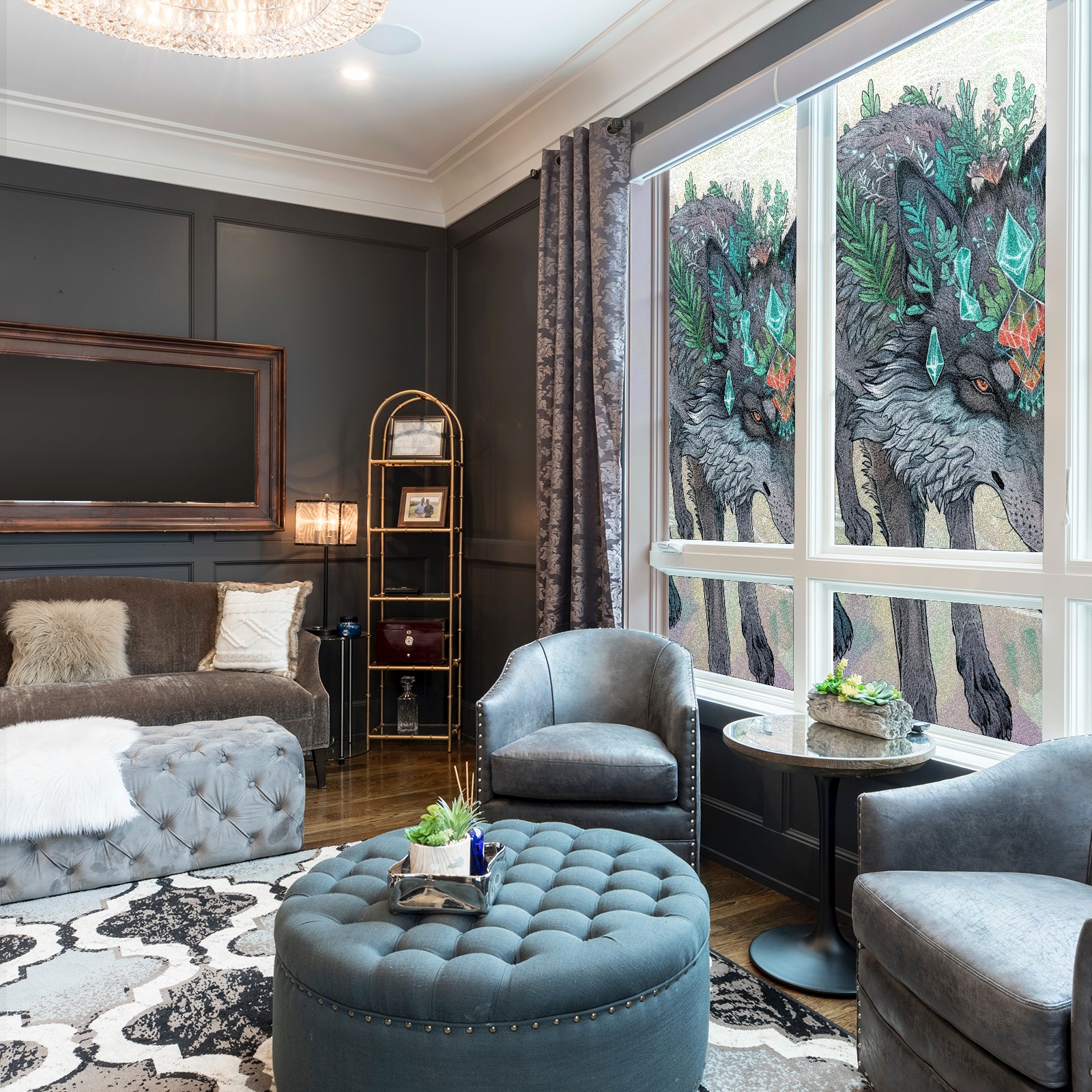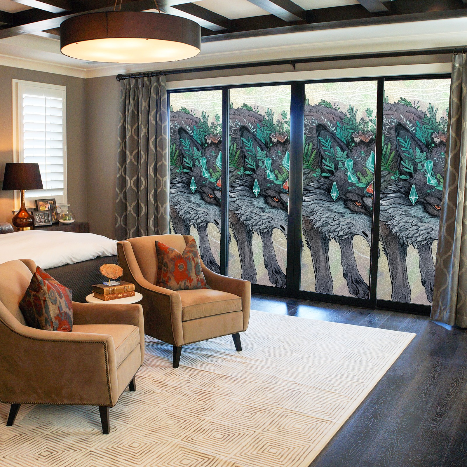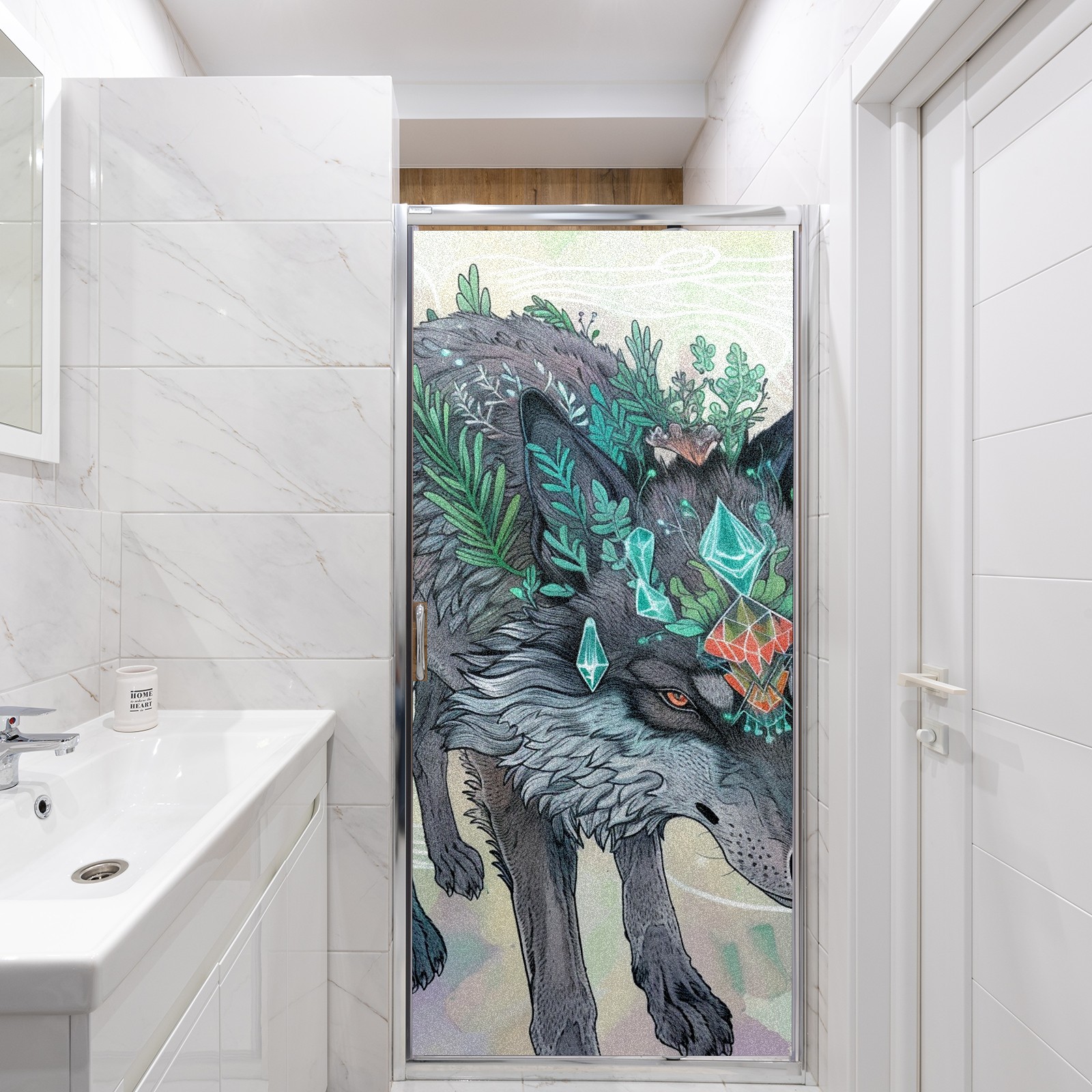 Static Cling Decorative Window Film Frosted Privacy Film Window Clings for Glass Windows No Glue Window Sticker for Bathroom Bedroom Office Wolf