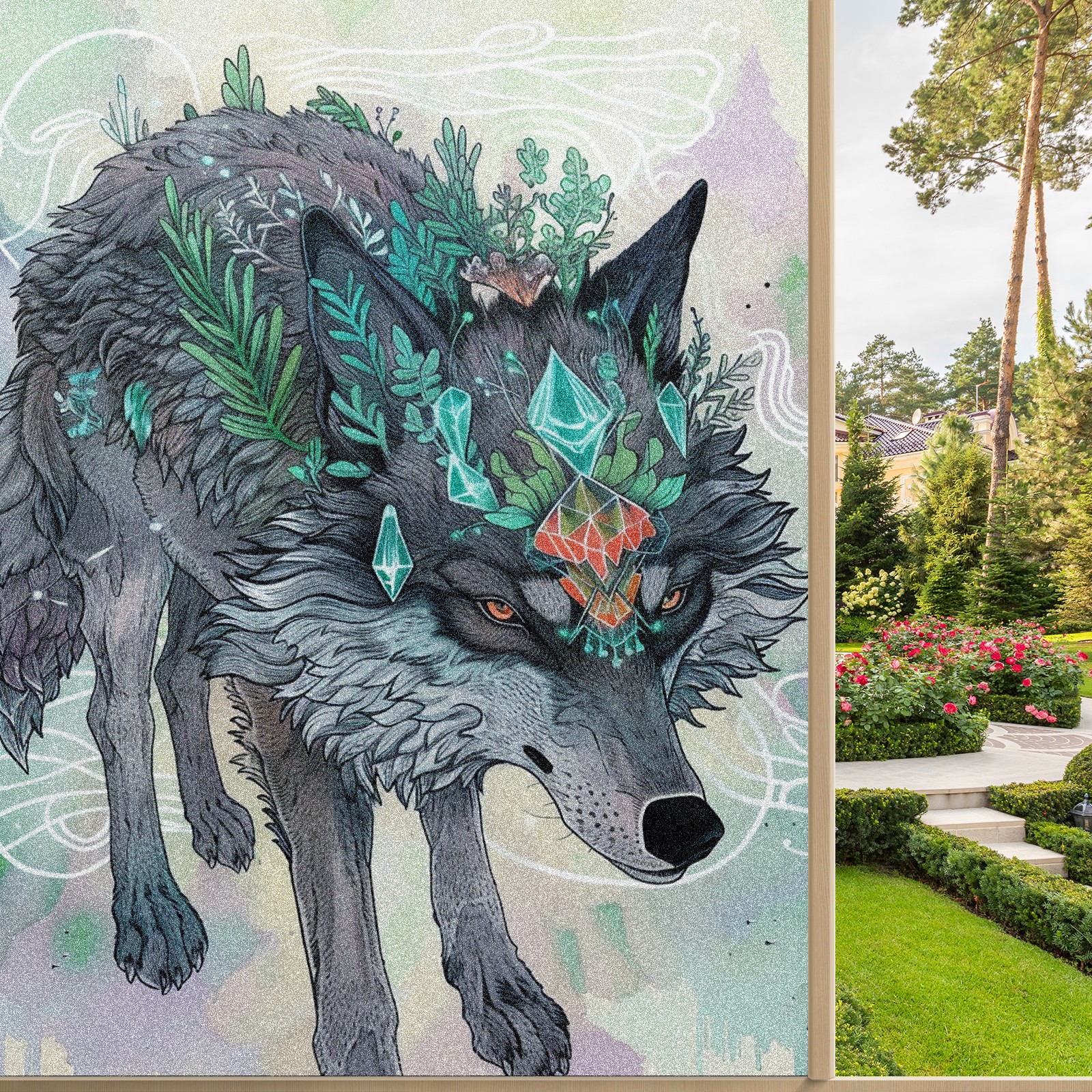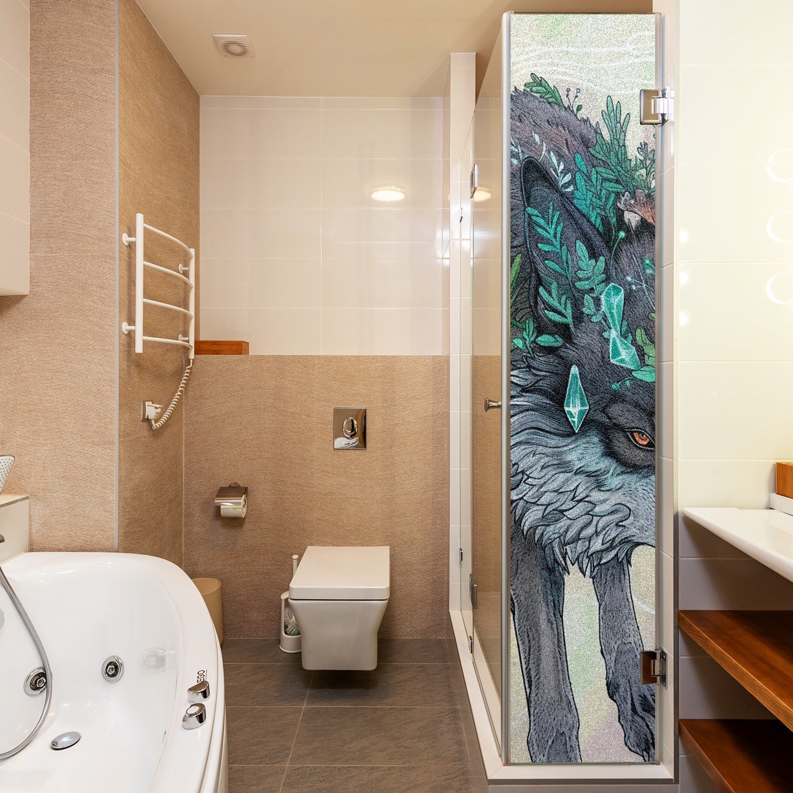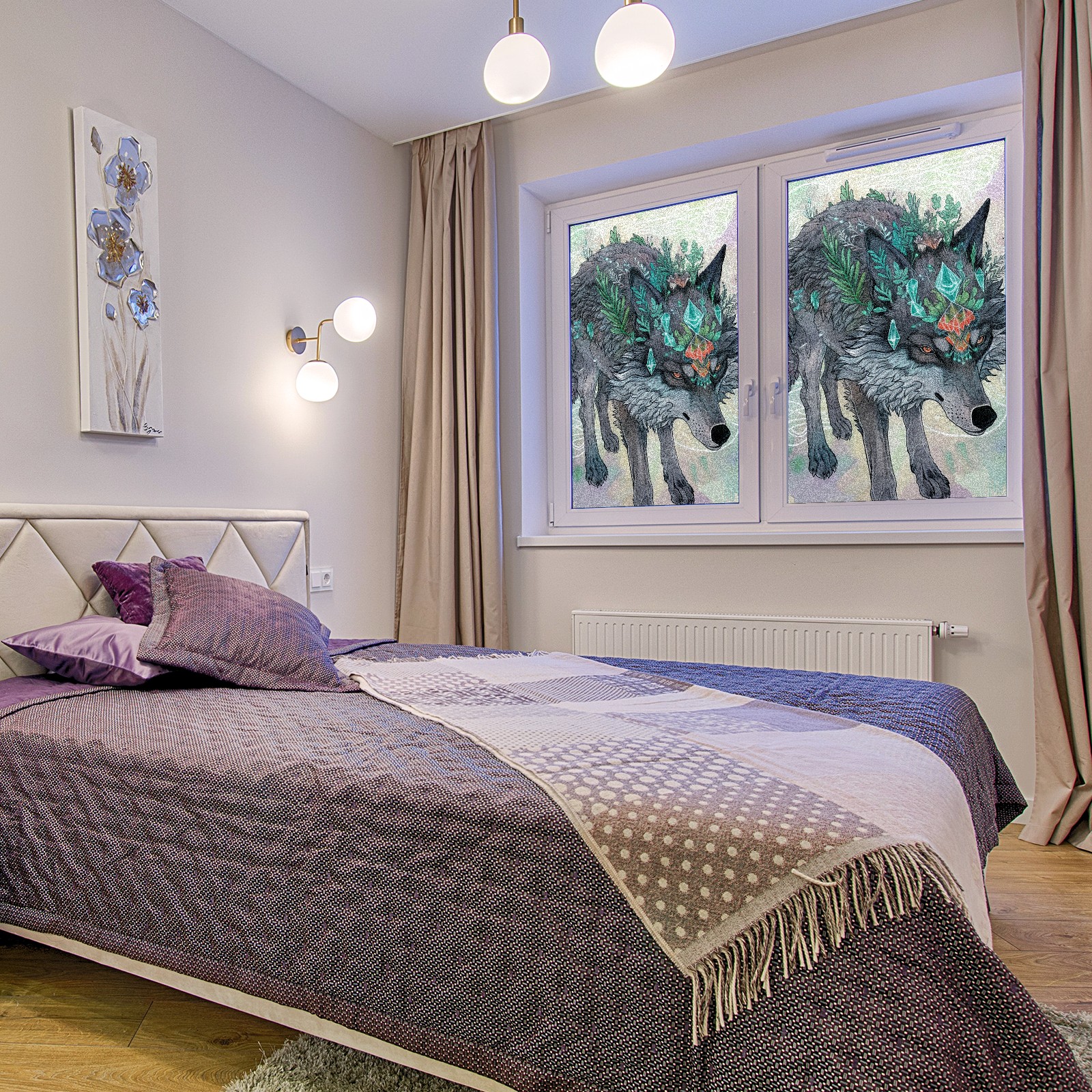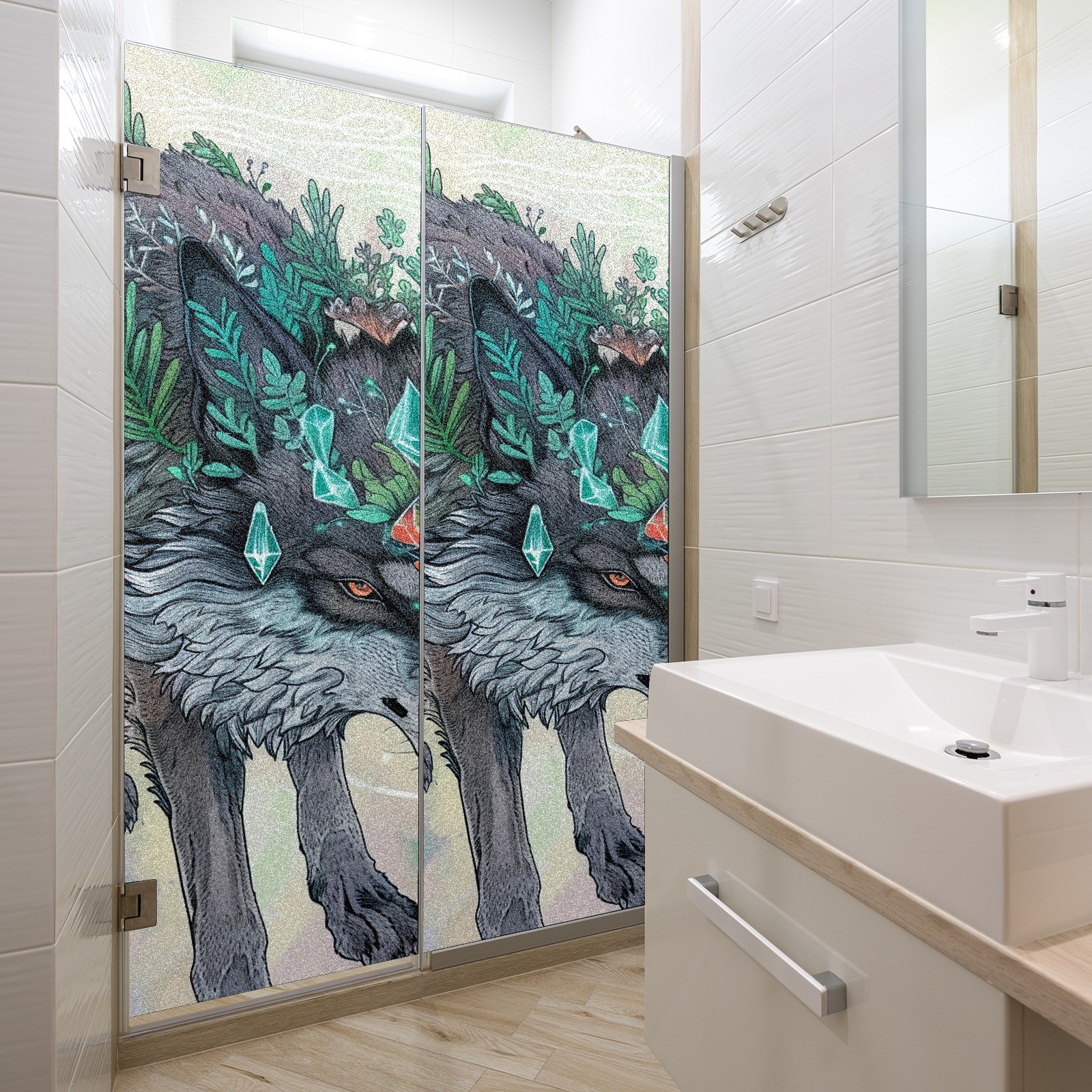 Static Cling Decorative Window Film Frosted Privacy Film Window Clings for Glass Windows No Glue Window Sticker for Bathroom Bedroom Office Wolf