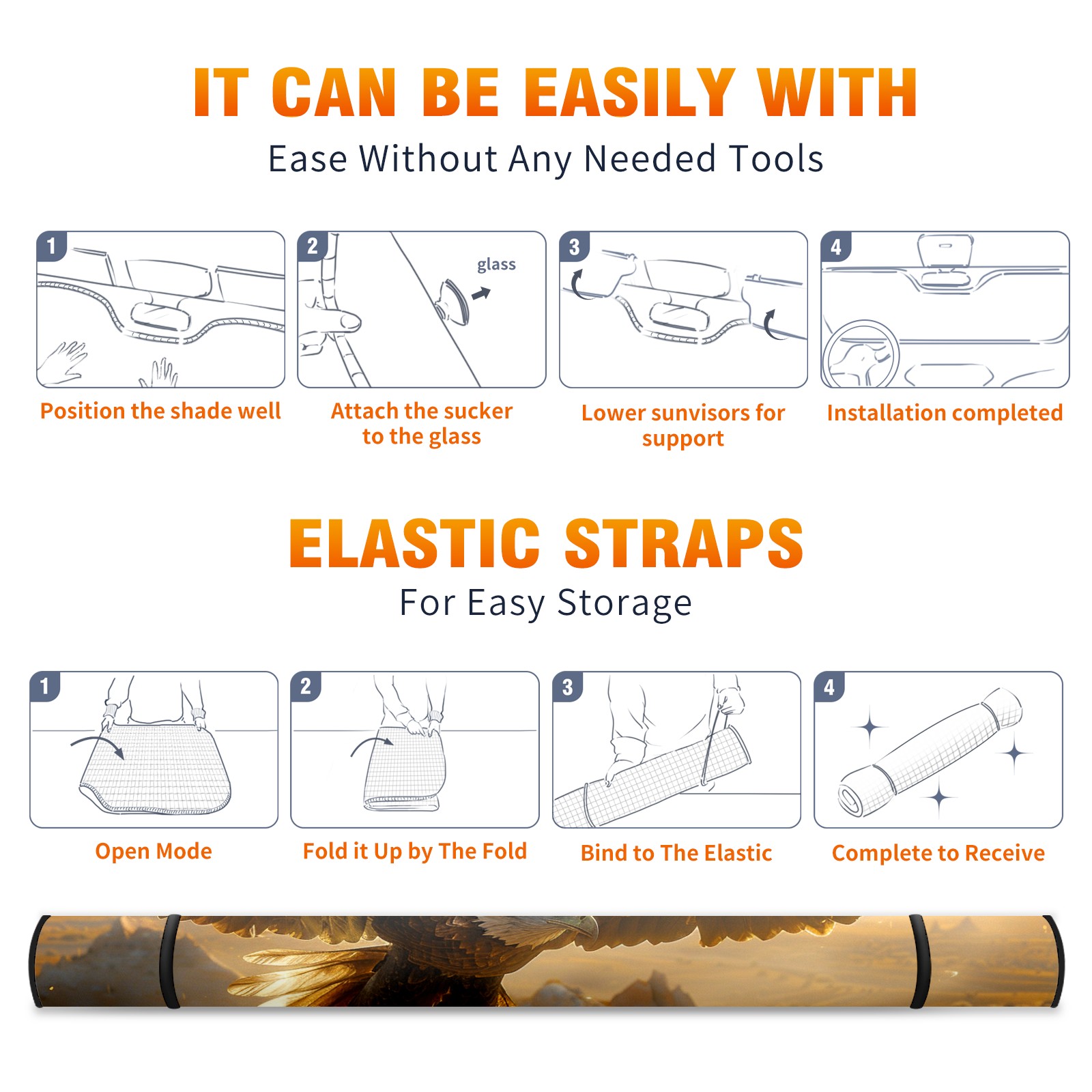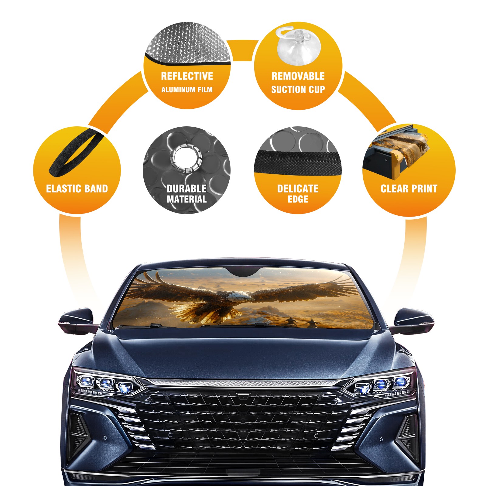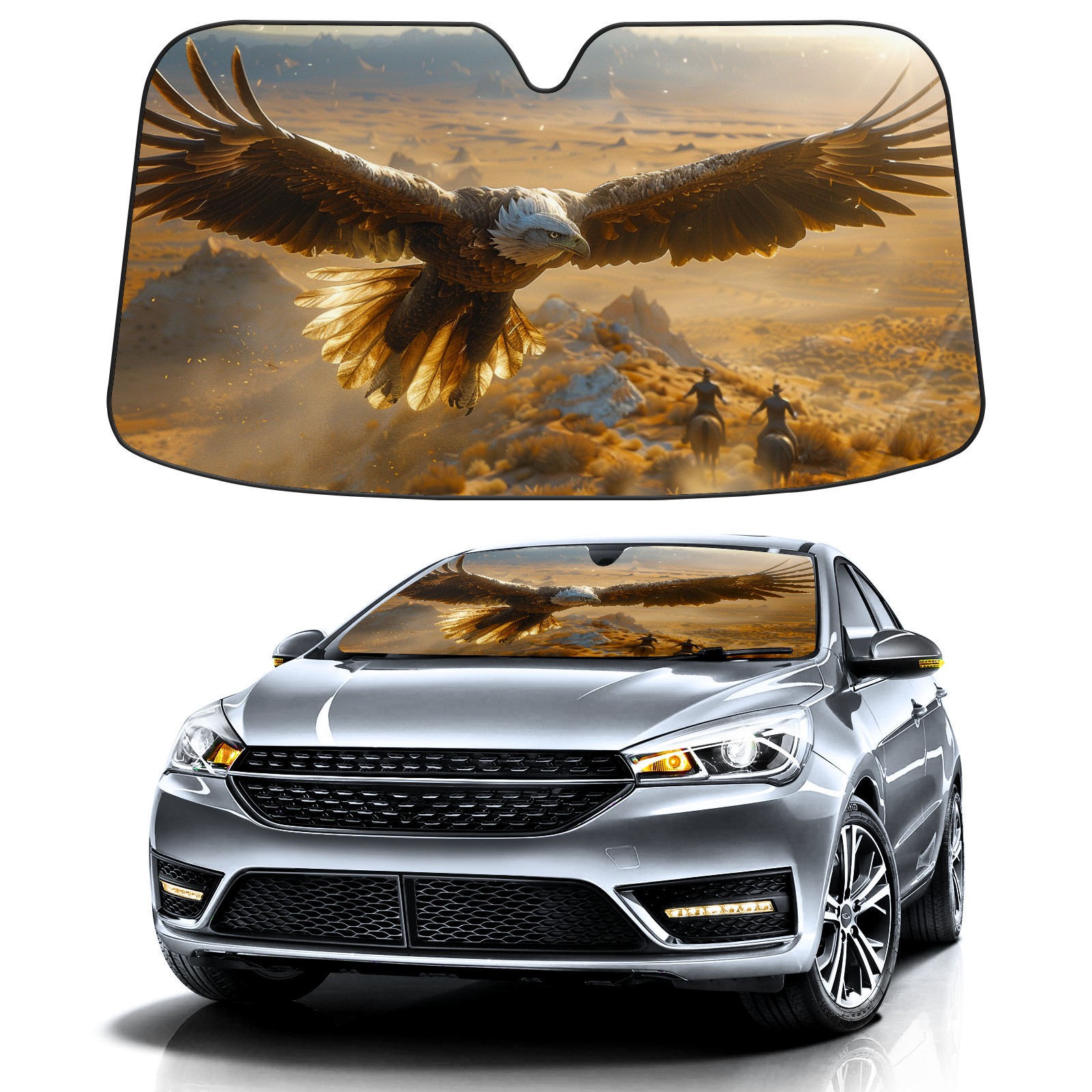 Car Windshield Sun Shade for Front Window Bald Eagle Foldable Vehicle Windshield Car Sun Visor Covers Automotive Window Protector Car Camping Privacy Sun Blocker