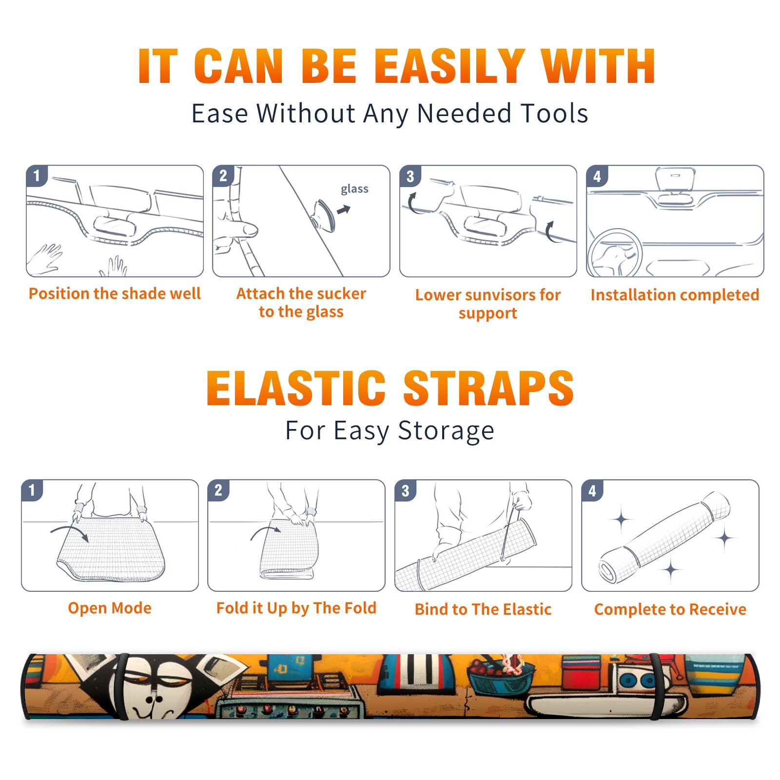 Diameter /Size 63"L x 33.5"W</b><br> Made from excellent materials which makes it sturdy and protects the car from the sun. Easy to use and pack. Makes the interior of the car cooler.You can easily stash the sunshade in the storage bag or store long term.It open and closes easy. Also the leather storage bag is durable and easy to put the umbrella back into.This windshield sunshade provides complete coverage and keeps your car interior cool under direct sun. It is easy to open and position under the windshield and around the rear-view mirror. Makes Your Car Easy To Identify, Perfect For Finding Your Car In Crowded Parking Lots And Garages.Great Choice: It Is A Great Gift For Dad, Boyfriend, Brother, Brother And Uncle, Friends, Classmates, Family And So On.<br> Notice:</b><br> Due To Difference Computer Monitors, The Color Maybe Slightly Different From Picture. As Different Measurement Methods, Measurement Data Will Float Within 2%.I Hope You Understand.<br> If You Have Any Question About The Item Please Do Not Hesitate To Contact Us Immediately And We Will Give You A Satisfactory Reply Within 24 Hours.