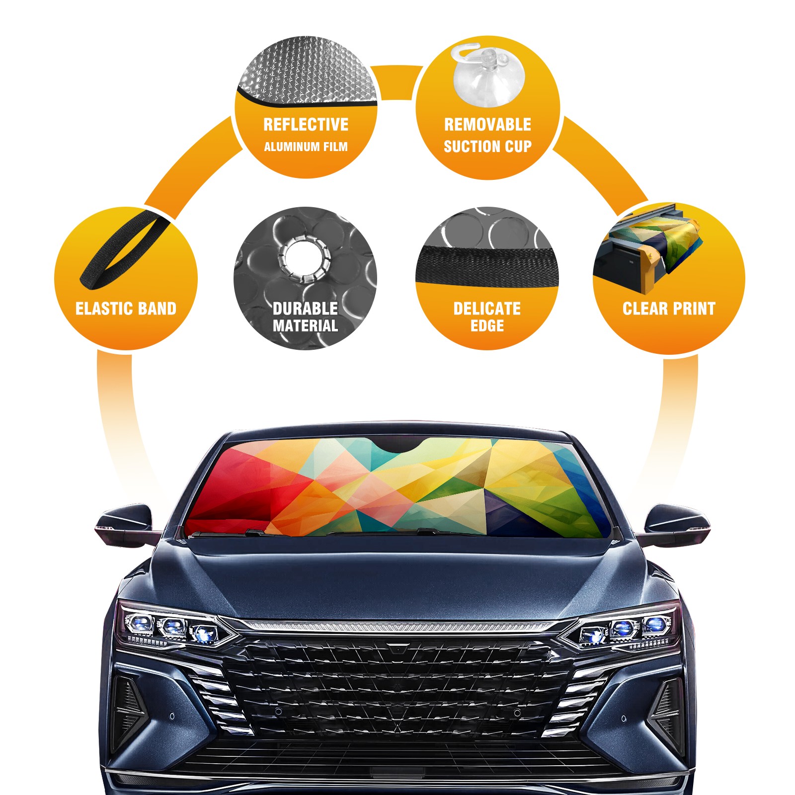 Car Windshield Sun Shade for Front Window Art Style Foldable Vehicle Windshield Car Sun Visor Covers Automotive Window Protector Car Camping Privacy Sun Blocker