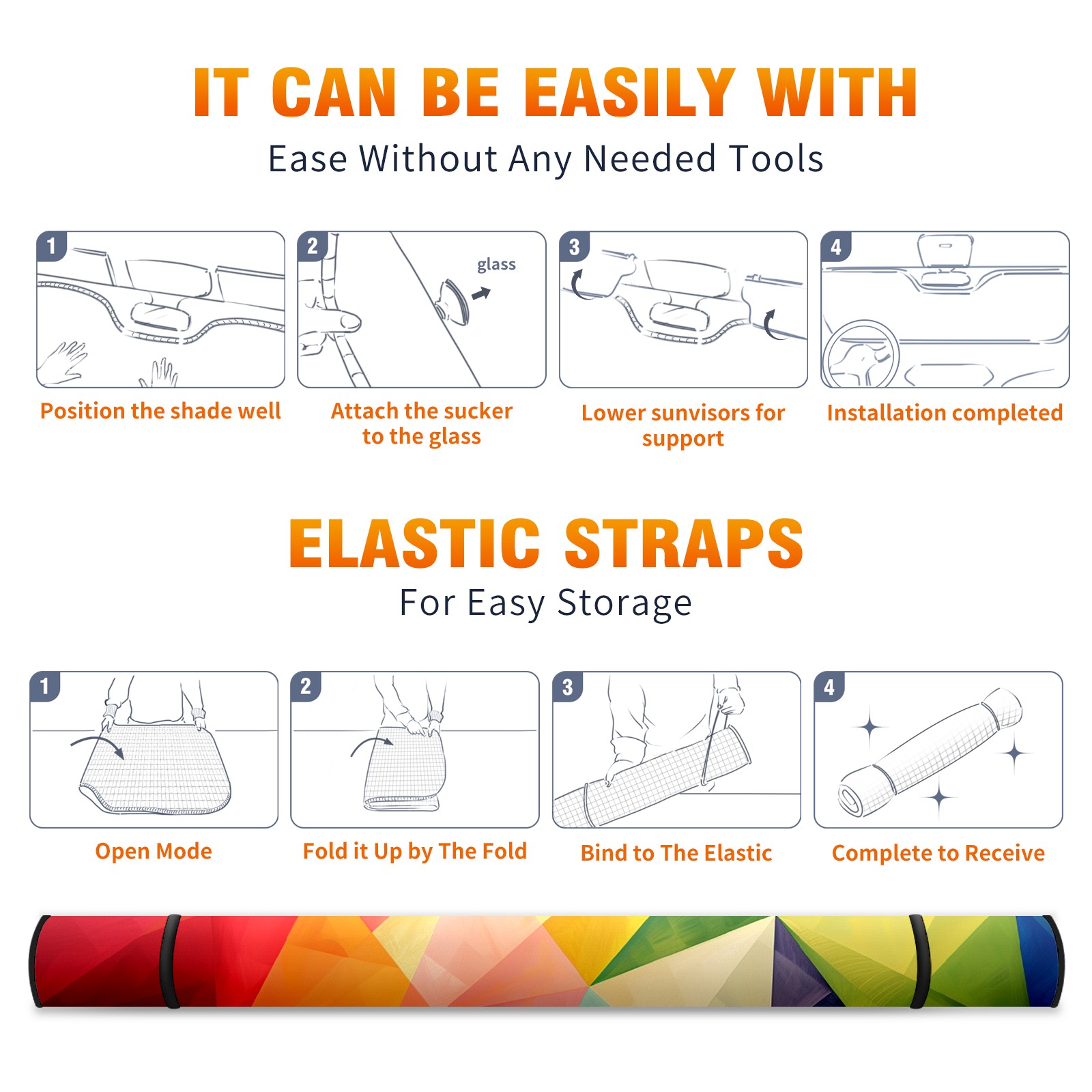 Diameter /Size 63"L x 33.5"W</b><br> Made from excellent materials which makes it sturdy and protects the car from the sun. Easy to use and pack. Makes the interior of the car cooler.You can easily stash the sunshade in the storage bag or store long term.It open and closes easy. Also the leather storage bag is durable and easy to put the umbrella back into.This windshield sunshade provides complete coverage and keeps your car interior cool under direct sun. It is easy to open and position under the windshield and around the rear-view mirror. Makes Your Car Easy To Identify, Perfect For Finding Your Car In Crowded Parking Lots And Garages.Great Choice: It Is A Great Gift For Dad, Boyfriend, Brother, Brother And Uncle, Friends, Classmates, Family And So On.<br> Notice:</b><br> Due To Difference Computer Monitors, The Color Maybe Slightly Different From Picture. As Different Measurement Methods, Measurement Data Will Float Within 2%.I Hope You Understand.<br> If You Have Any Question About The Item Please Do Not Hesitate To Contact Us Immediately And We Will Give You A Satisfactory Reply Within 24 Hours.
