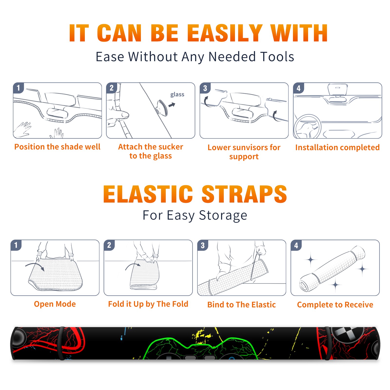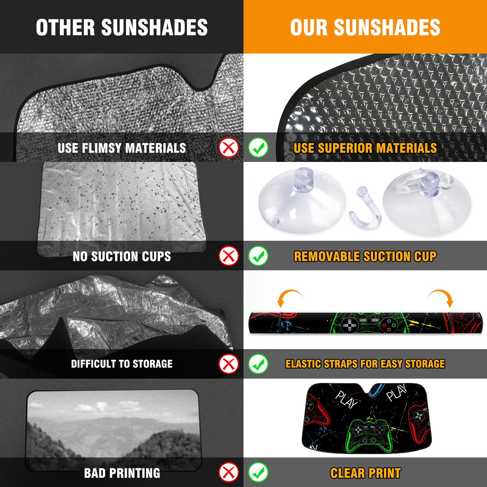 Car Windshield Sun Shade for Front Window Video Game Controller Foldable Vehicle Windshield Car Sun Visor Covers Automotive Window Protector Car Camping Privacy Sun Blocker