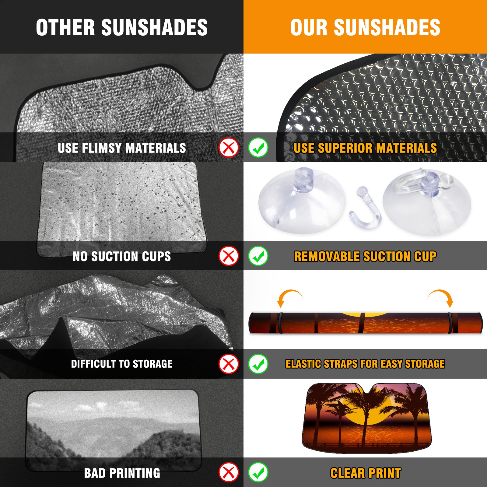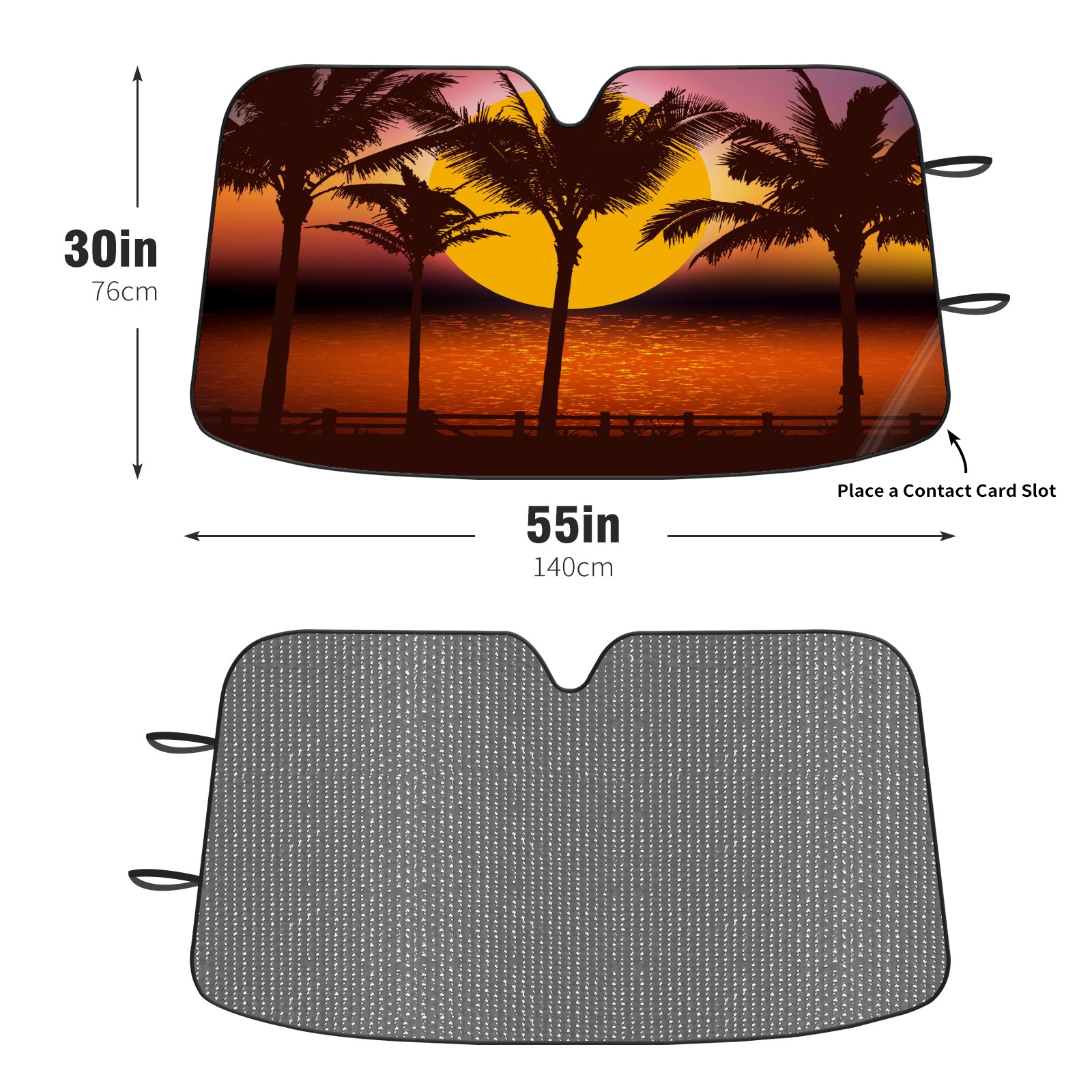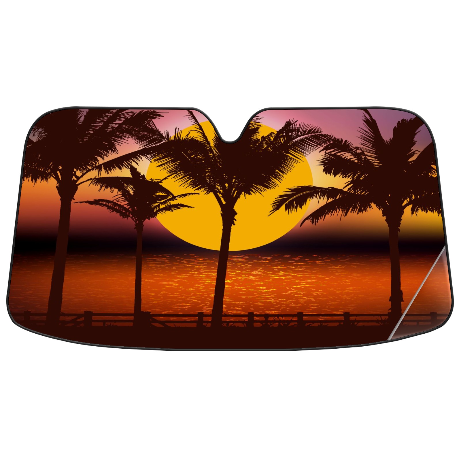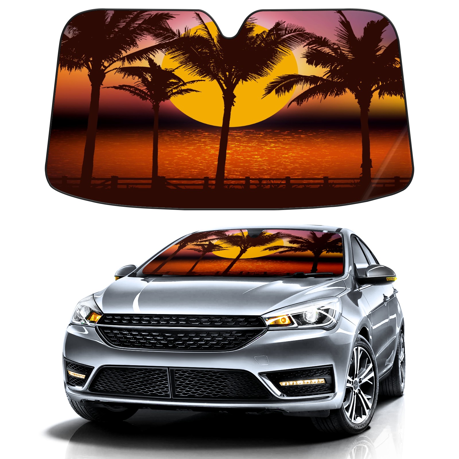 Car Windshield Sun Shade for Front Window Tropical Sunset Palm Trees Foldable Vehicle Windshield Car Sun Visor Covers Automotive Window Protector Car Camping Privacy Sun Blocker