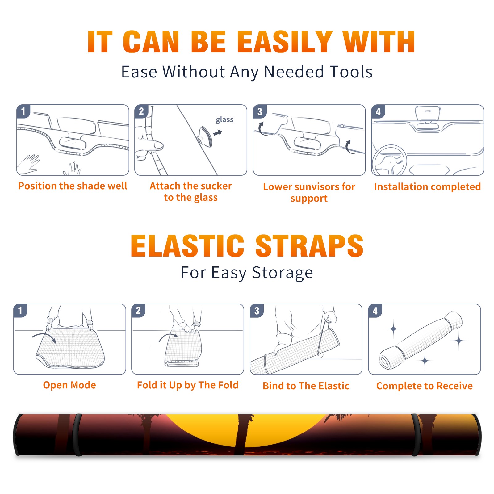 Diameter /Size 63"L x 33.5"W</b><br> Made from excellent materials which makes it sturdy and protects the car from the sun. Easy to use and pack. Makes the interior of the car cooler.You can easily stash the sunshade in the storage bag or store long term.It open and closes easy. Also the leather storage bag is durable and easy to put the umbrella back into.This windshield sunshade provides complete coverage and keeps your car interior cool under direct sun. It is easy to open and position under the windshield and around the rear-view mirror. Makes Your Car Easy To Identify, Perfect For Finding Your Car In Crowded Parking Lots And Garages.Great Choice: It Is A Great Gift For Dad, Boyfriend, Brother, Brother And Uncle, Friends, Classmates, Family And So On.<br> Notice:</b><br> Due To Difference Computer Monitors, The Color Maybe Slightly Different From Picture. As Different Measurement Methods, Measurement Data Will Float Within 2%.I Hope You Understand.<br> If You Have Any Question About The Item Please Do Not Hesitate To Contact Us Immediately And We Will Give You A Satisfactory Reply Within 24 Hours.