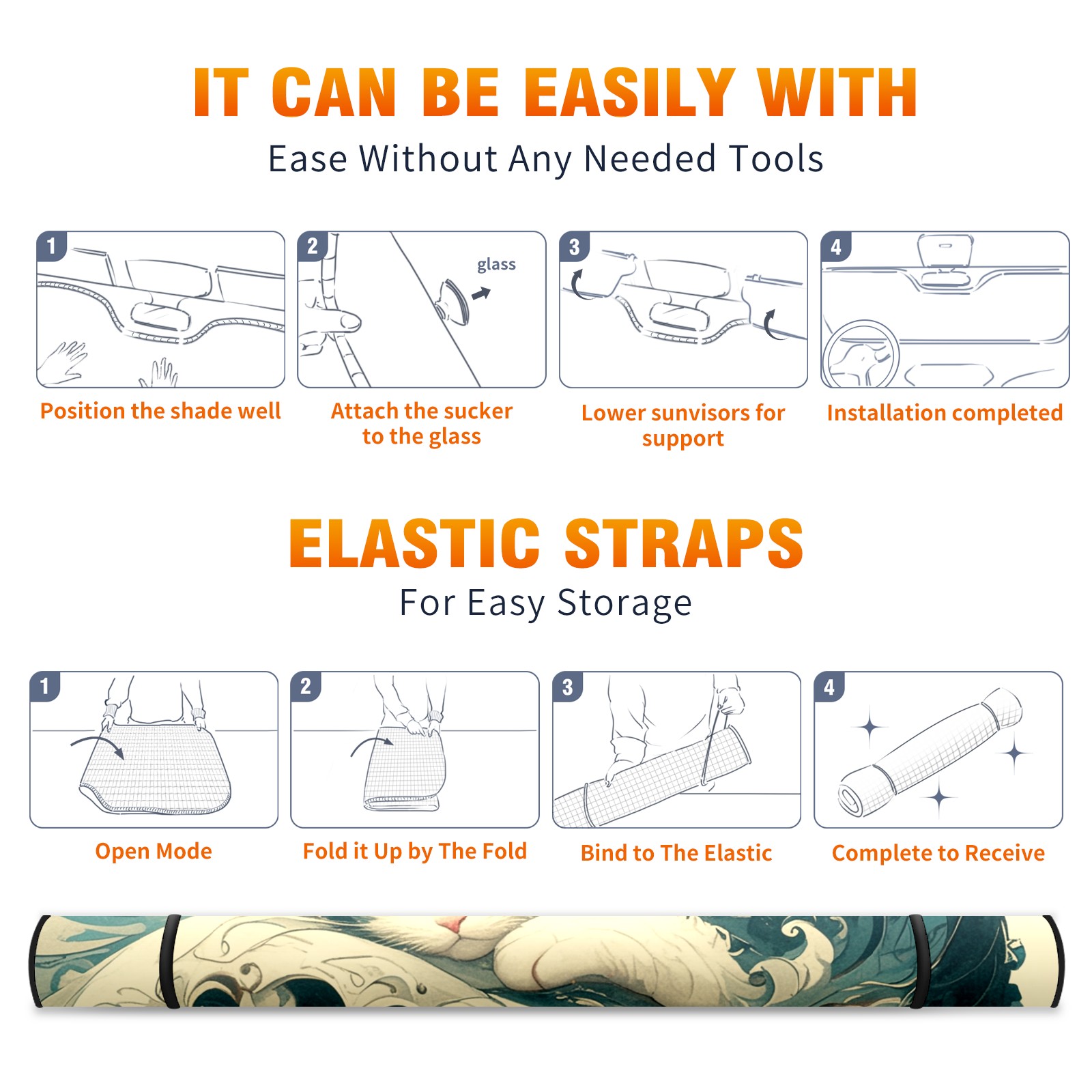 • Diameter /Size 63"L x 33.5"W</b><br> Made from excellent materials which makes it sturdy and protects the car from the sun. Easy to use and pack. Makes the interior of the car cooler.You can easily stash the sunshade in the storage bag or store long term.It open and closes easy. Also the leather storage bag is durable and easy to put the umbrella back into.This windshield sunshade provides complete coverage and keeps your car interior cool under direct sun. It is easy to open and position under the windshield and around the rear-view mirror. Makes Your Car Easy To Identify, Perfect For Finding Your Car In Crowded Parking Lots And Garages.Great Choice: It Is A Great Gift For Dad, Boyfriend, Brother, Brother And Uncle, Friends, Classmates, Family And So On.<br> Notice:</b><br> Due To Difference Computer Monitors, The Color Maybe Slightly Different From Picture. As Different Measurement Methods, Measurement Data Will Float Within 2%.I Hope You Understand.<br> If You Have Any Question About The Item Please Do Not Hesitate To Contact Us Immediately And We Will Give You A Satisfactory Reply Within 24 Hours.