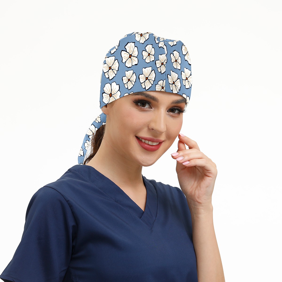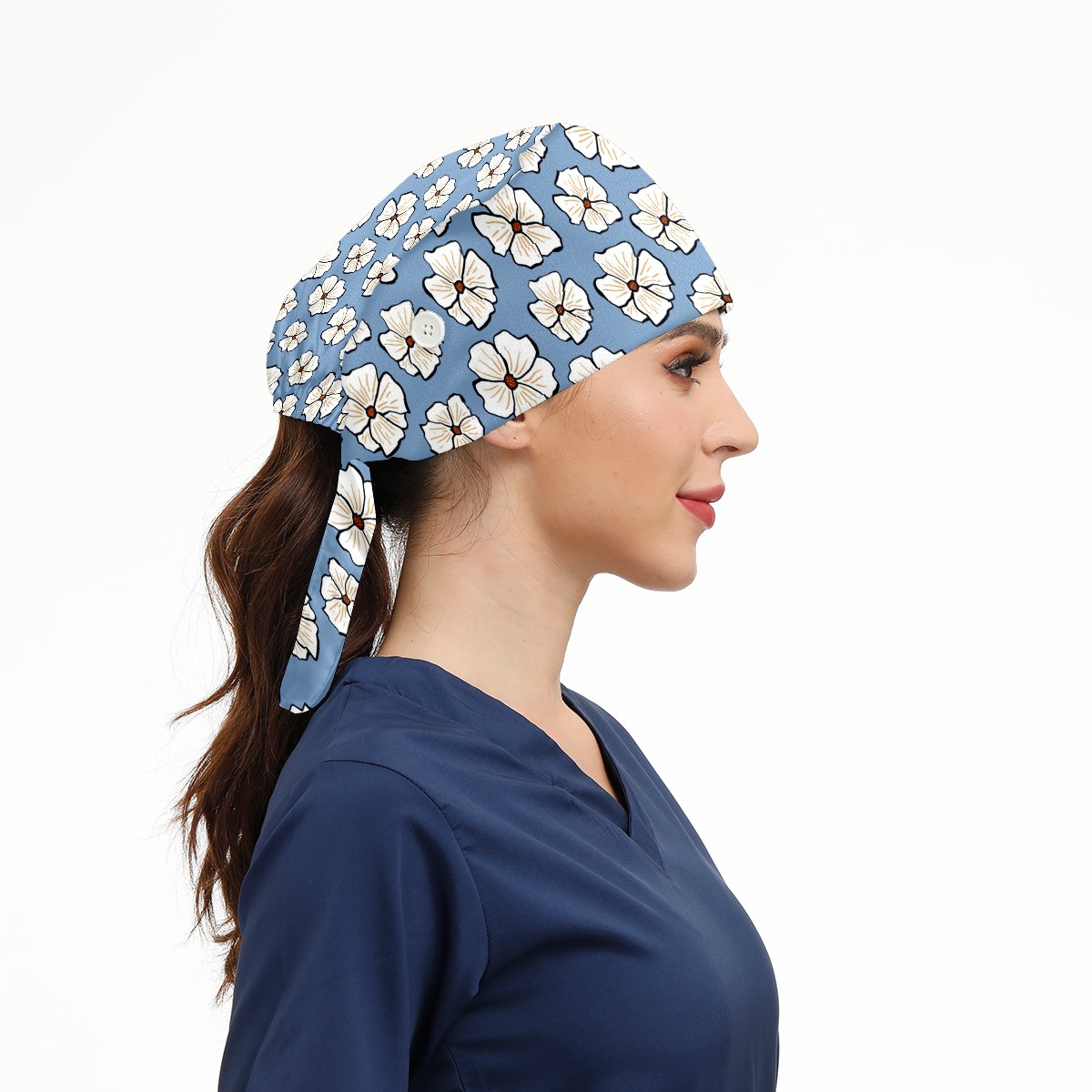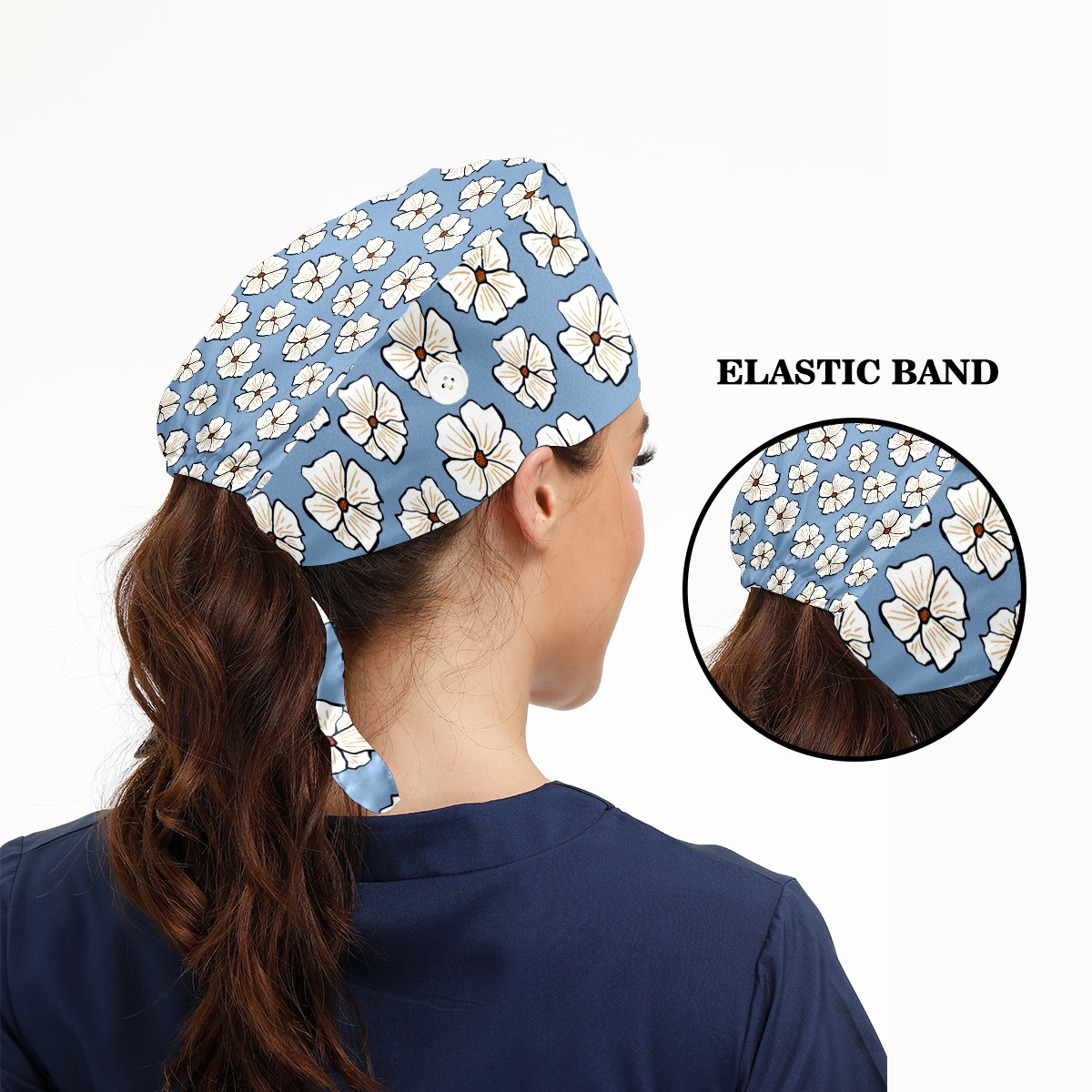 Working Caps with Button & Sweatband Satin Lined Cotton Adjustable Nurse Hats Elastic Band Scrub Cap Surgeon Hat Flower1
