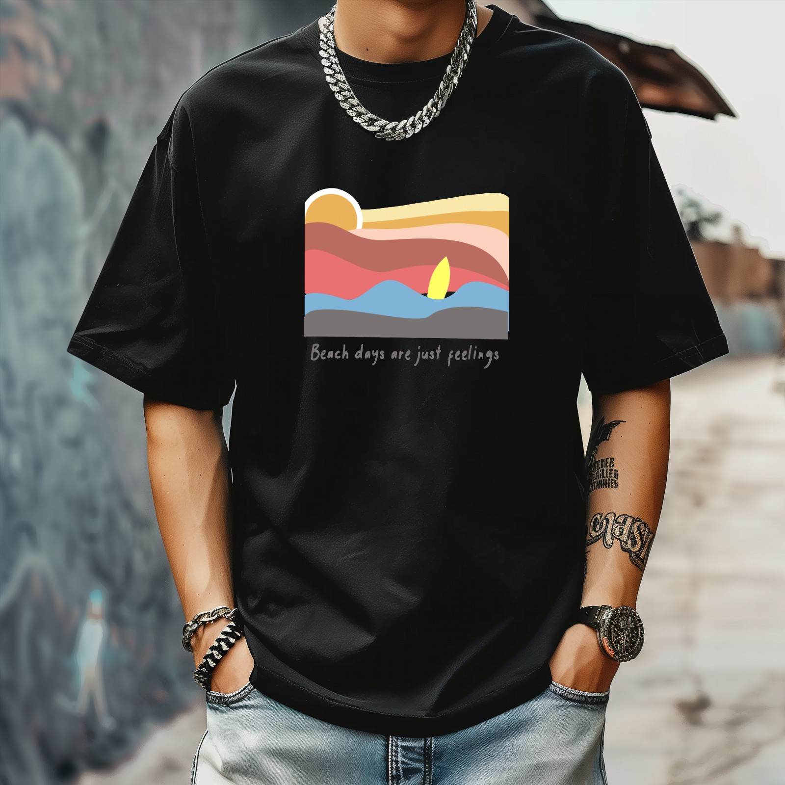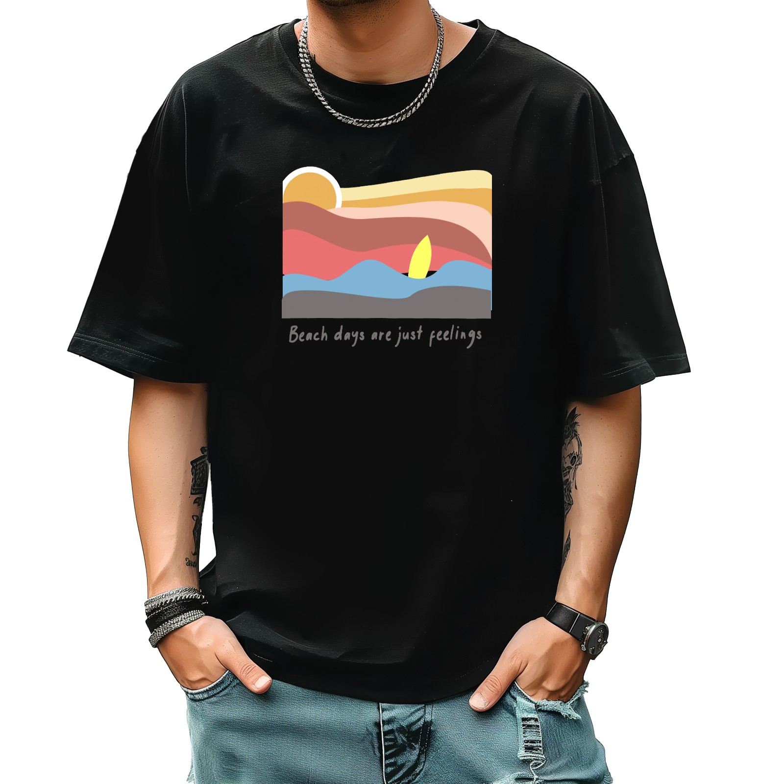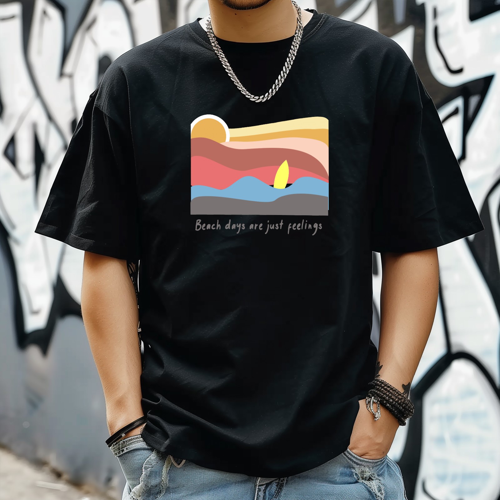 Beach Days Are Just Feelings T-Shirt for Man Tops Short Sleeves Shirt Crew Neck Shirt XS