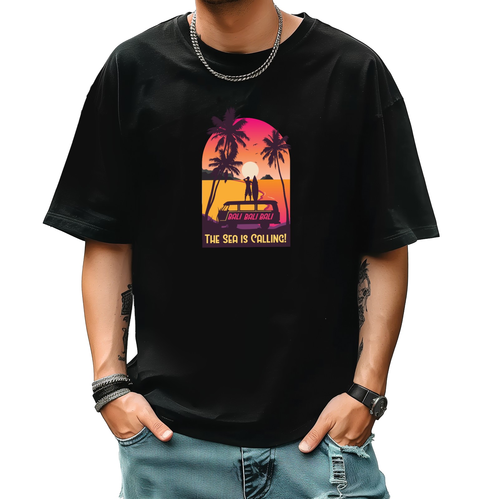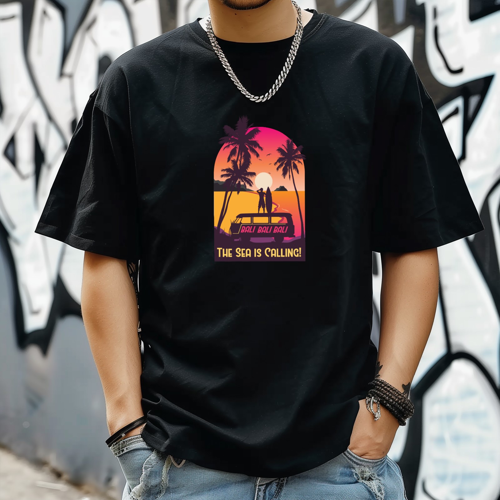Bali The Sea Is Calling T-Shirt for Man Tops Short Sleeves Shirt Crew Neck Shirt XS