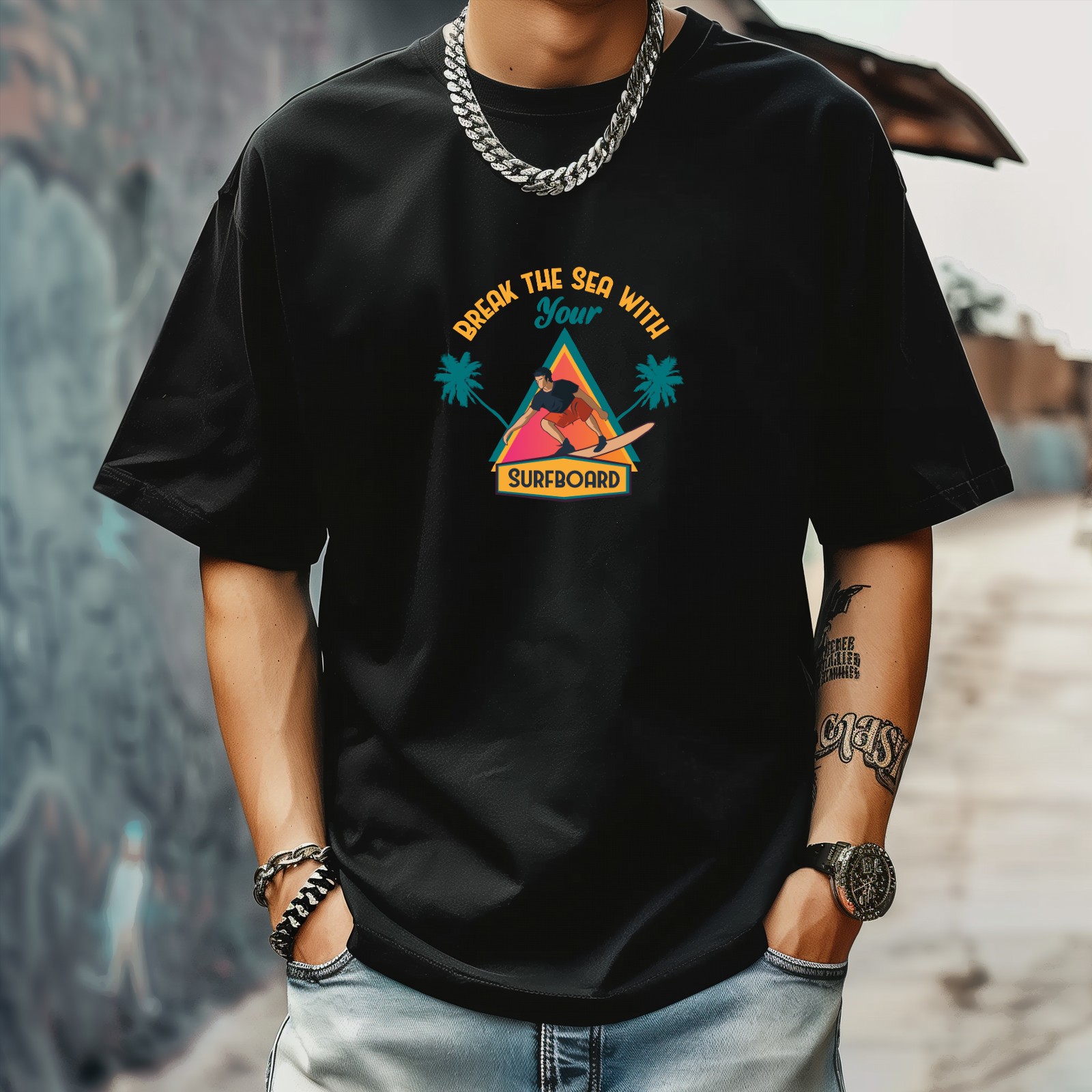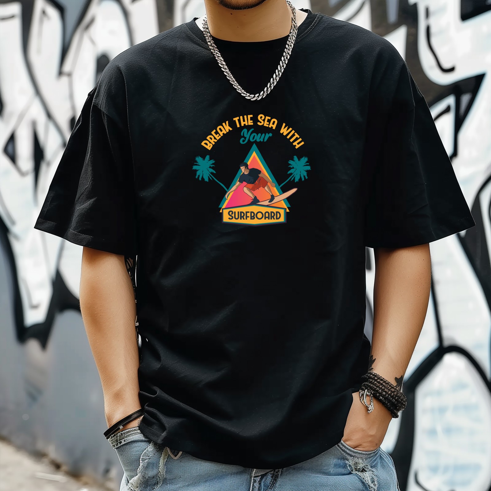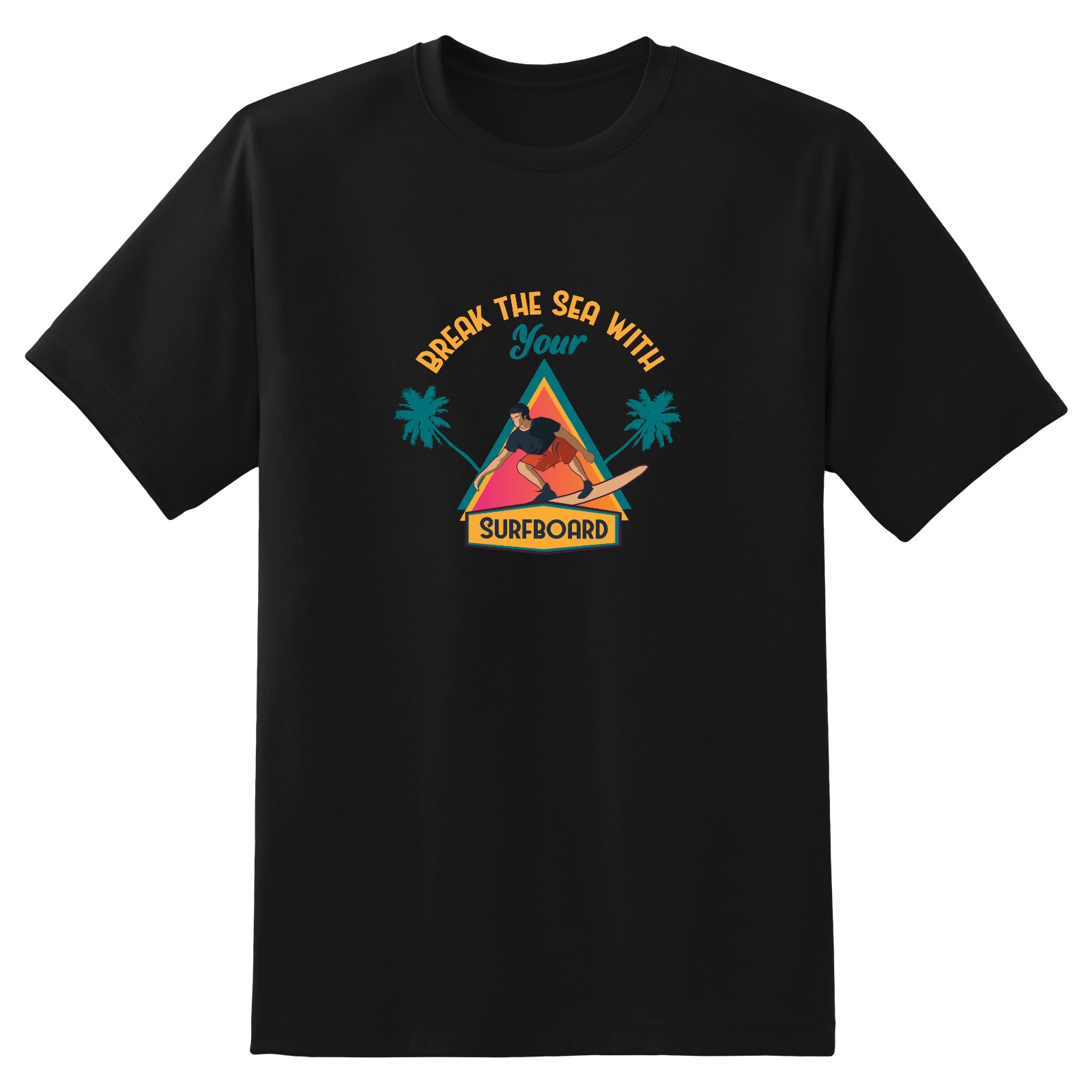 Break The Sea With Your Surfboard T-Shirt for Man Tops Short Sleeves Shirt Crew Neck Shirt XS