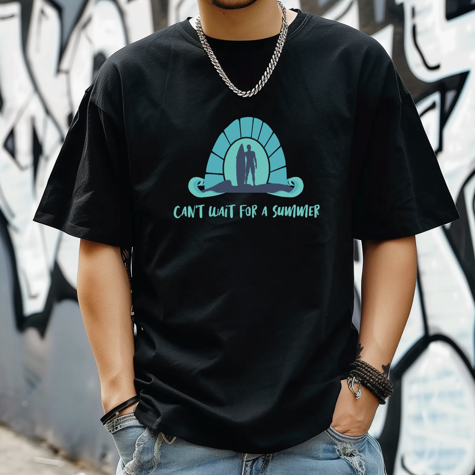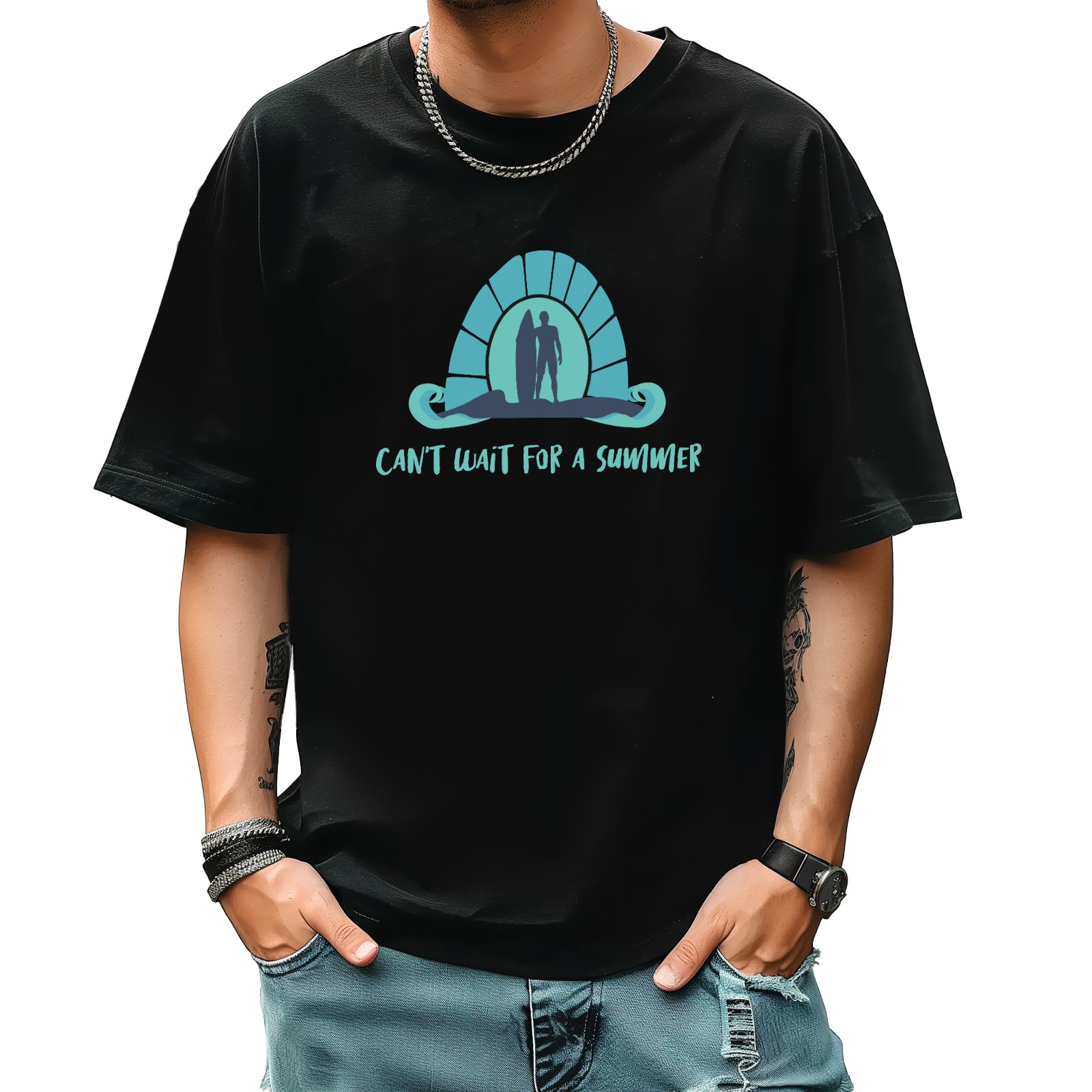 Cant Wait For A Summer T-Shirt for Man Tops Short Sleeves Shirt Crew Neck Shirt XS