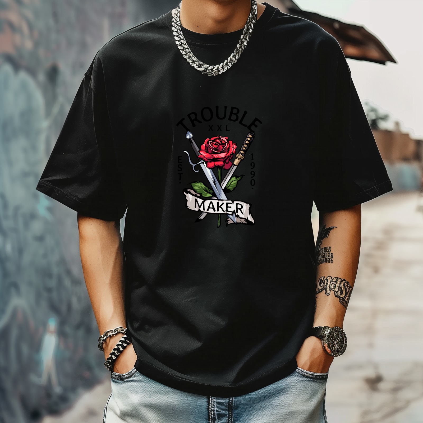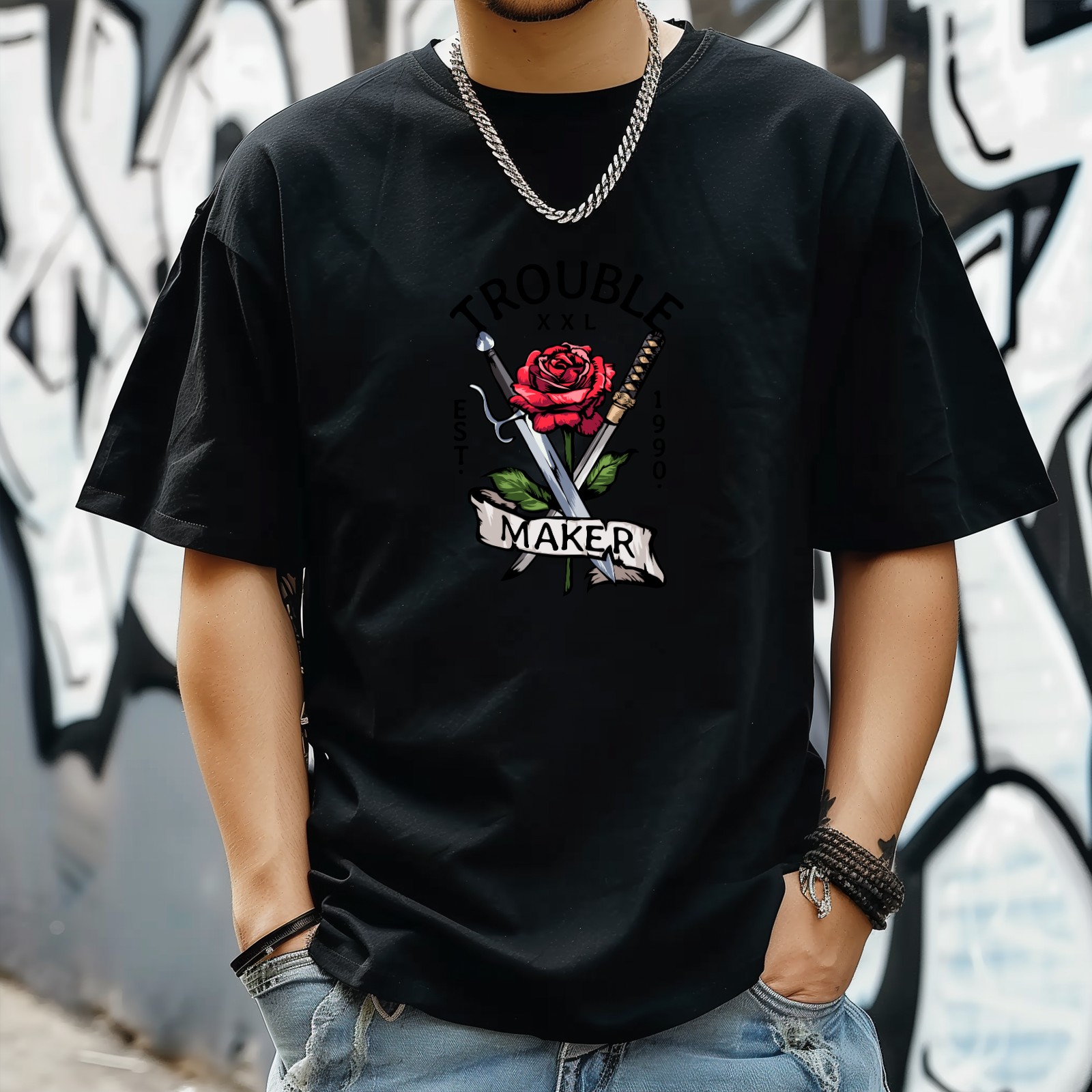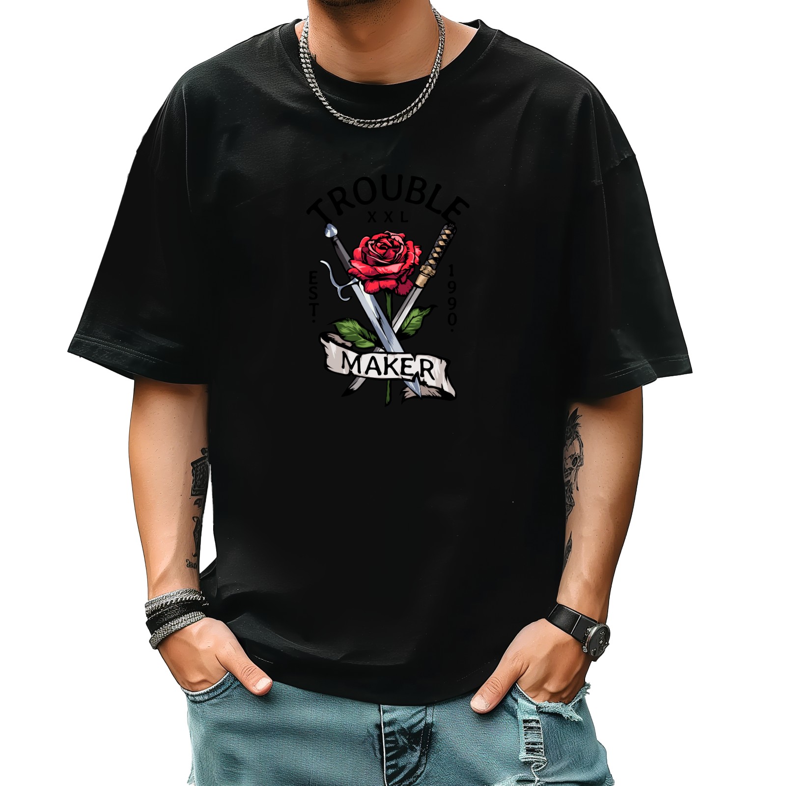 Trouble T-Shirt for Man Tops Short Sleeves Shirt Crew Neck Shirt XS