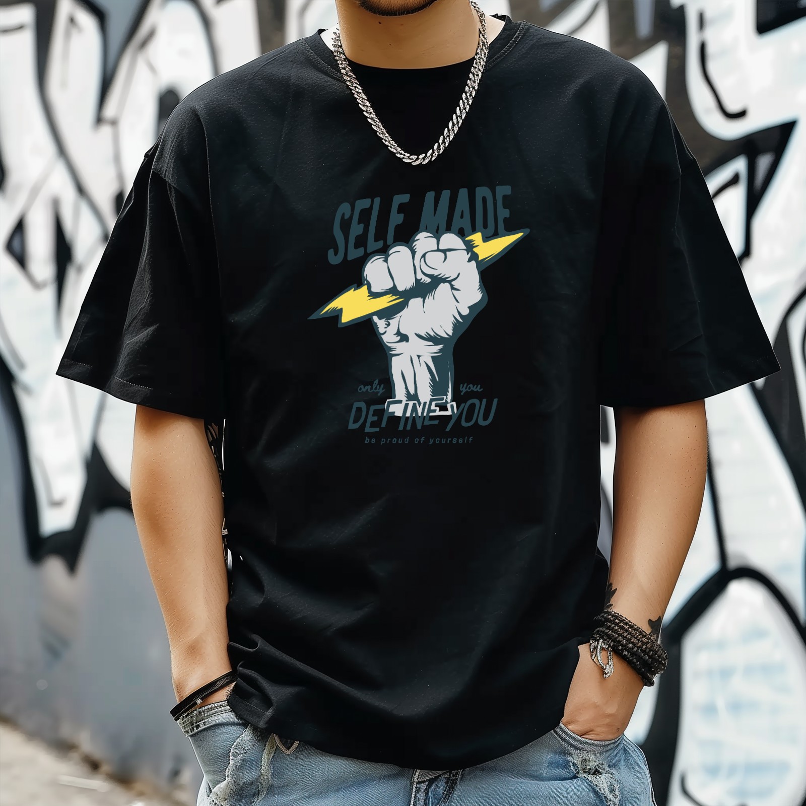 Self Made T-Shirt for Man Tops Short Sleeves Shirt Crew Neck Shirt XS