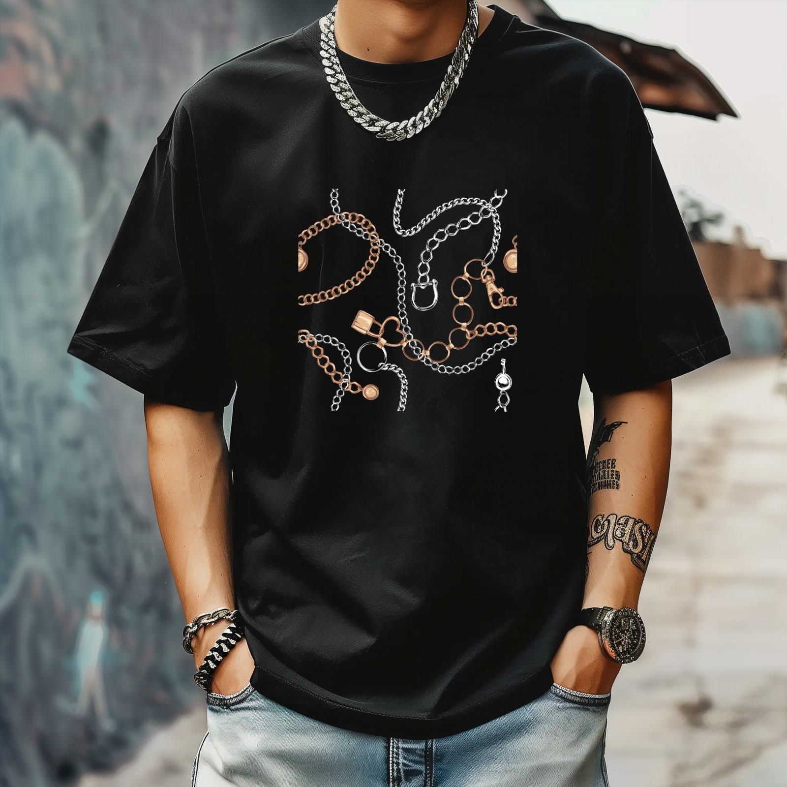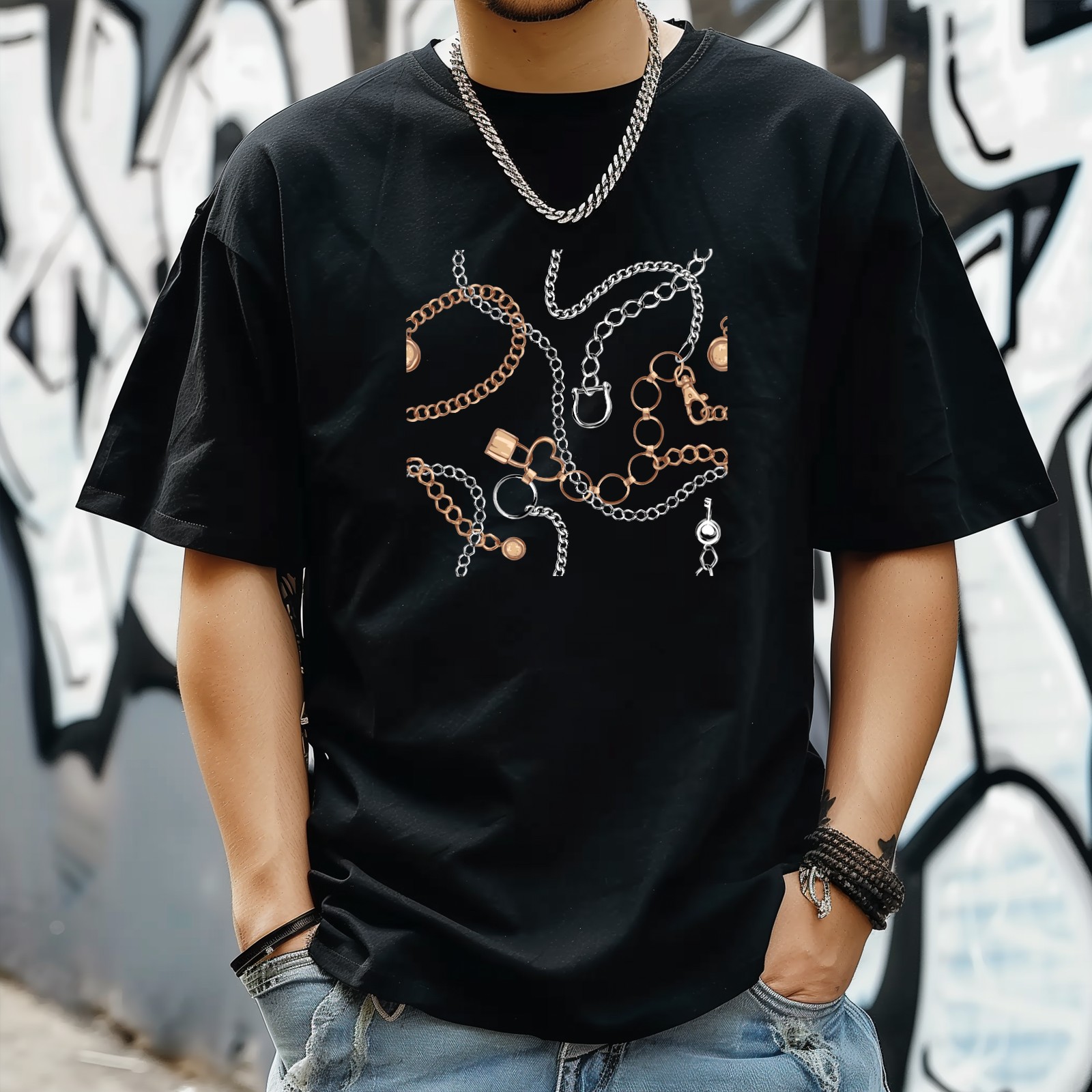 Necklaces T-Shirt for Man Tops Short Sleeves Shirt Crew Neck Shirt XS