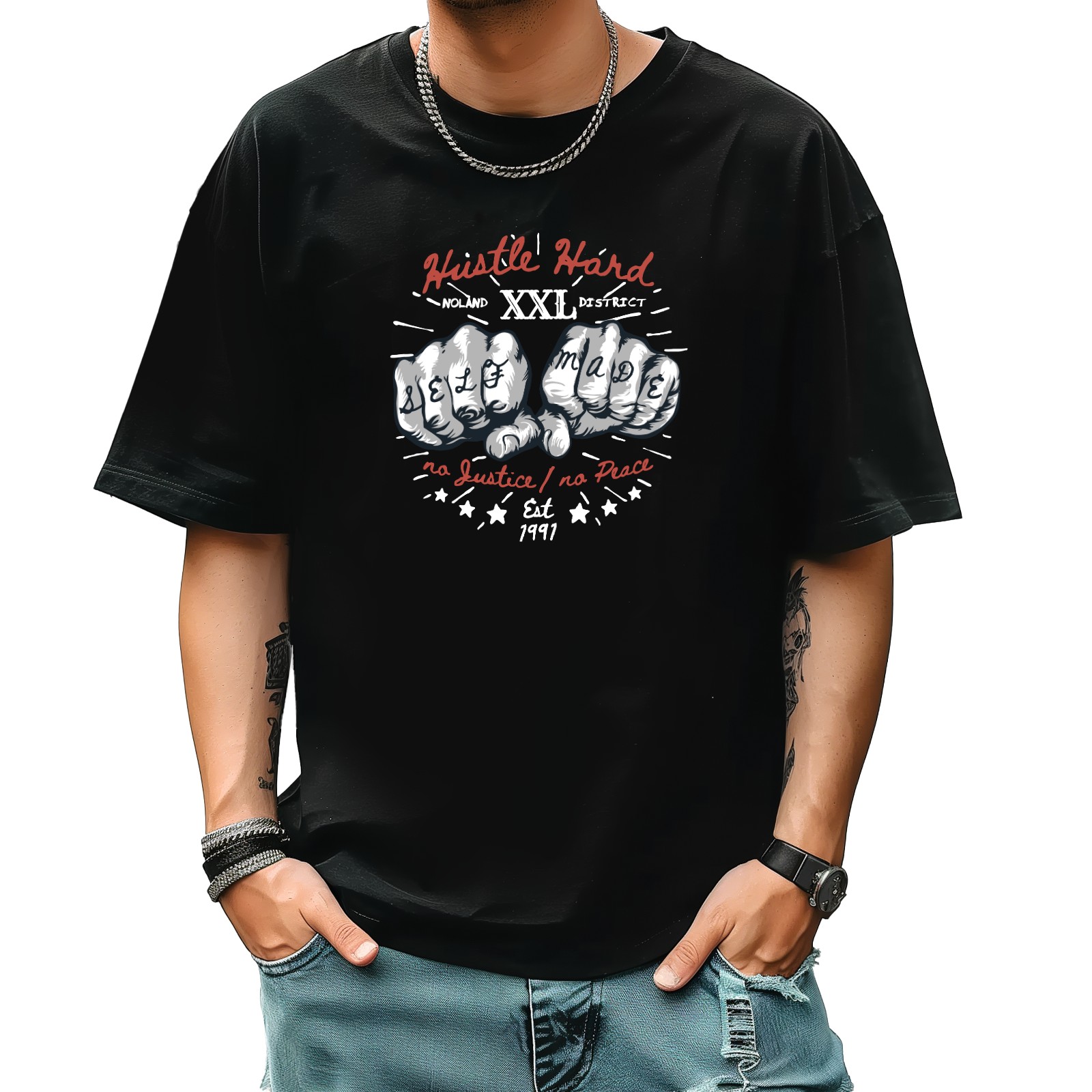 Huatee Hand T-Shirt for Man Tops Short Sleeves Shirt Crew Neck Shirt XS