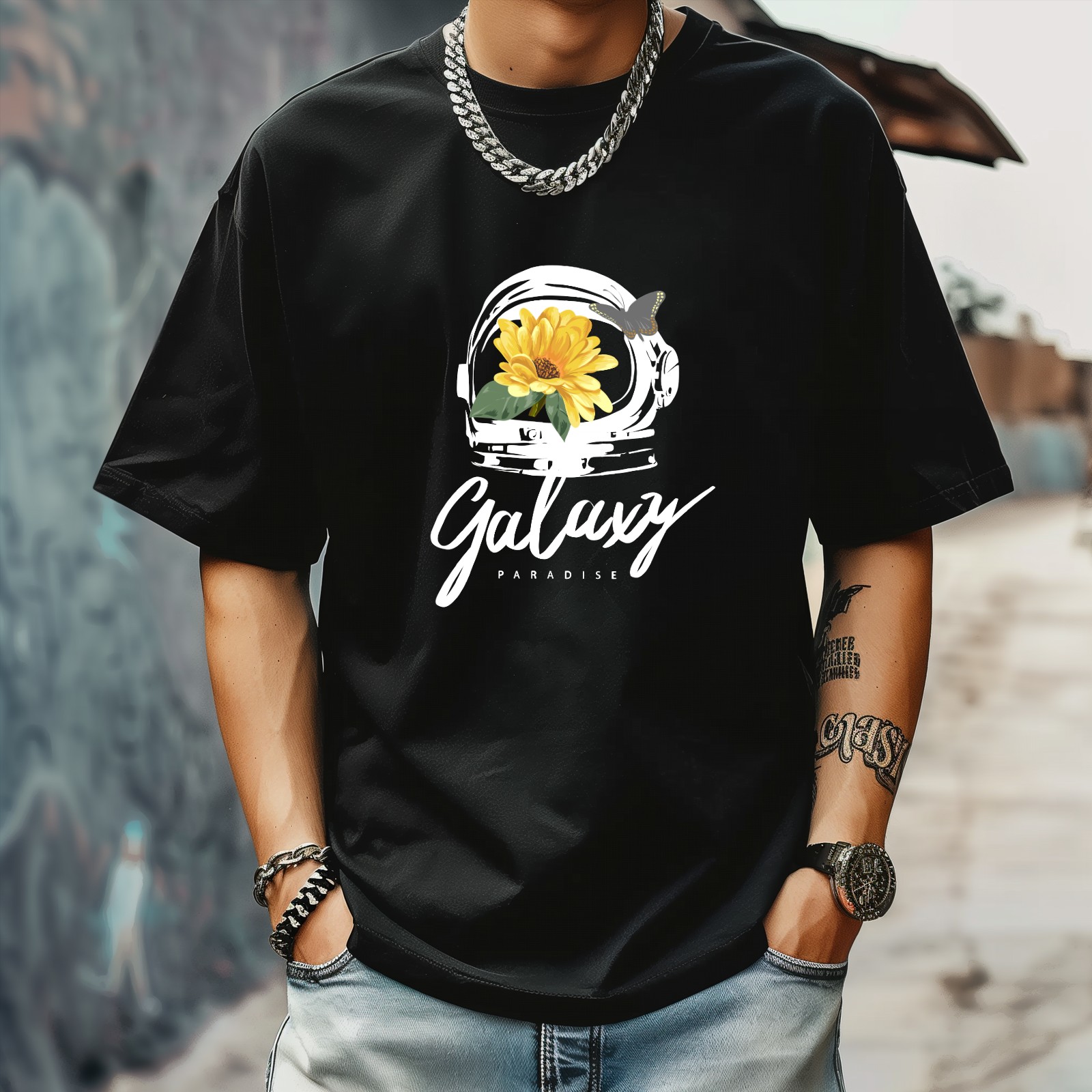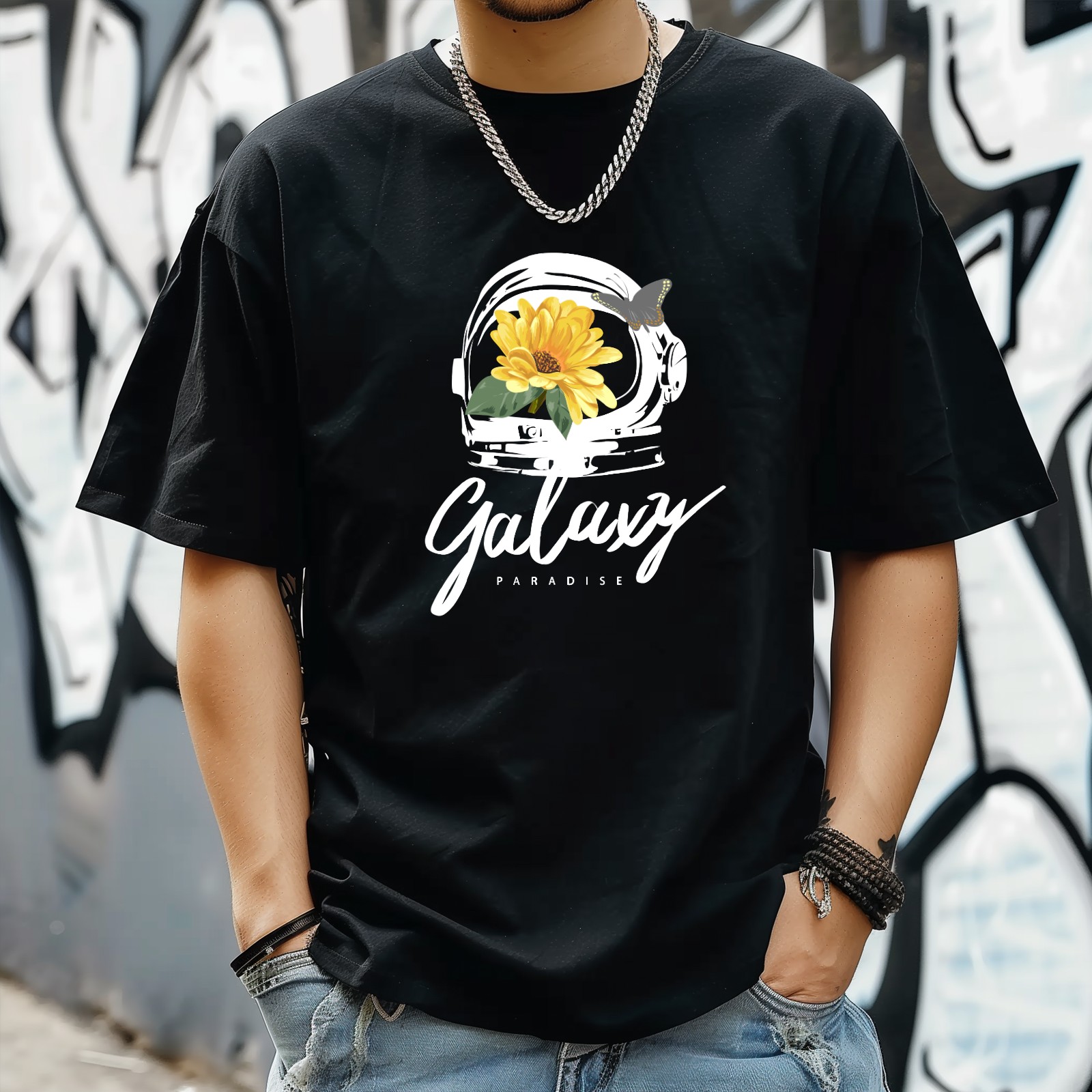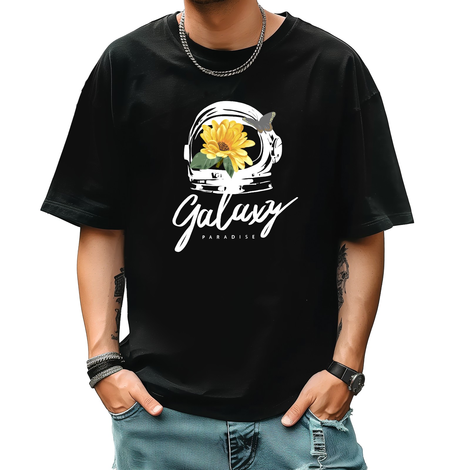 Galaxy T-Shirt for Man Tops Short Sleeves Shirt Crew Neck Shirt XS