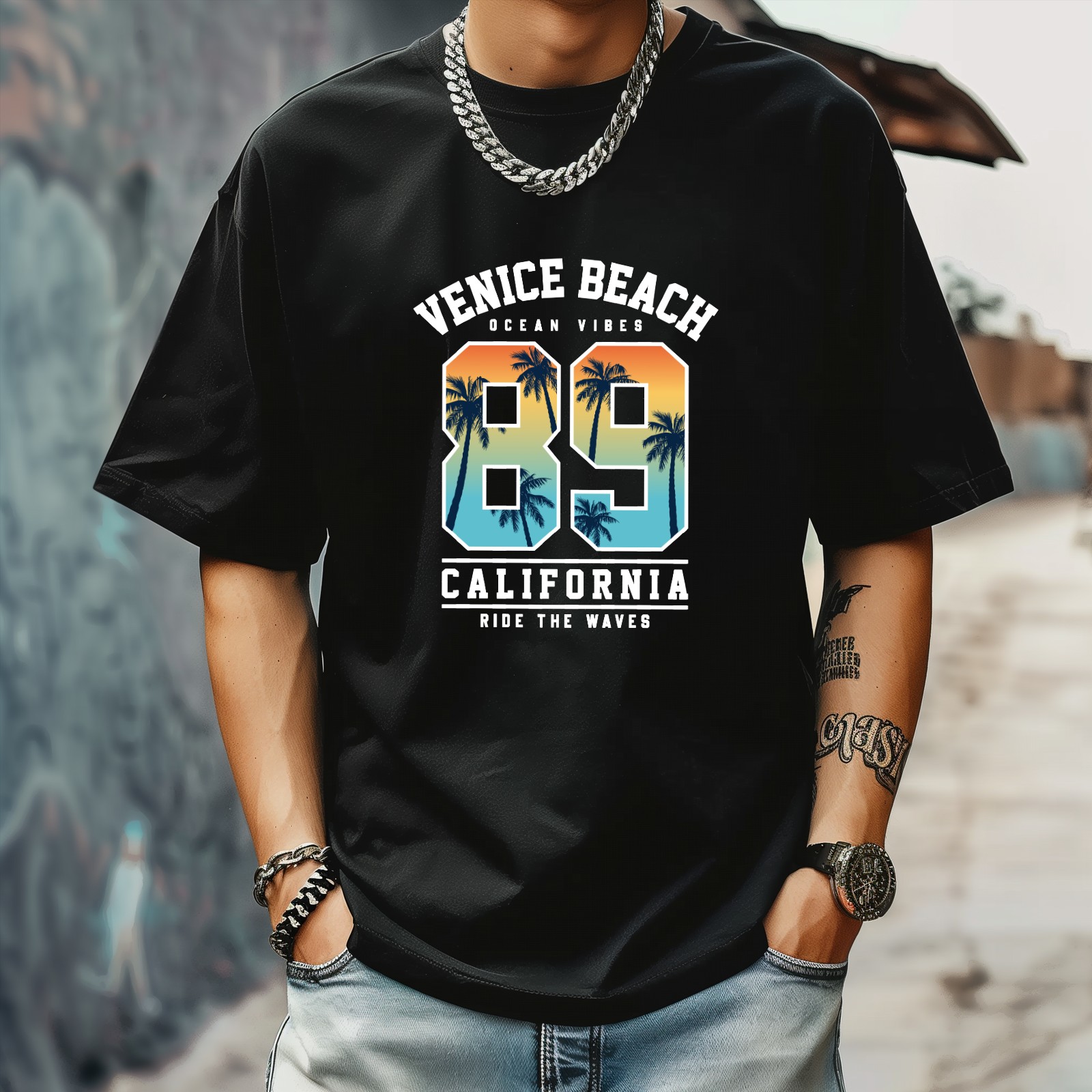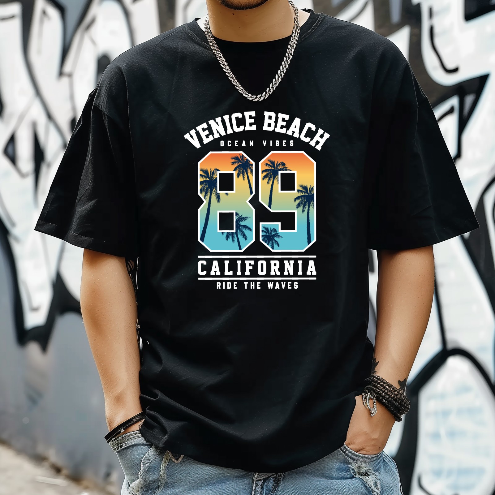 Venice Beach T-Shirt for Man Tops Short Sleeves Shirt Crew Neck Shirt XS