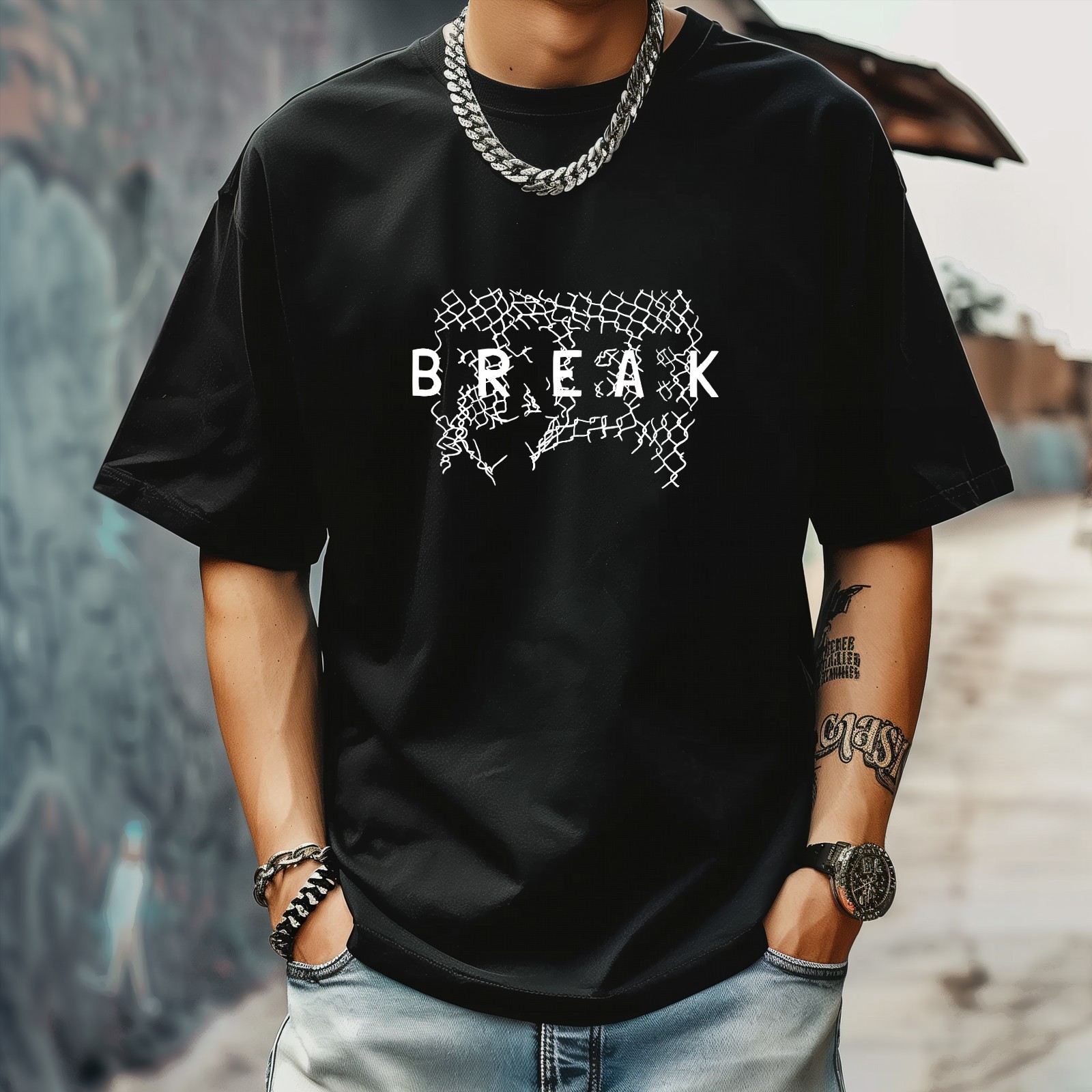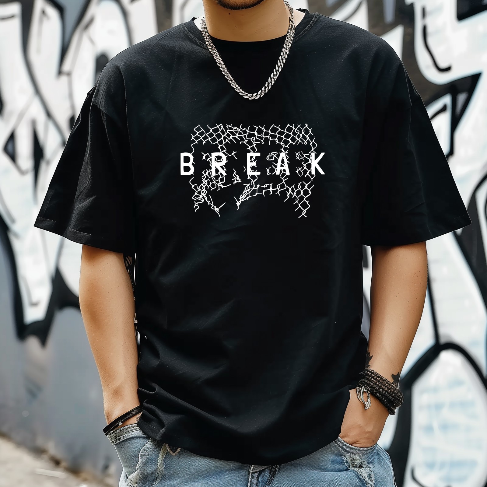 Break T-Shirt for Man Tops Short Sleeves Shirt Crew Neck Shirt XS