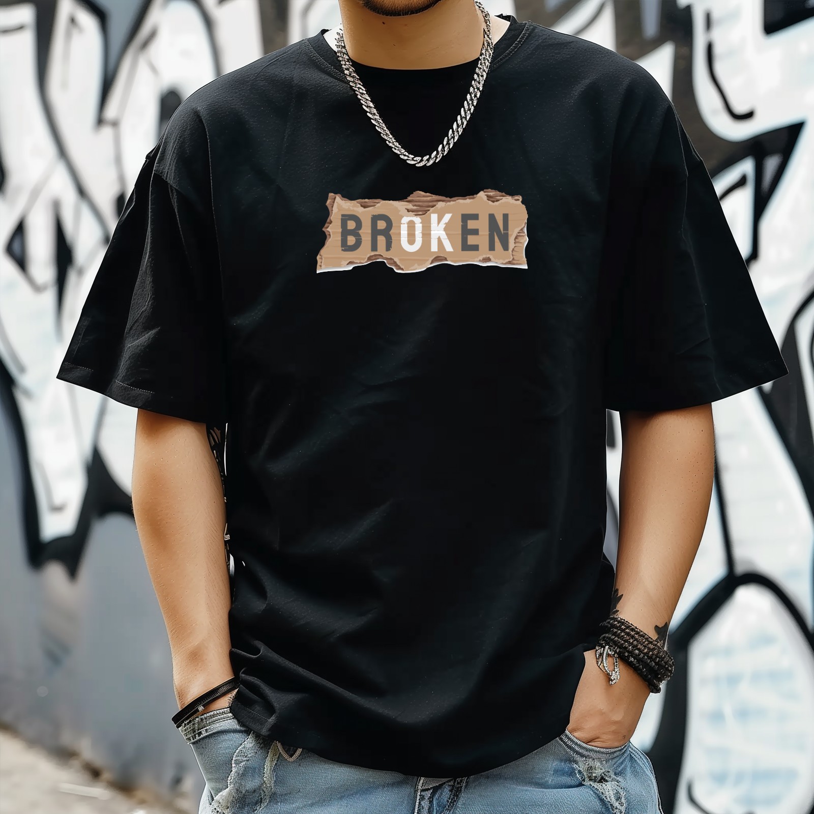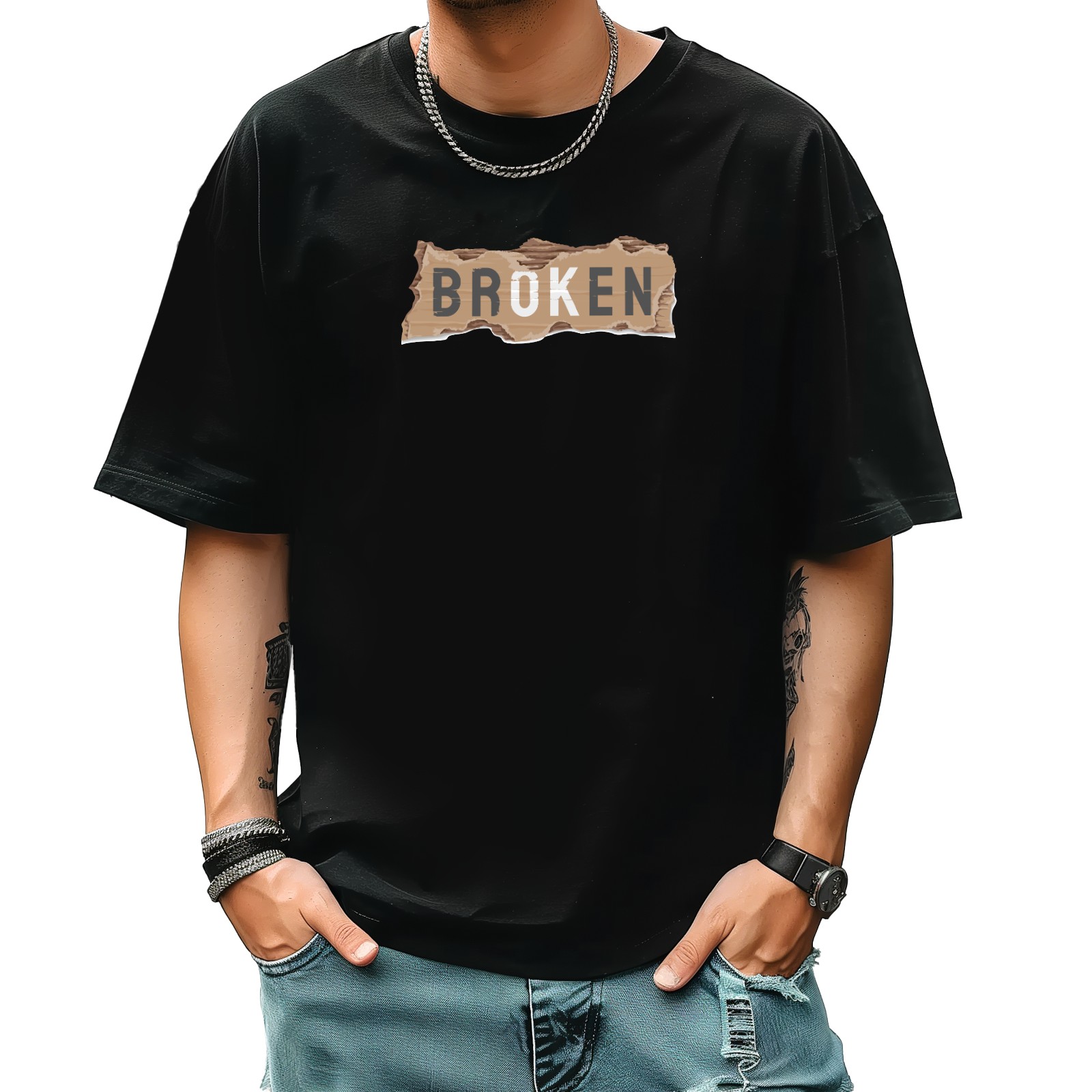 Breoken T-Shirt for Man Tops Short Sleeves Shirt Crew Neck Shirt XS