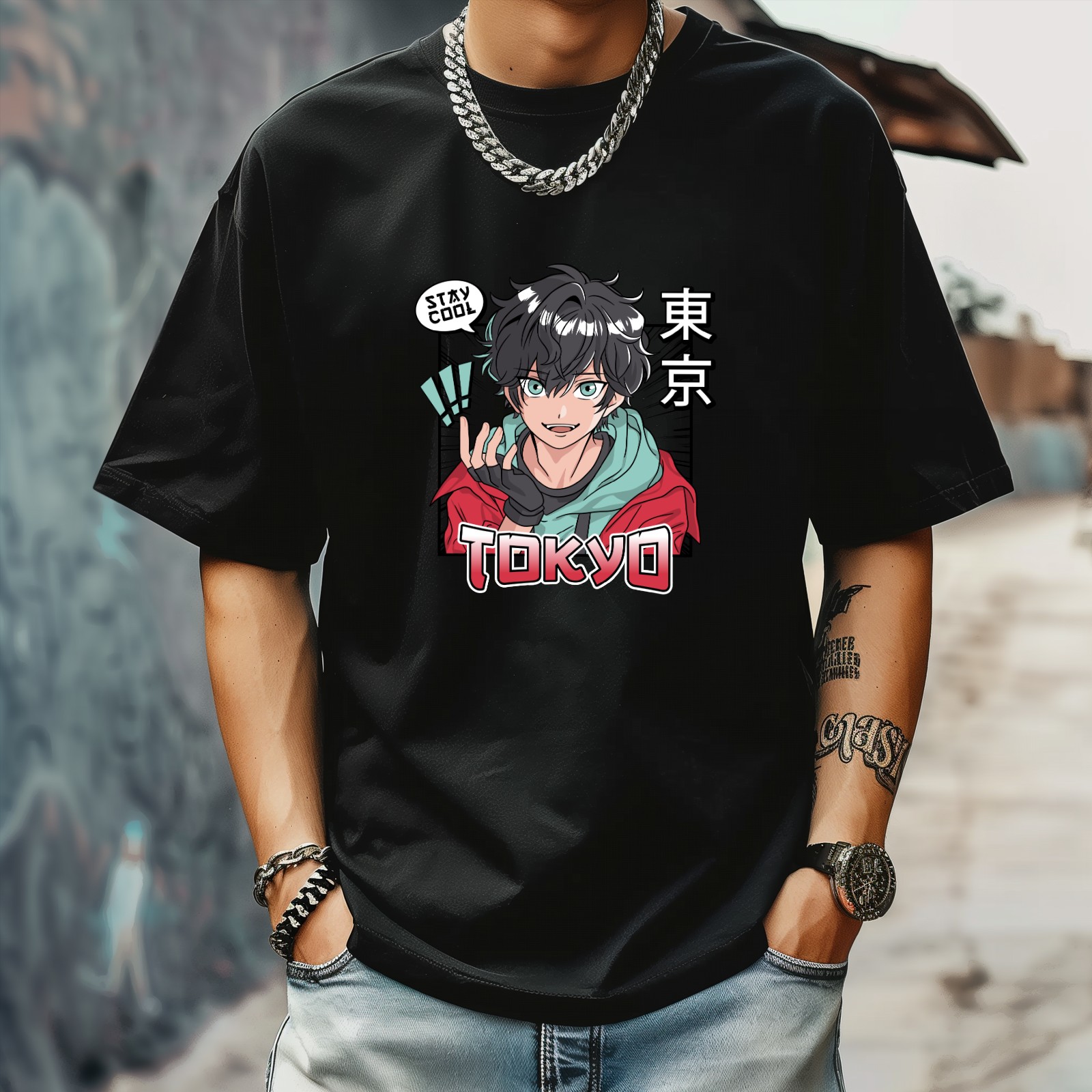 Tokyo T-Shirt for Man Tops Short Sleeves Shirt Crew Neck Shirt XS