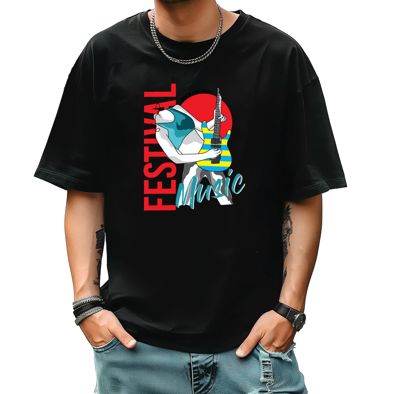 Festival Music T-Shirt for Man Tops Short Sleeves Shirt Crew Neck Shirt XS
