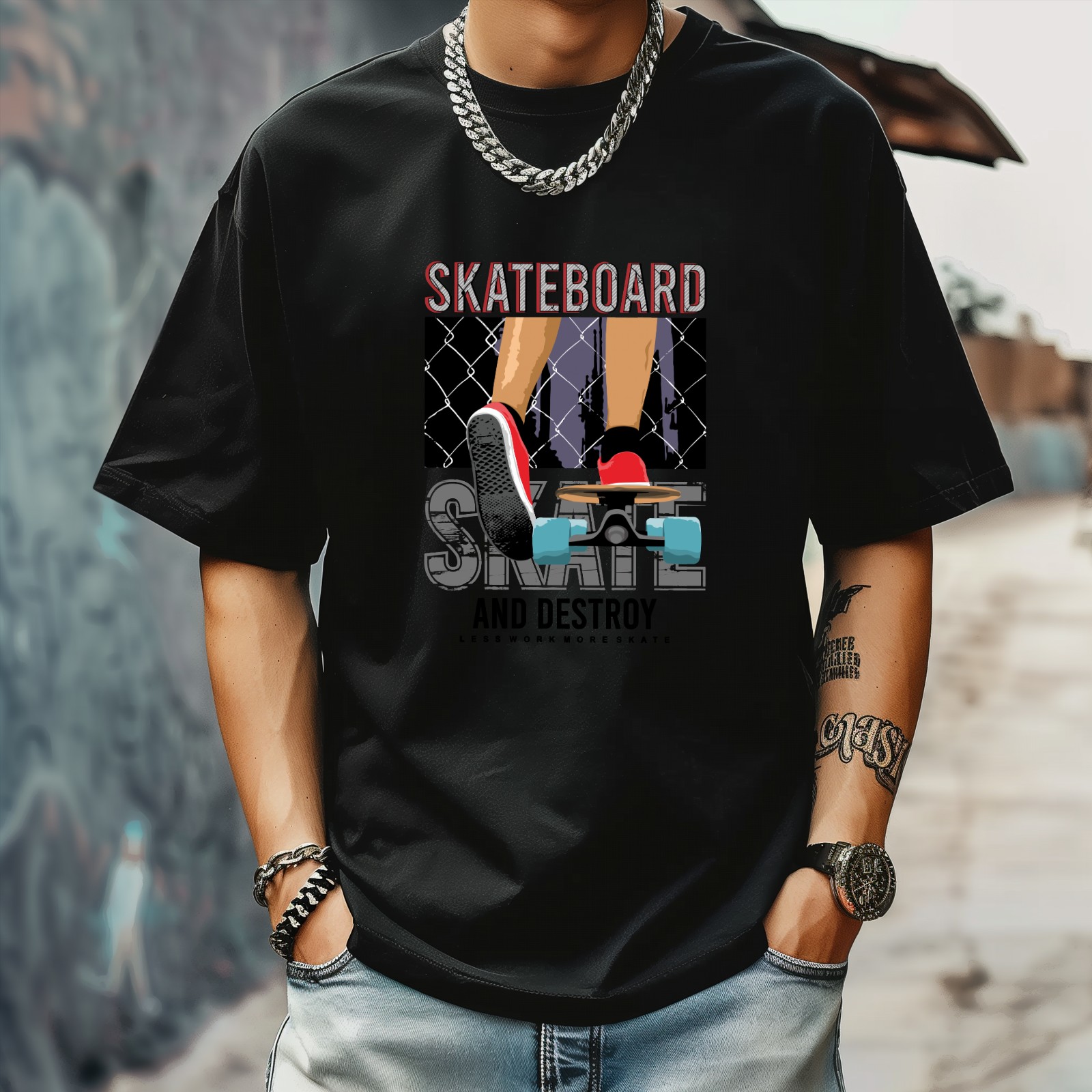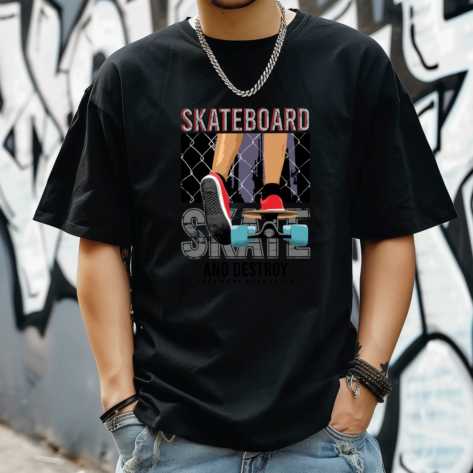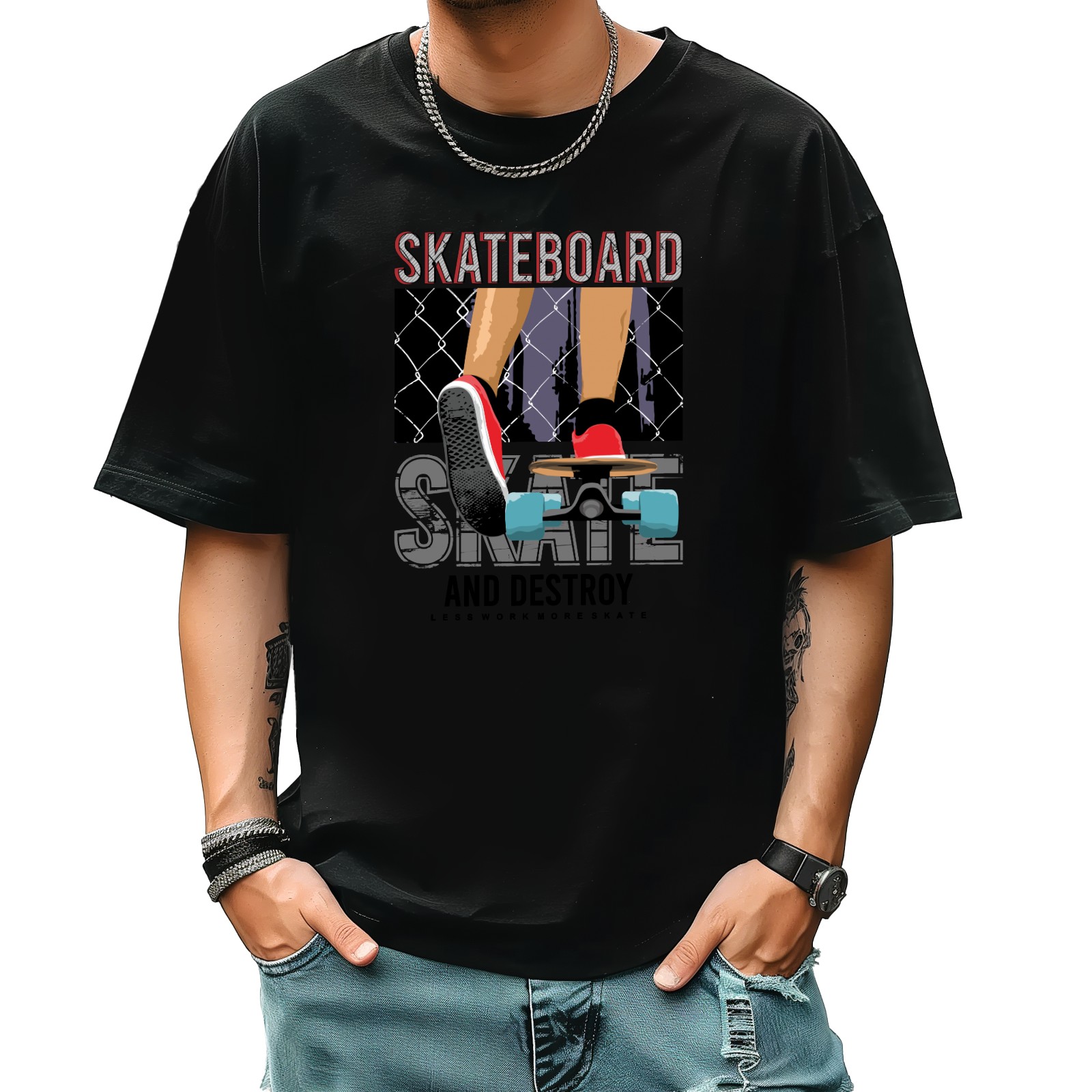 Skateboard T-Shirt for Man Tops Short Sleeves Shirt Crew Neck Shirt XS