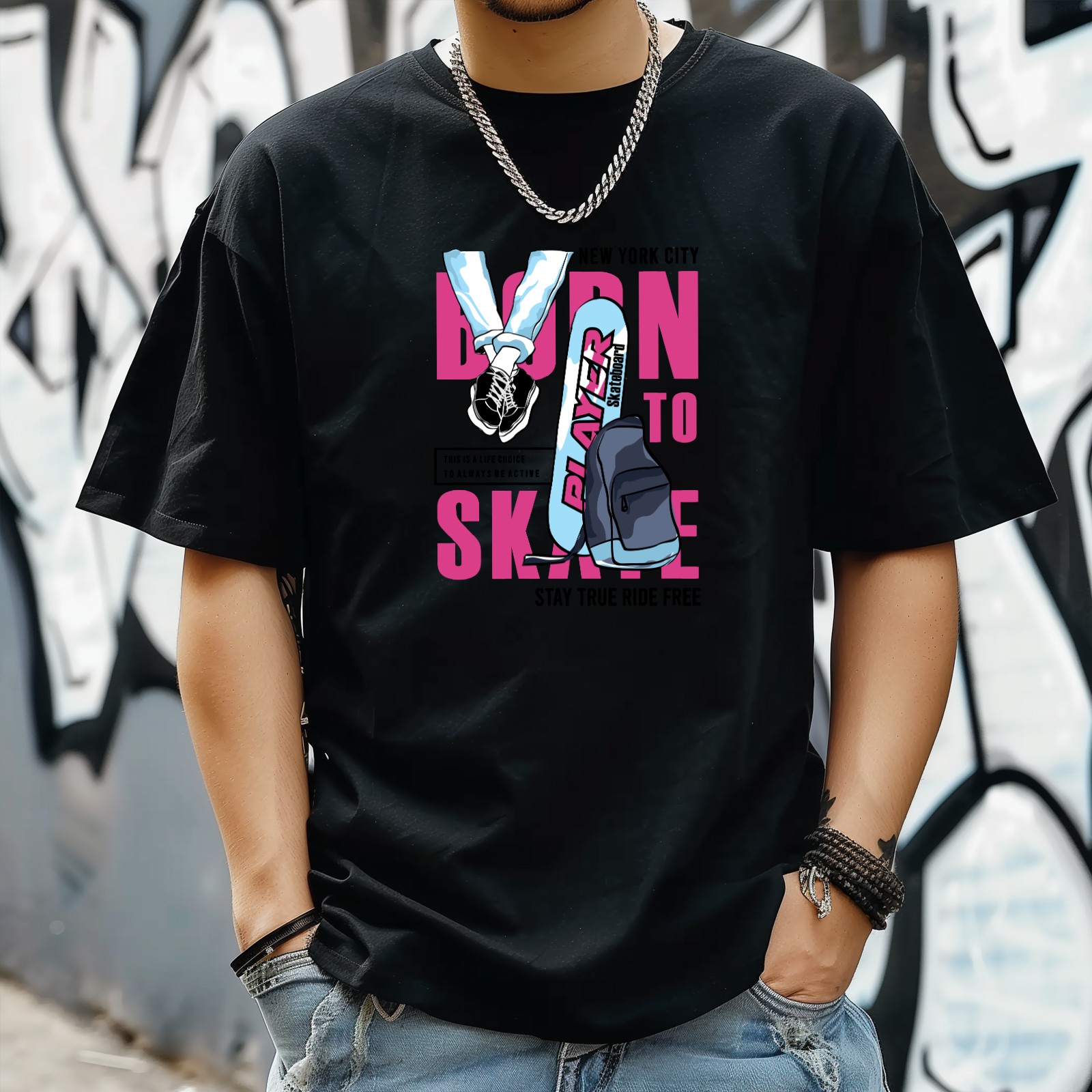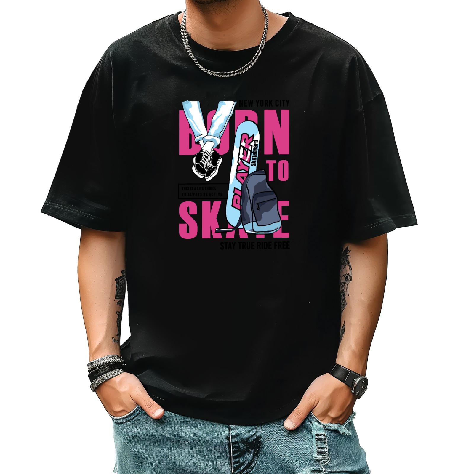 Skay True Ride Free T-Shirt for Man Tops Short Sleeves Shirt Crew Neck Shirt XS