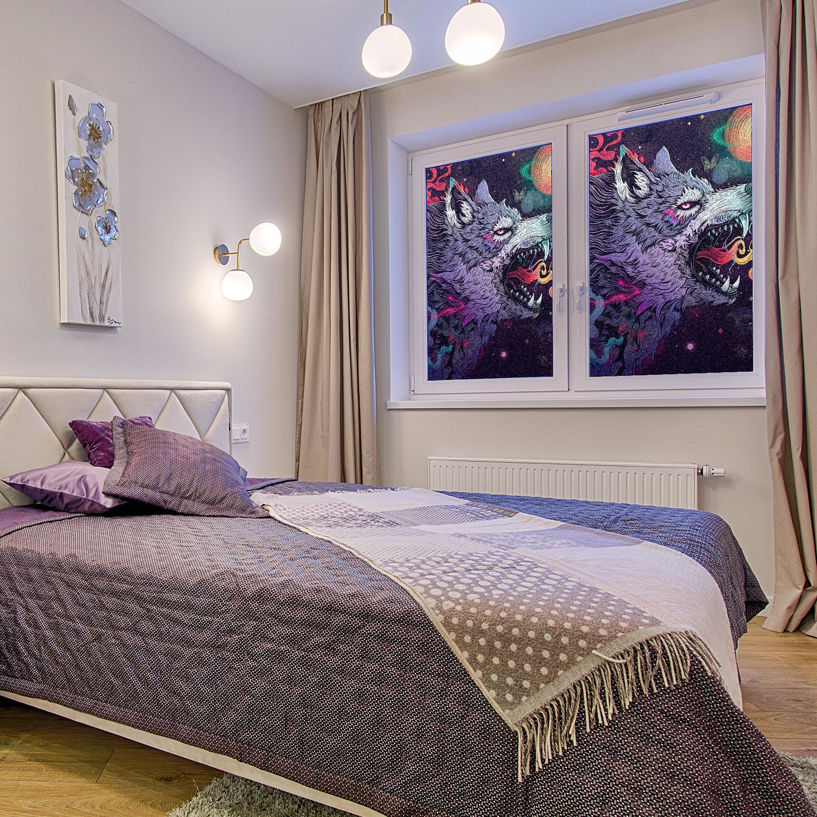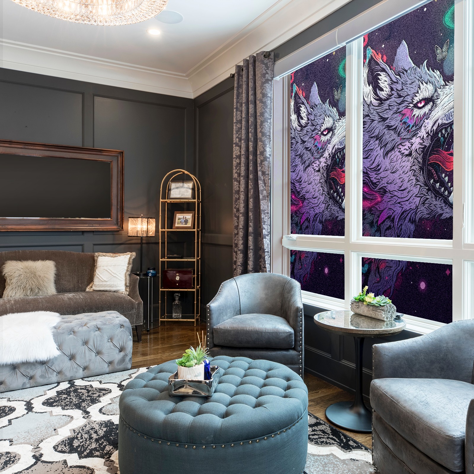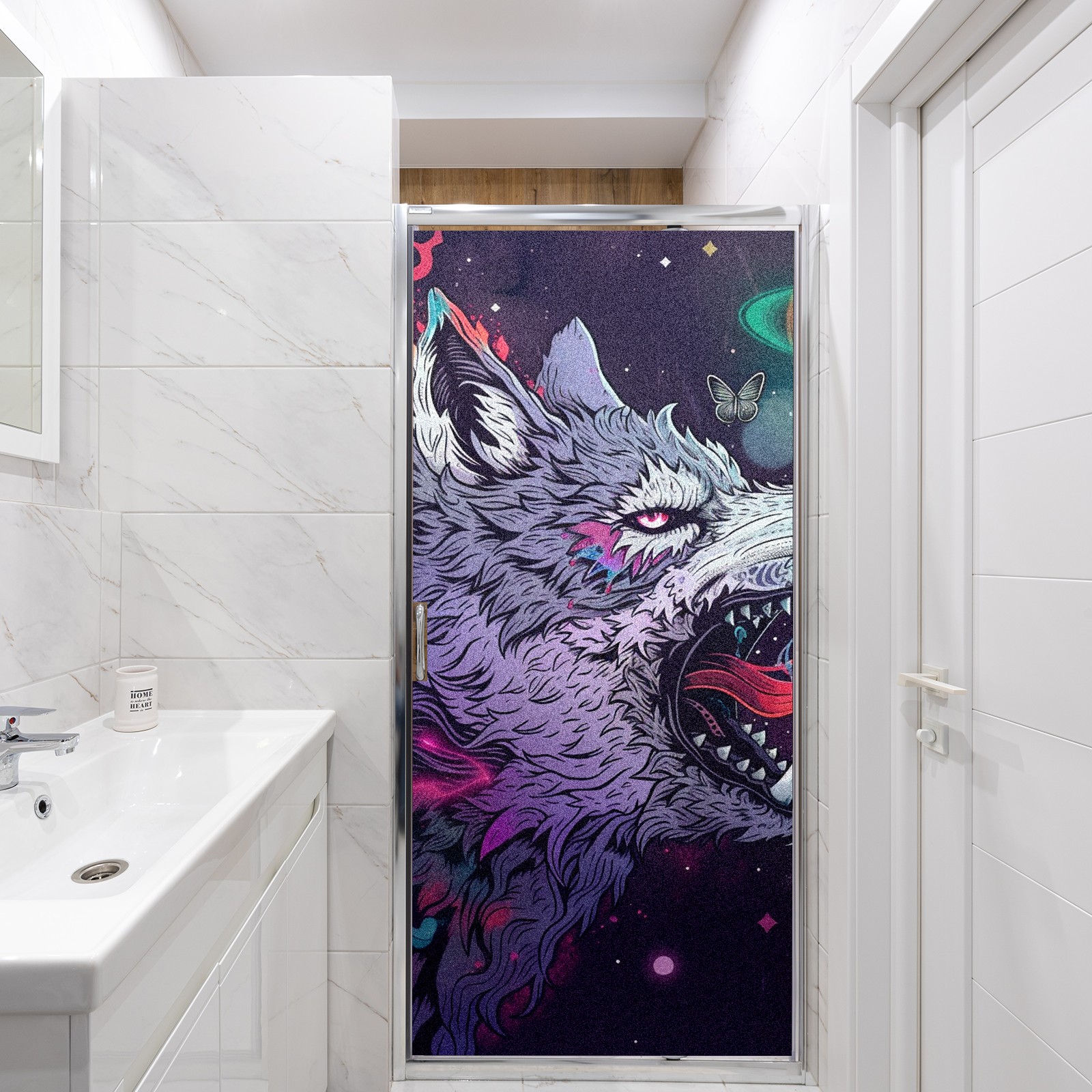Static Cling Decorative Window Film Frosted Privacy Film Window Clings for Glass Windows No Glue Window Sticker for Bathroom Bedroom Office Wolf