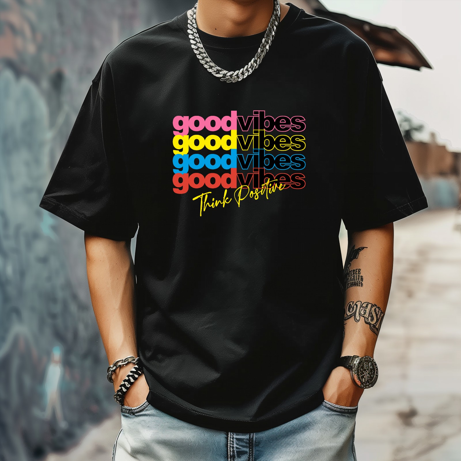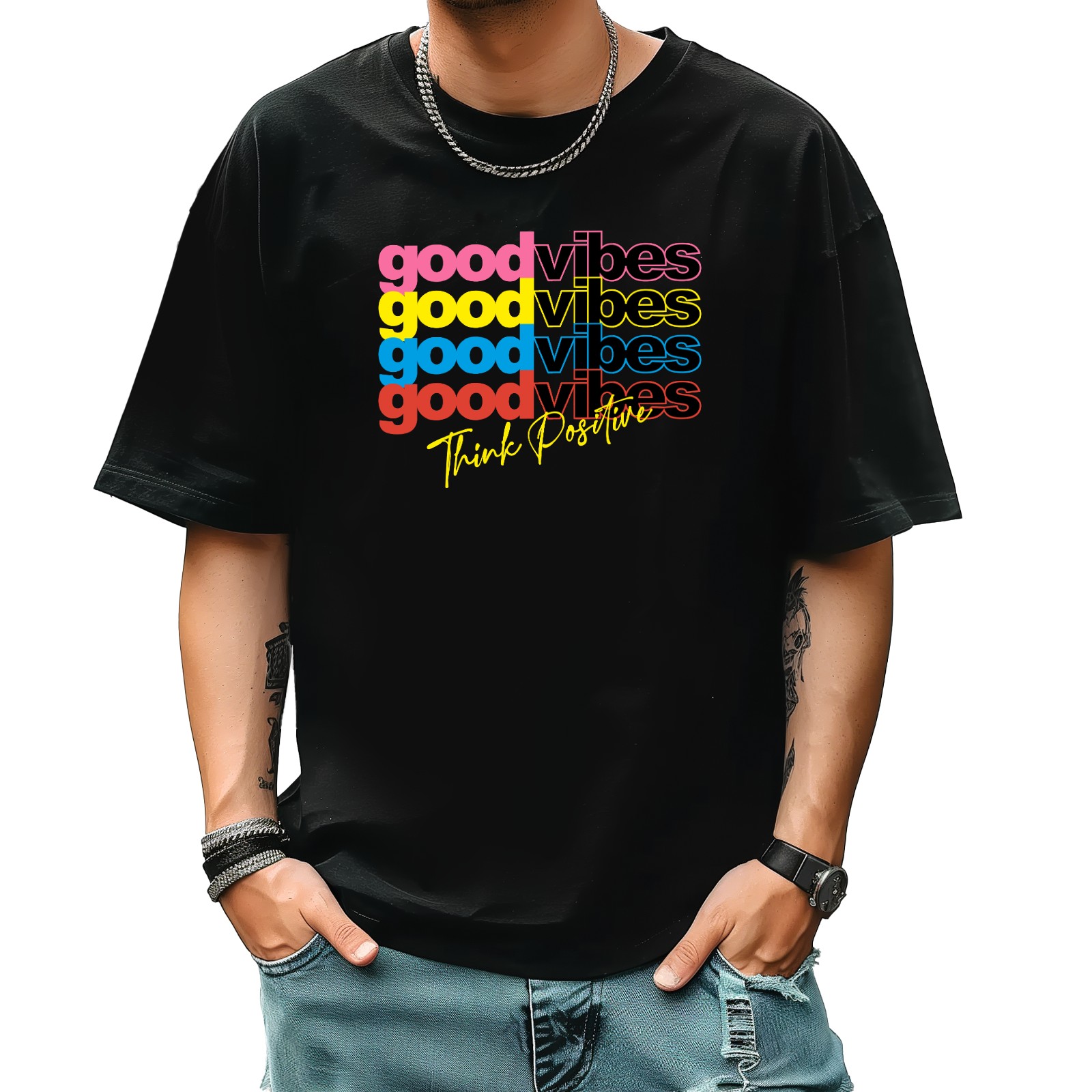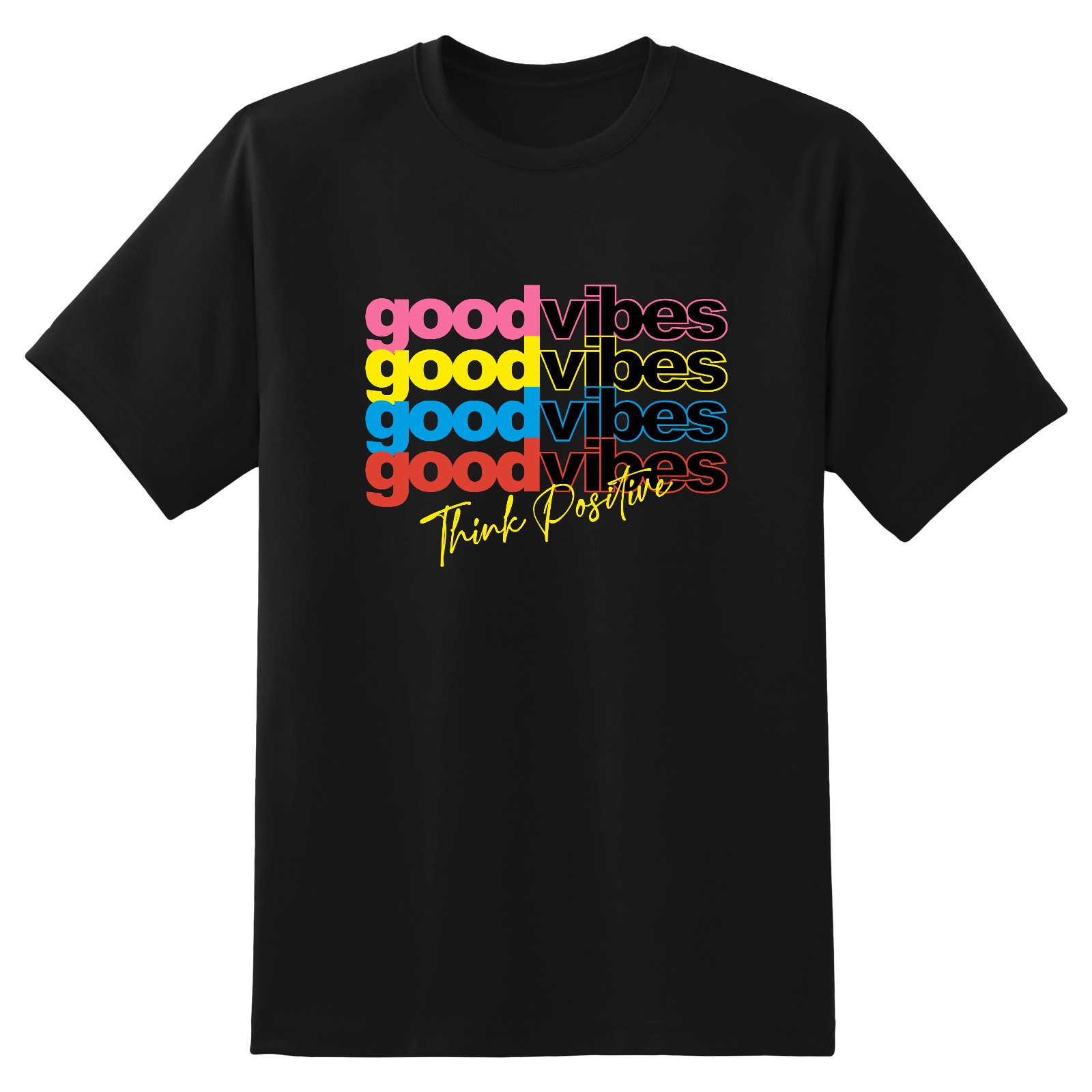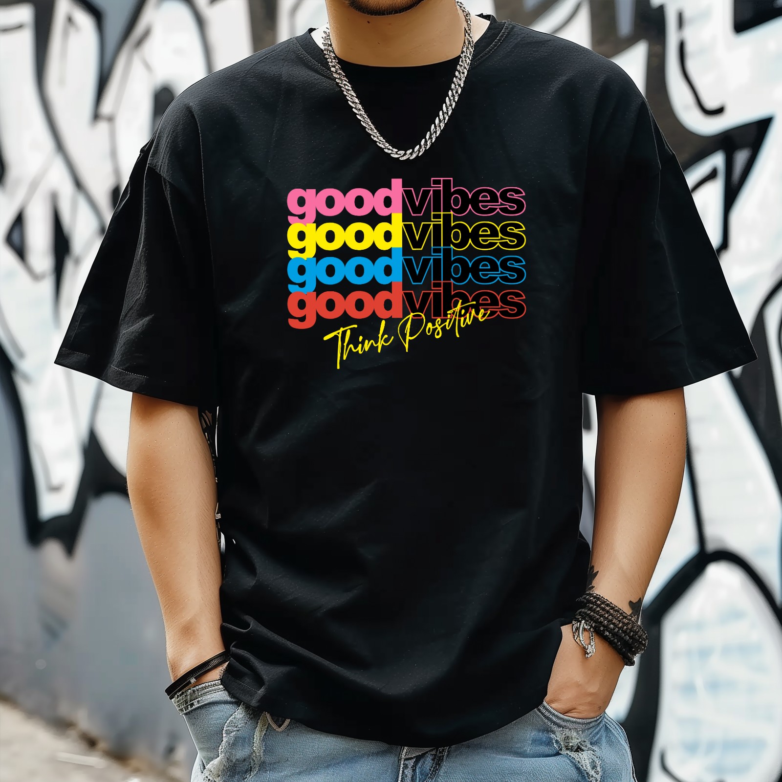 Good Vibes T-Shirt for Man Tops Short Sleeves Shirt Crew Neck Shirt XS