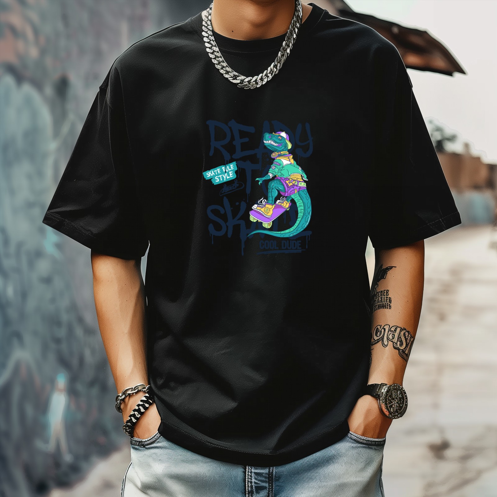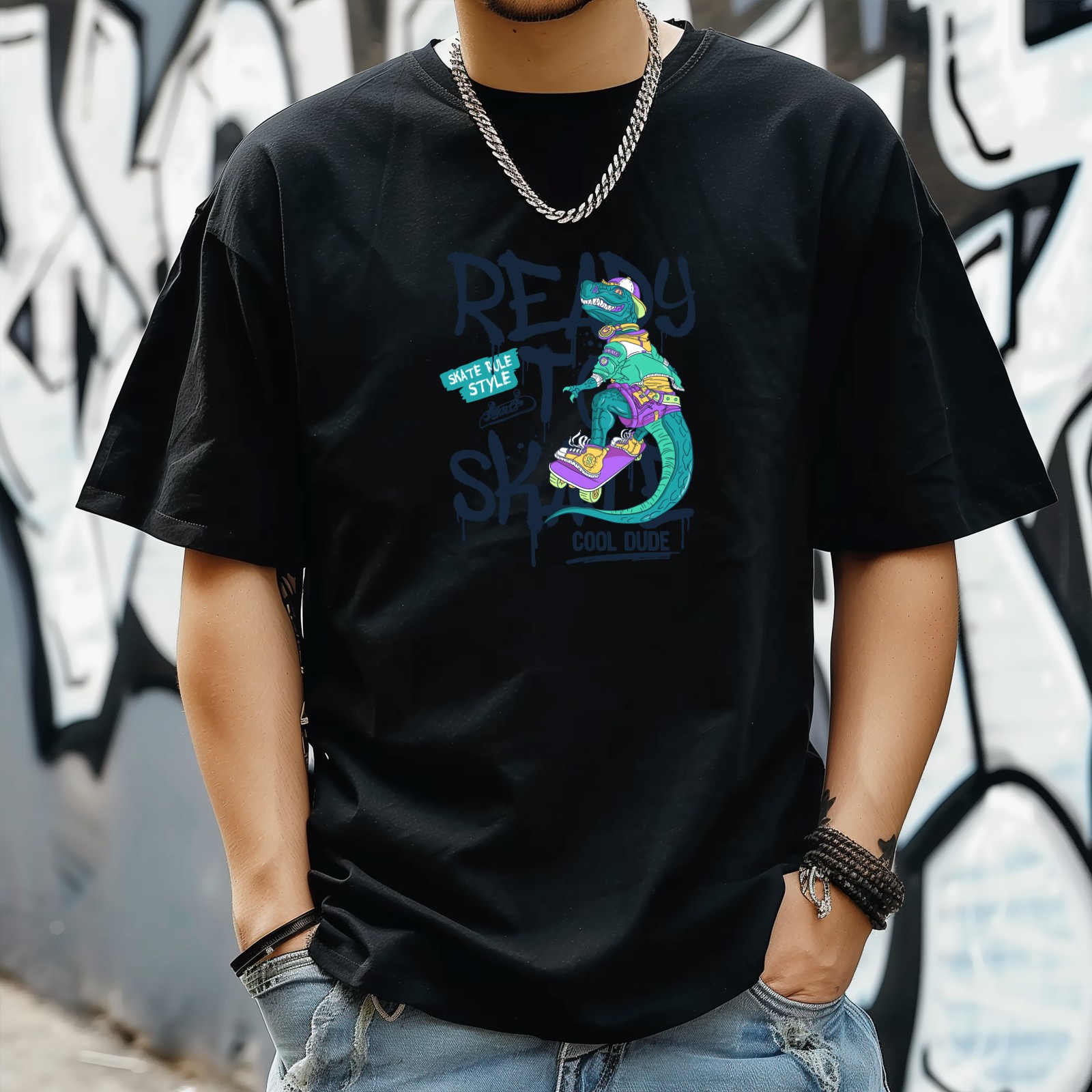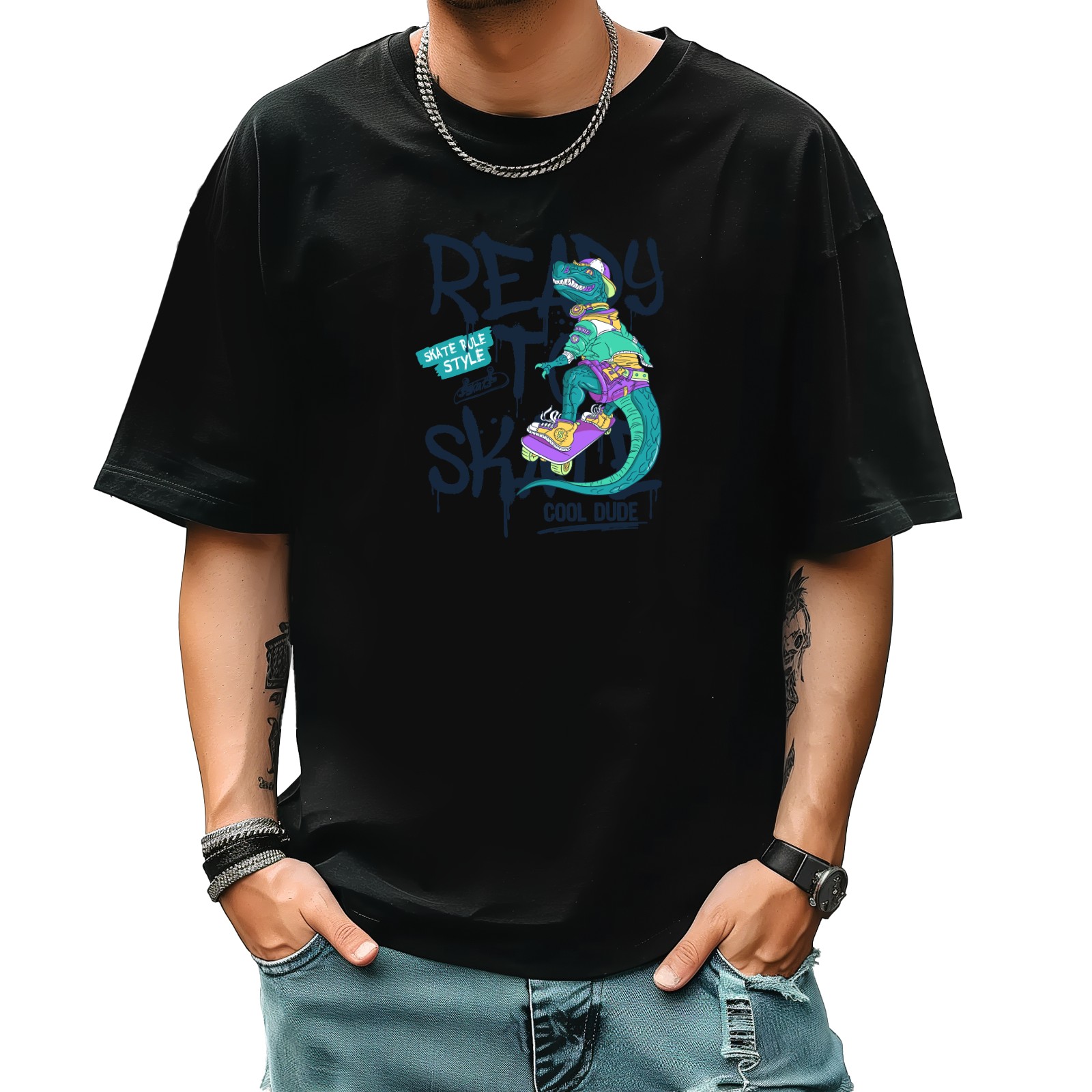 Ready Skate T-Shirt for Man Tops Short Sleeves Shirt Crew Neck Shirt XS