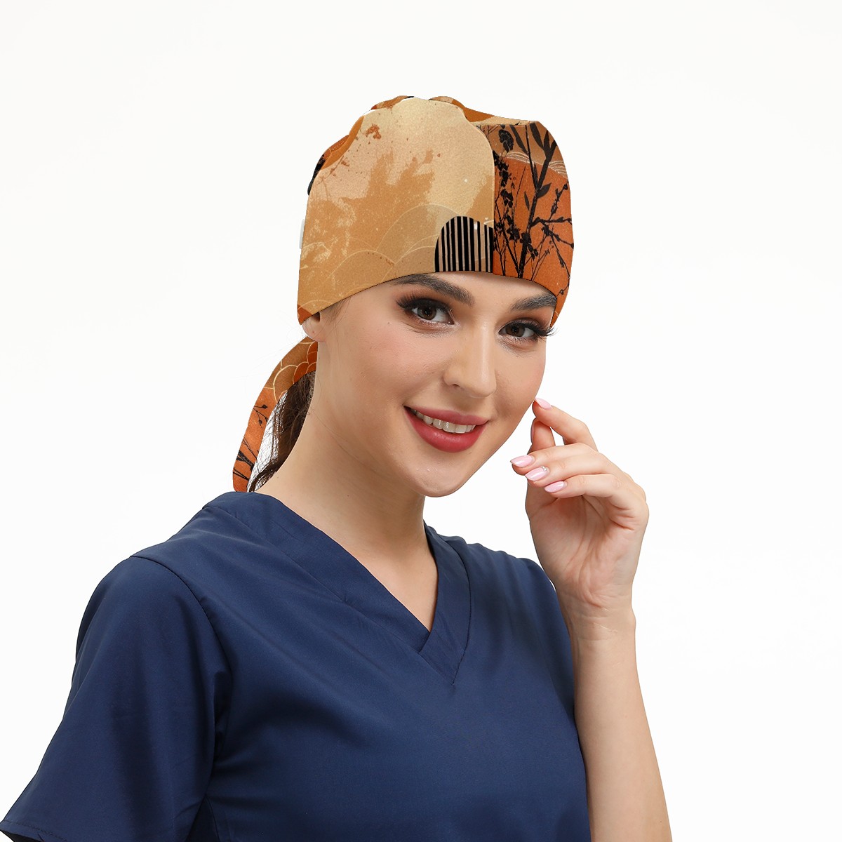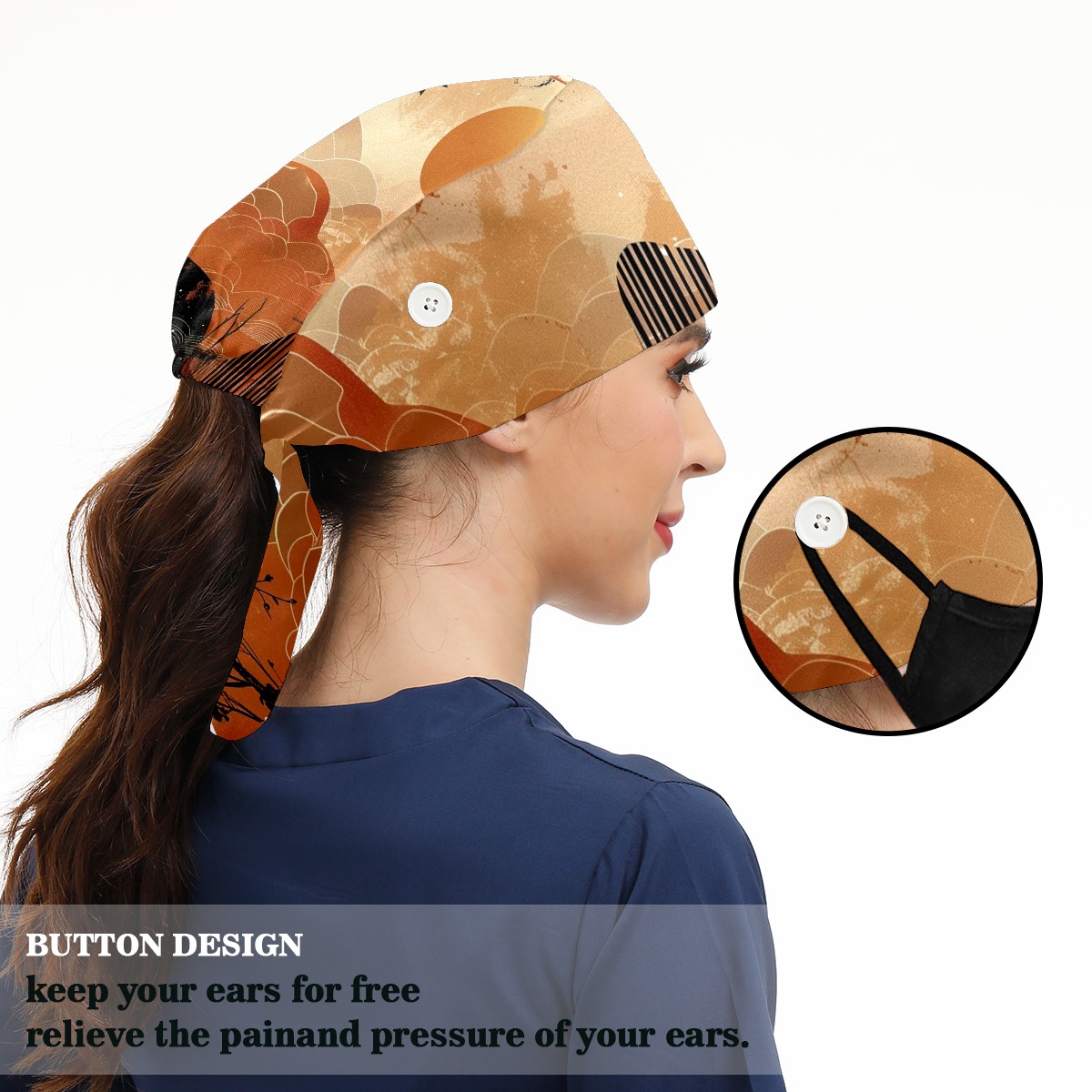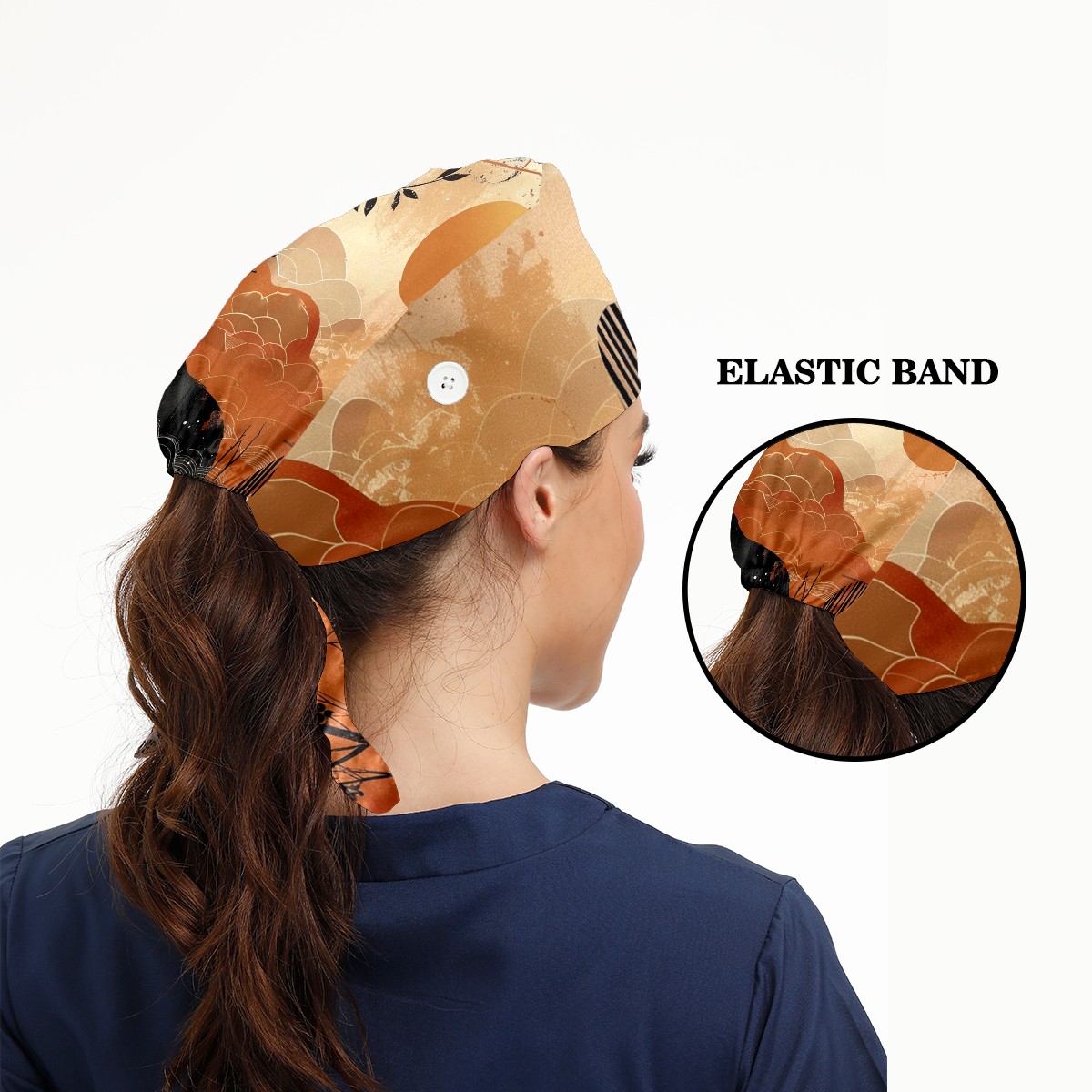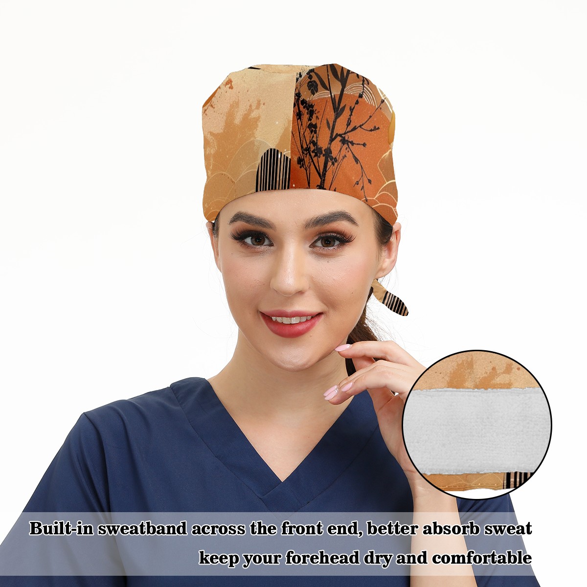 Working Caps with Button & Sweatband Satin Lined Cotton Adjustable Nurse Hats Elastic Band Scrub Cap Surgeon Hat Sun