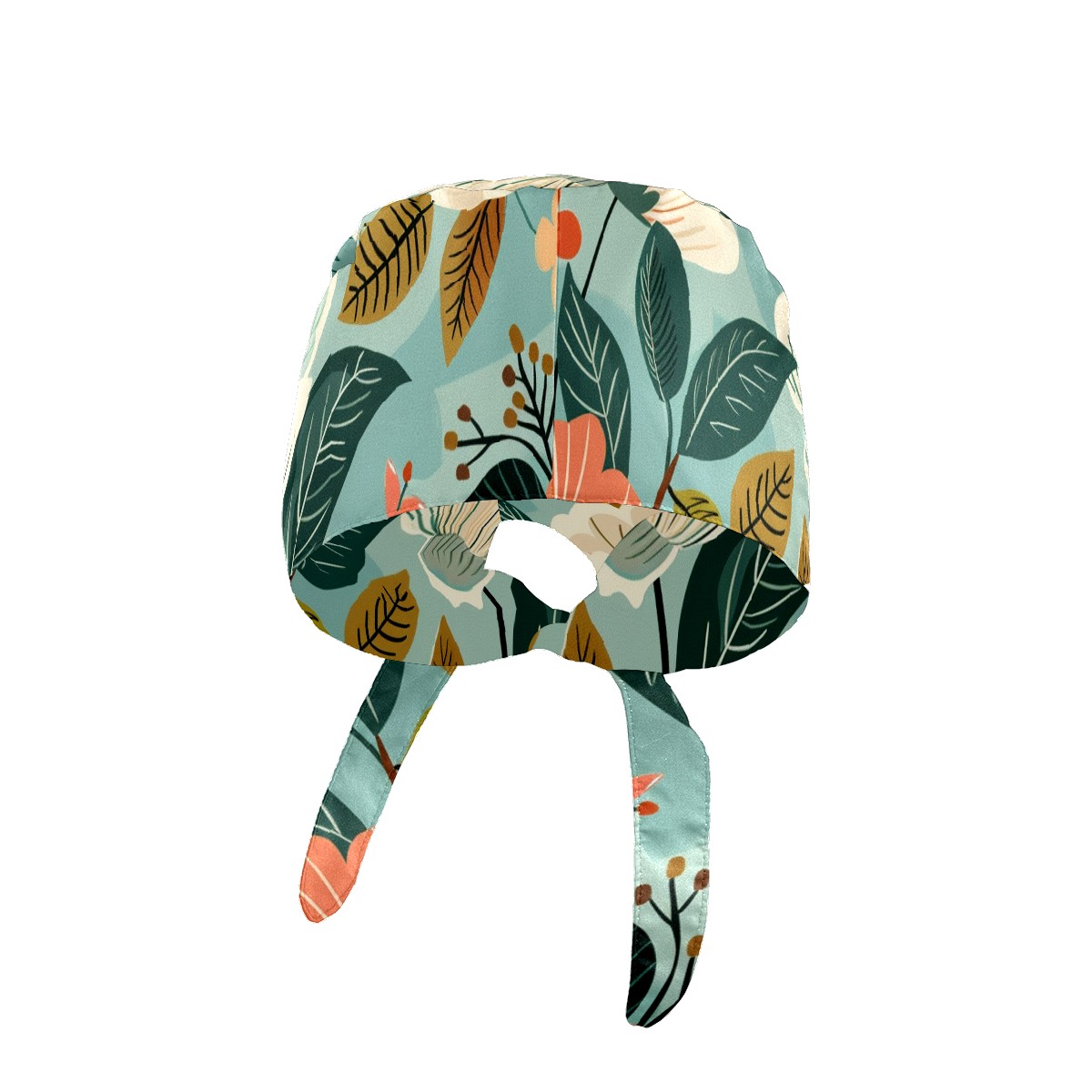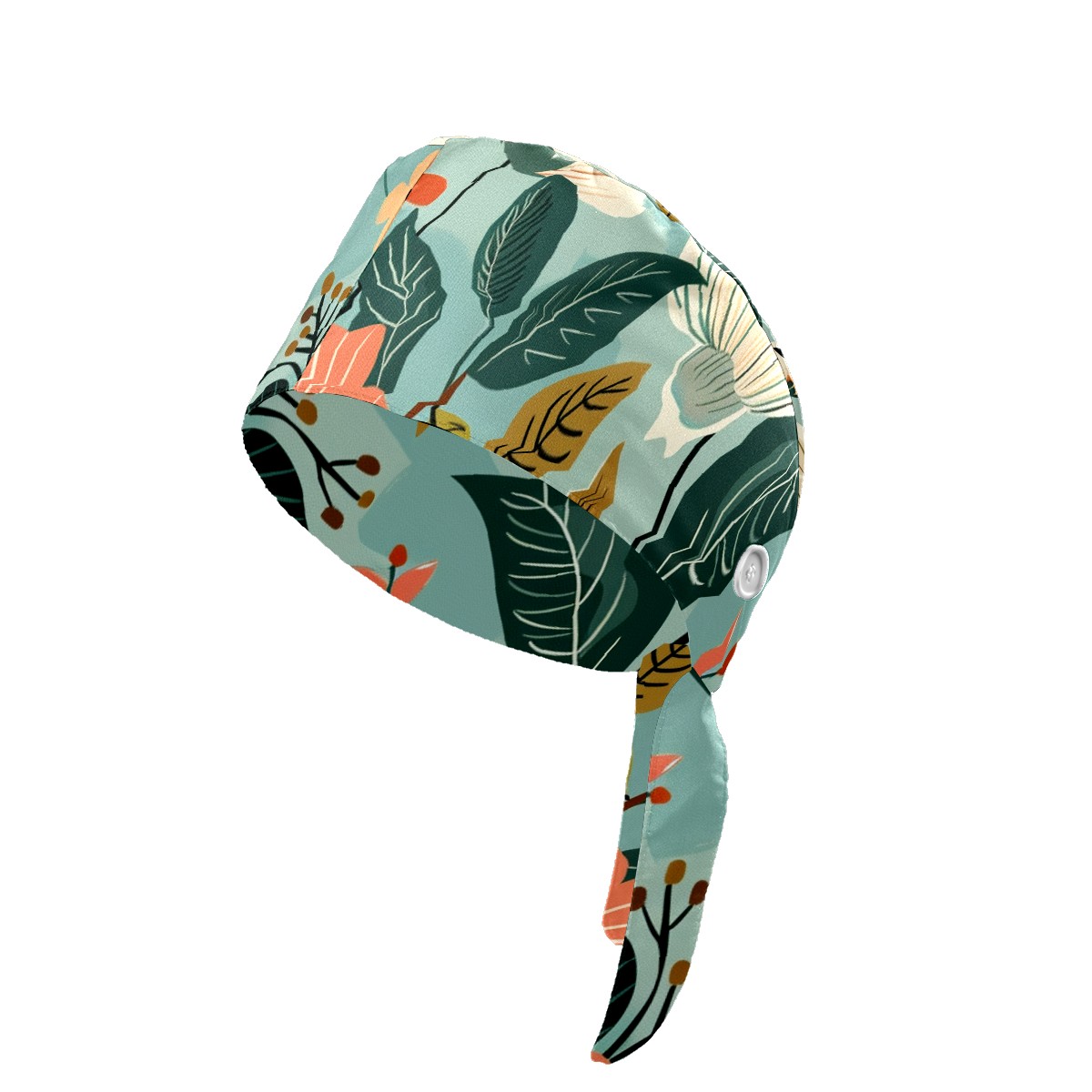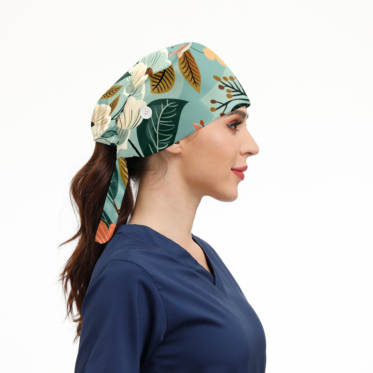Working Caps with Button & Sweatband Satin Lined Cotton Adjustable Nurse Hats Elastic Band Scrub Cap Surgeon Hat White Lotus