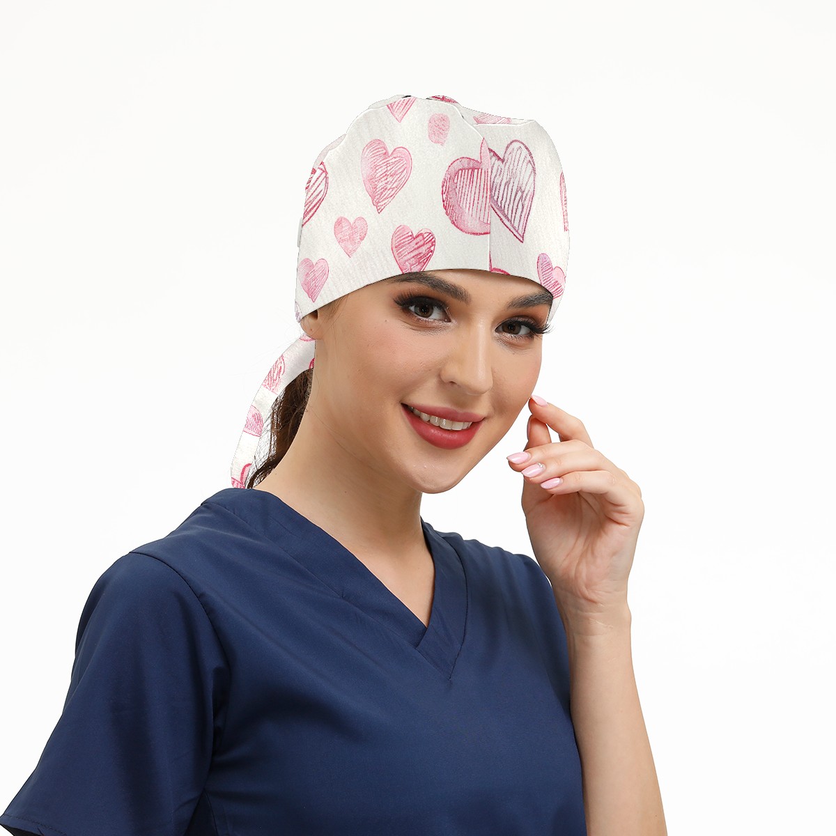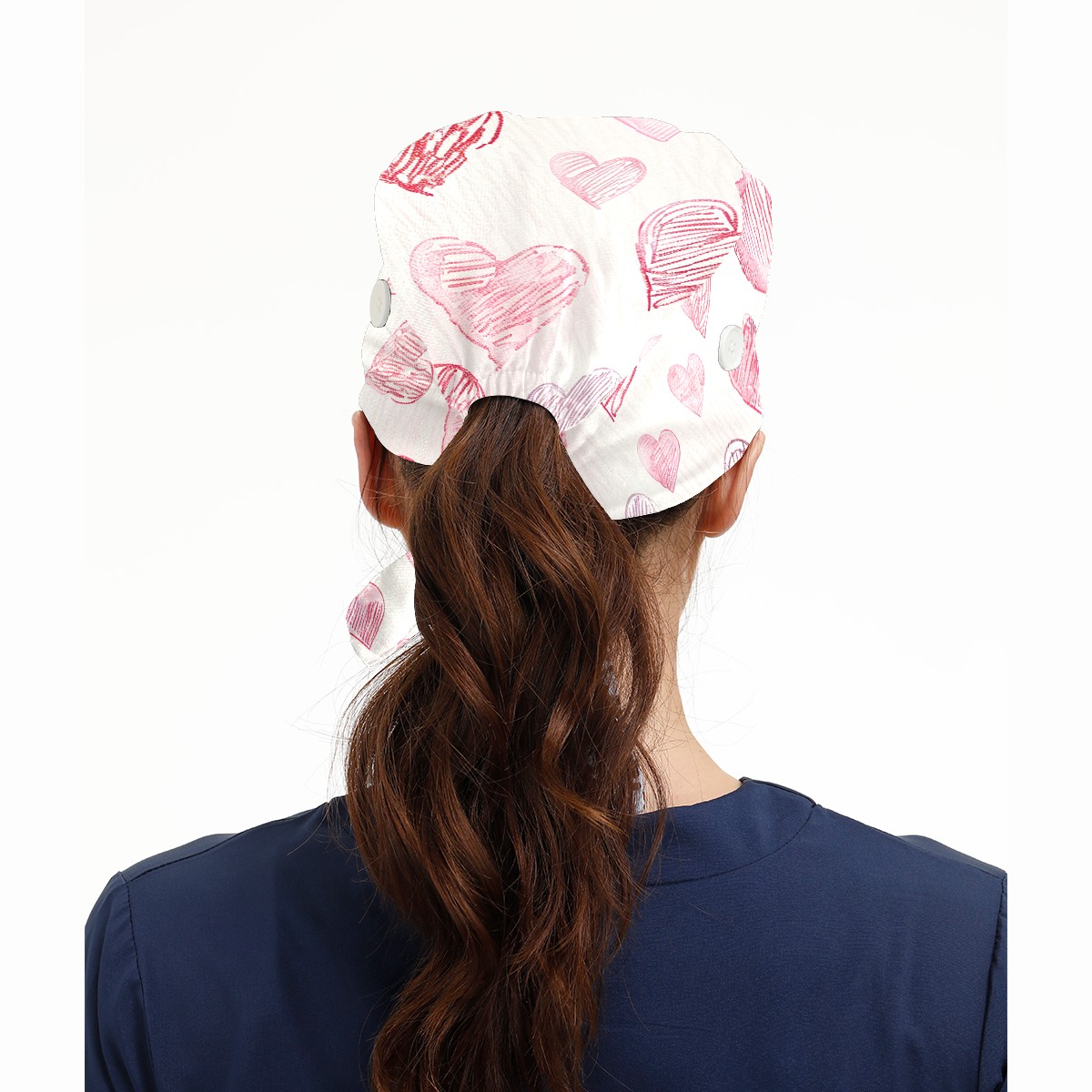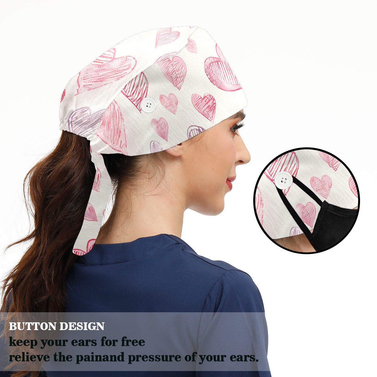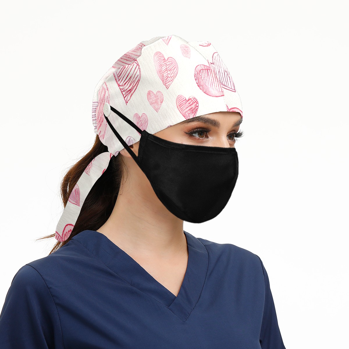 Working Caps with Button & Sweatband Satin Lined Cotton Adjustable Nurse Hats Elastic Band Scrub Cap Surgeon Hat Love