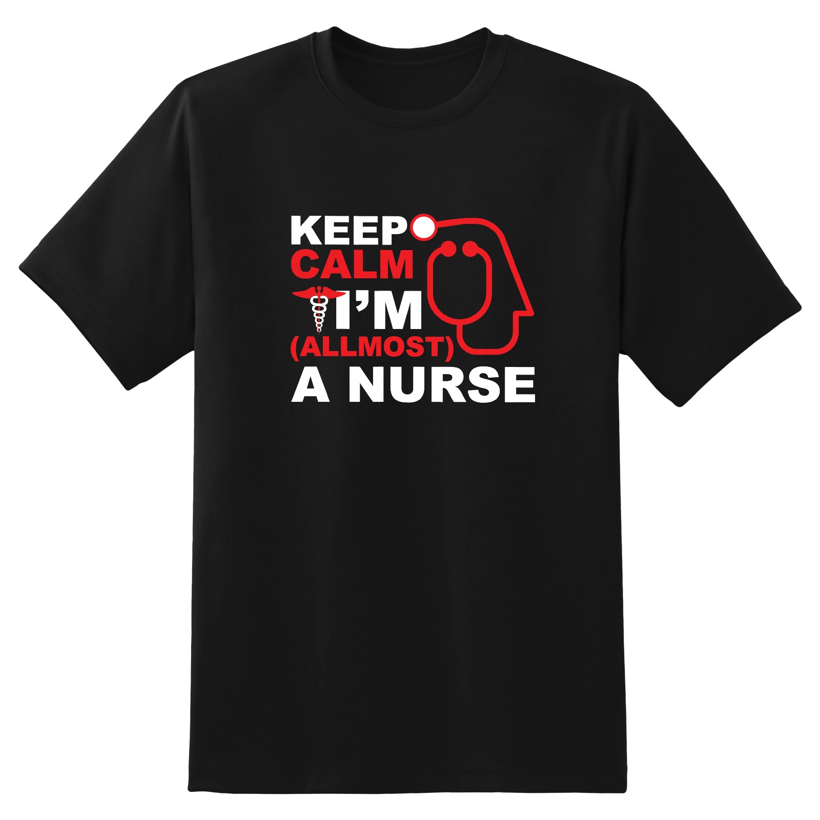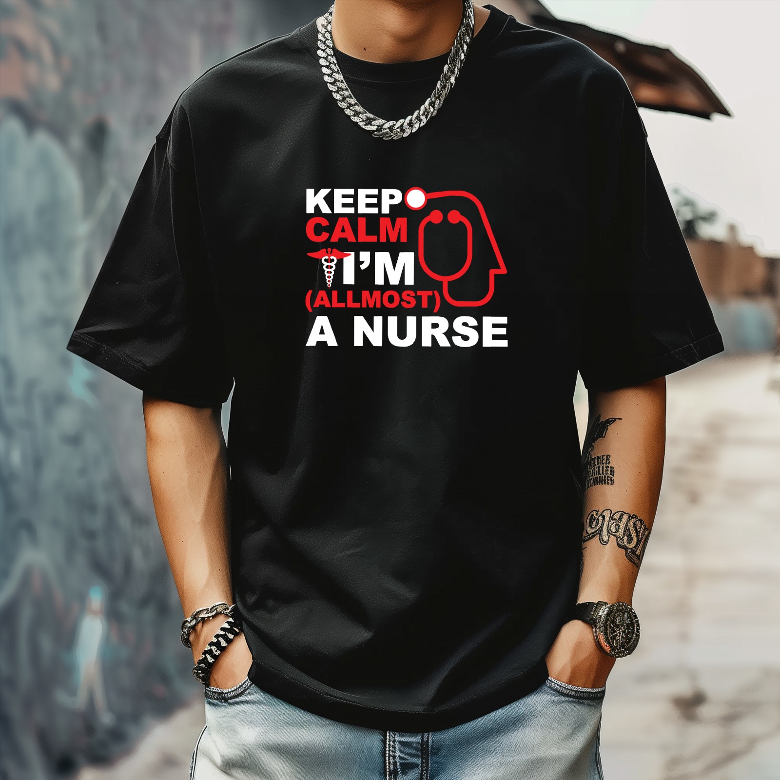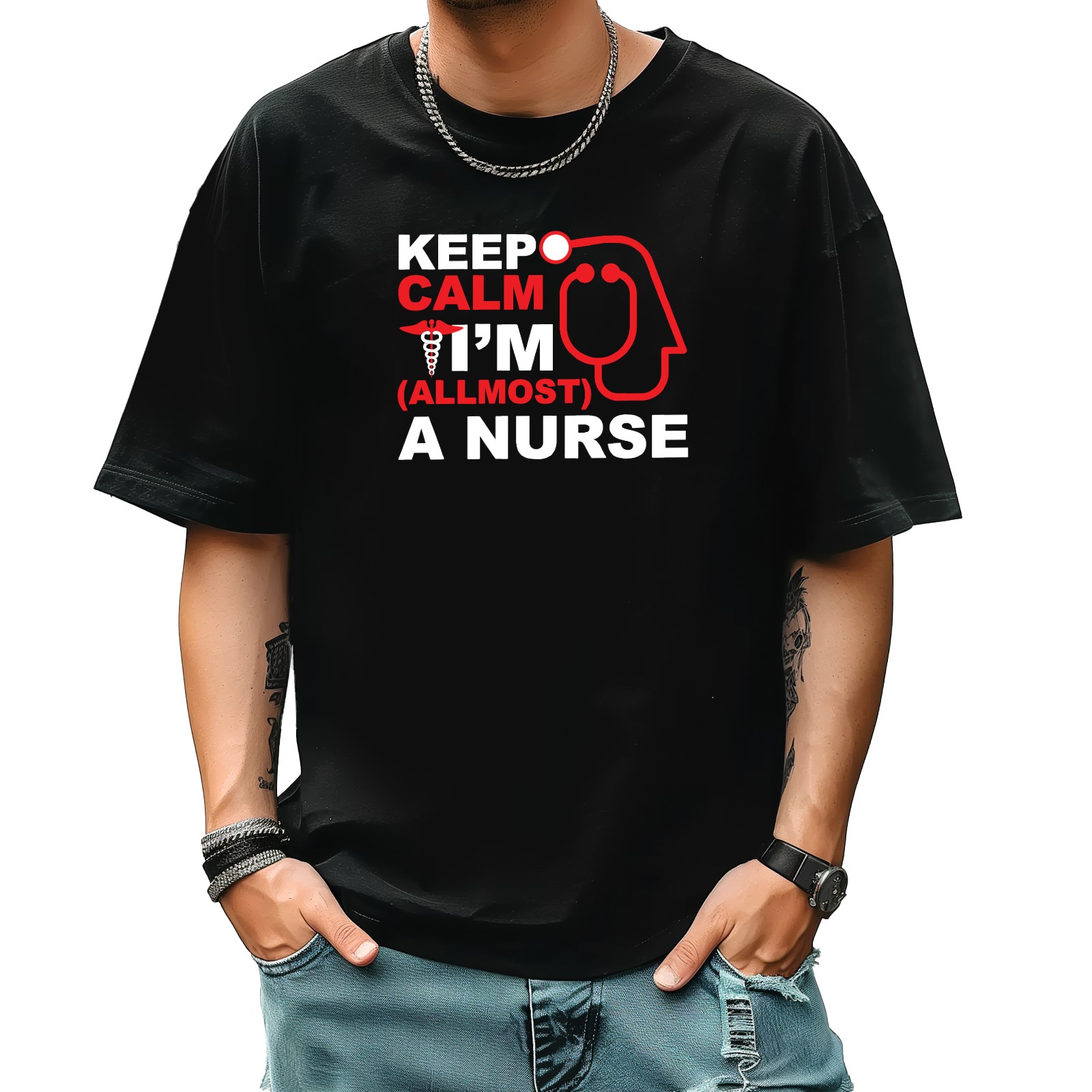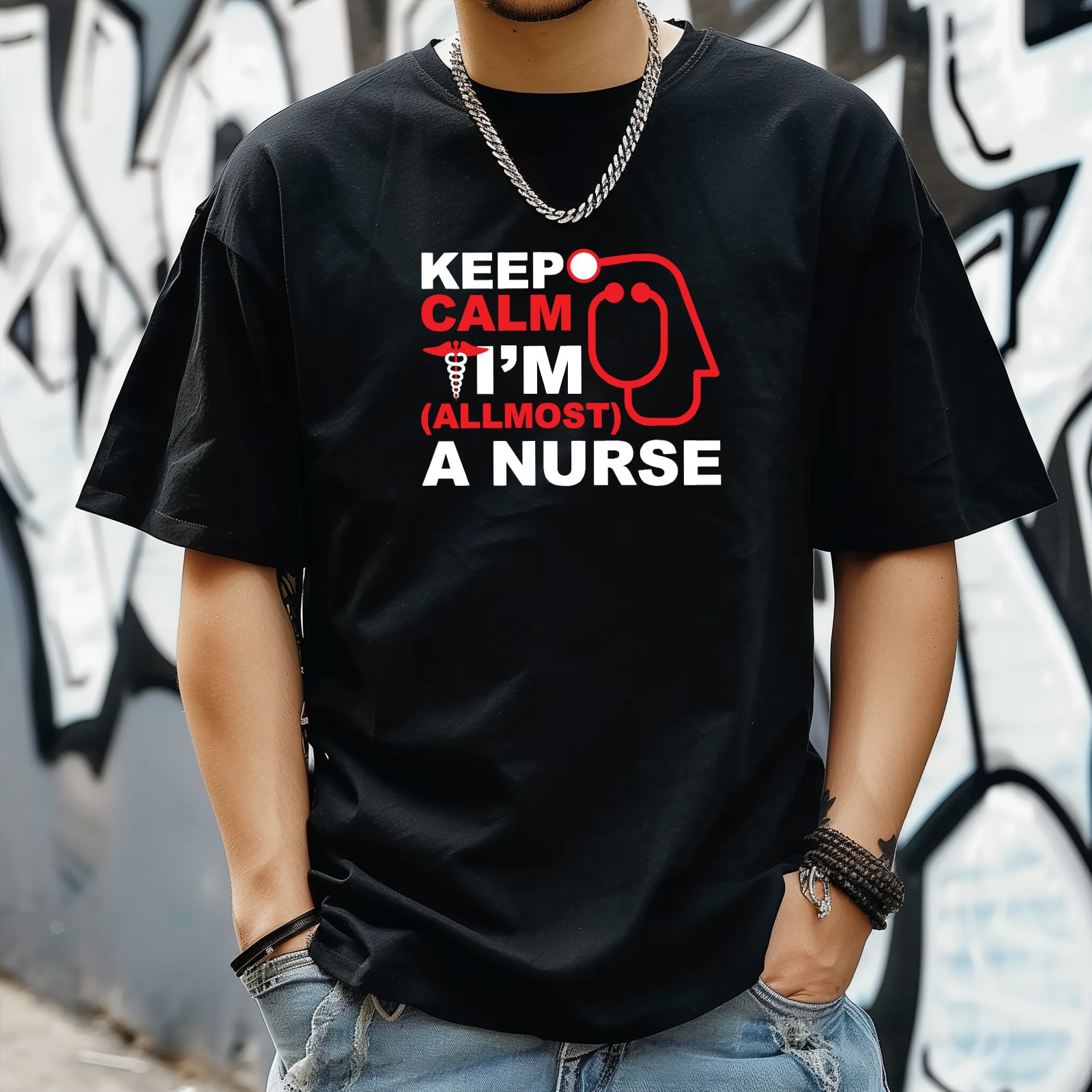 Keep Calm I'm Allmost A Nurse T-Shirt for Man Tops Short Sleeves Shirt Crew Neck Shirt XS