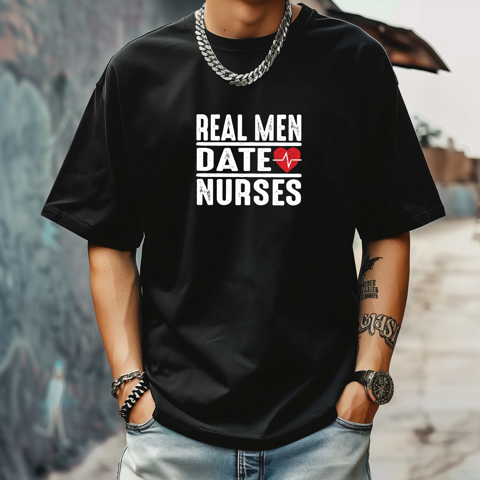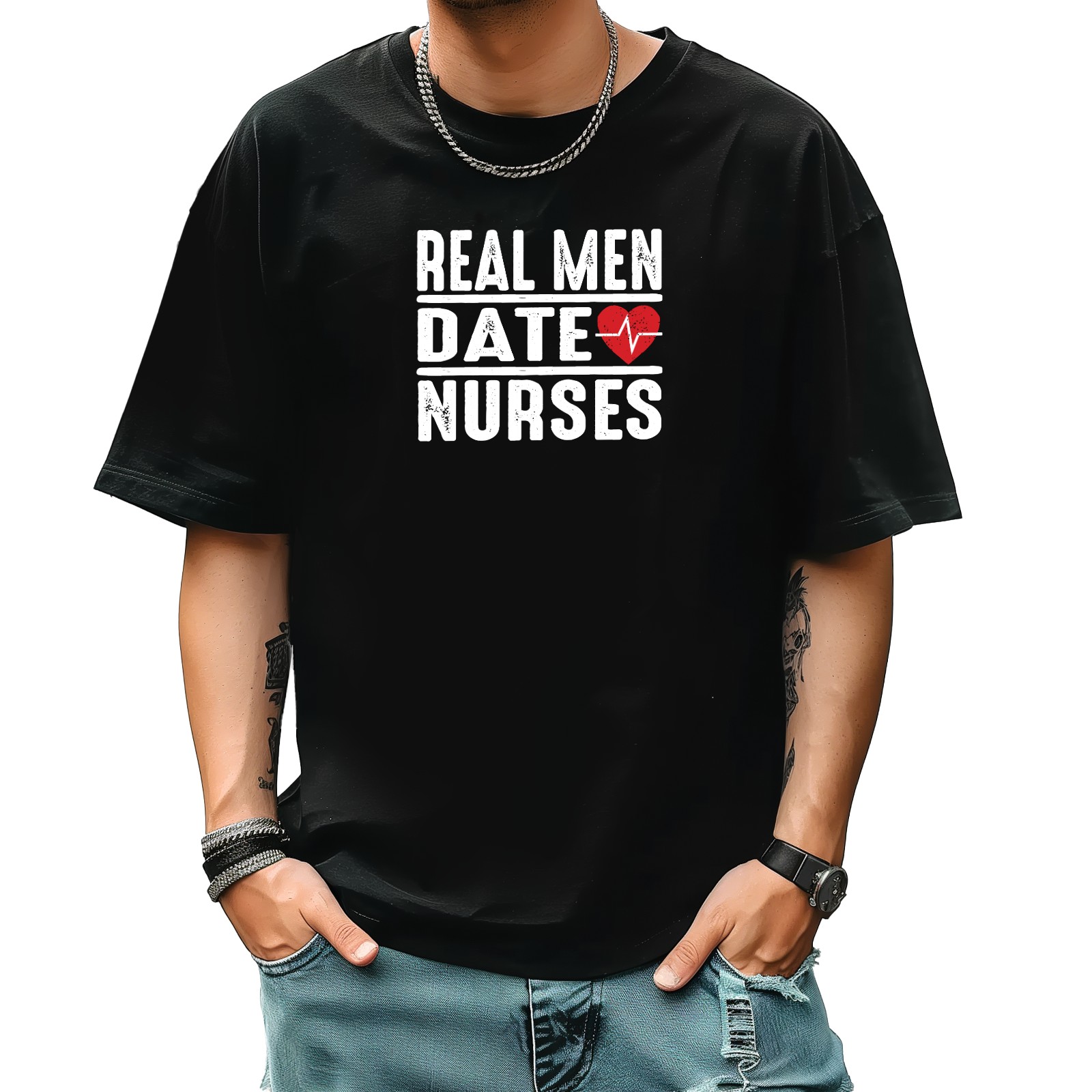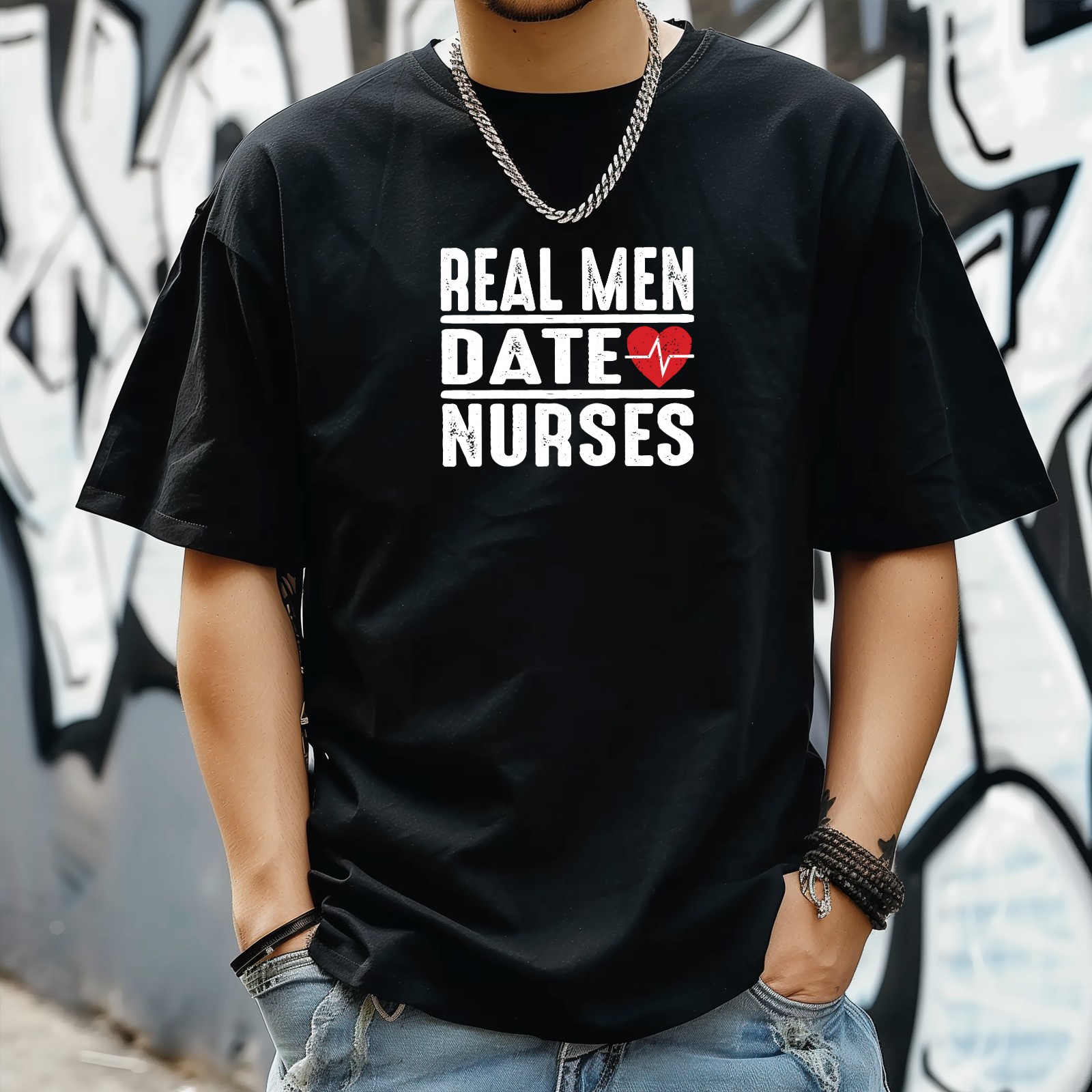 Real Men Date Nurses T-Shirt for Man Tops Short Sleeves Shirt Crew Neck Shirt XS