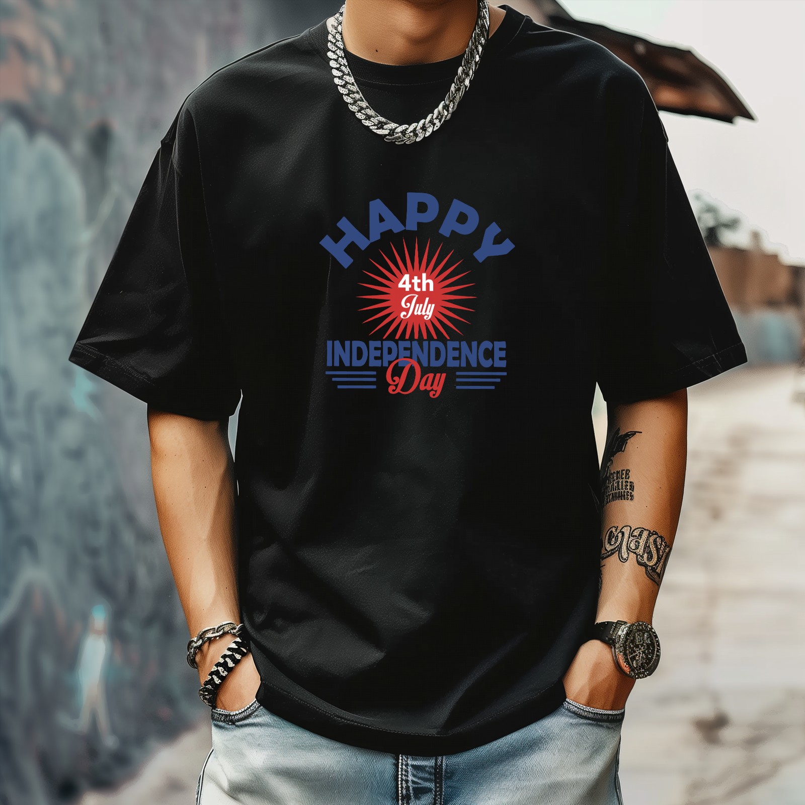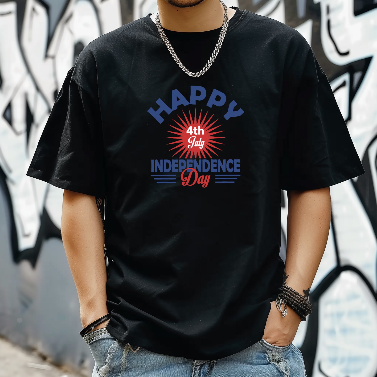 Independence Day Design T-Shirt for Man Tops Short Sleeves Shirt Crew Neck Shirt XS