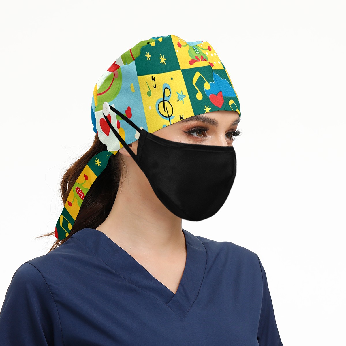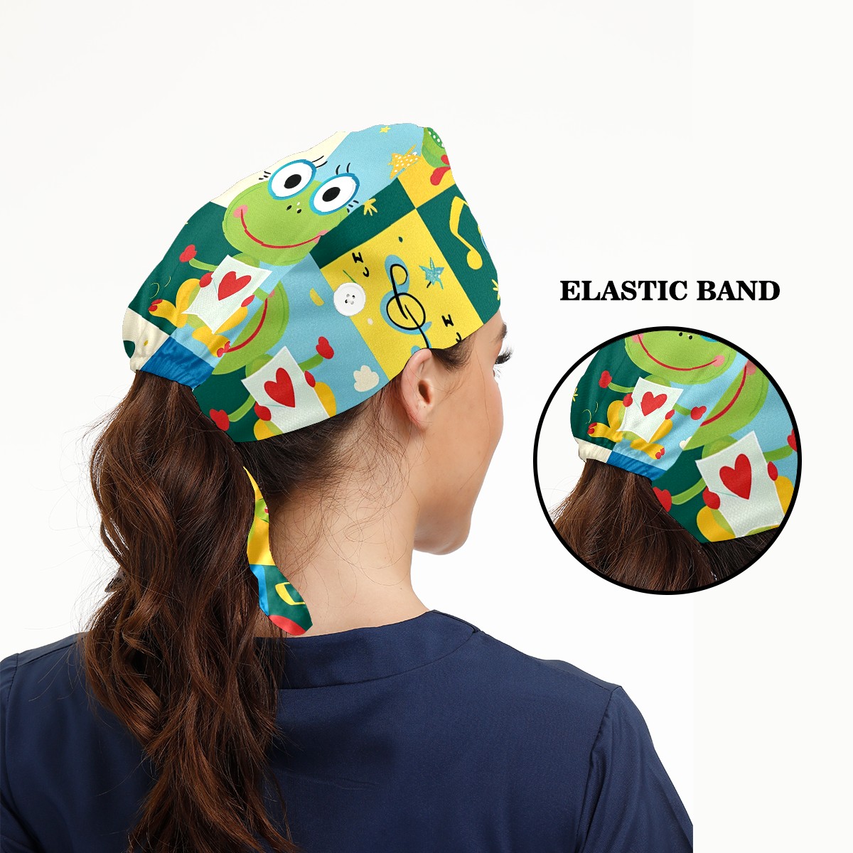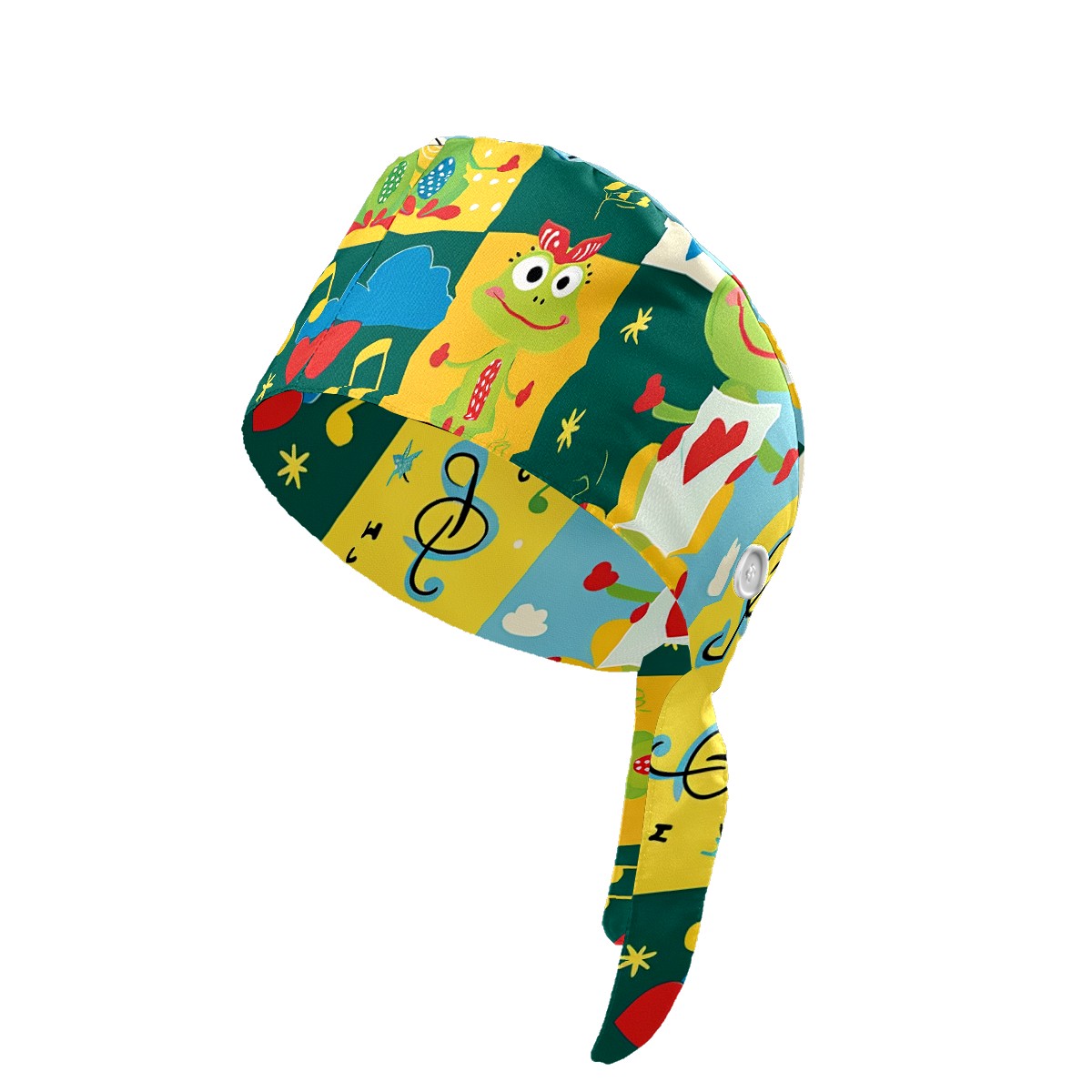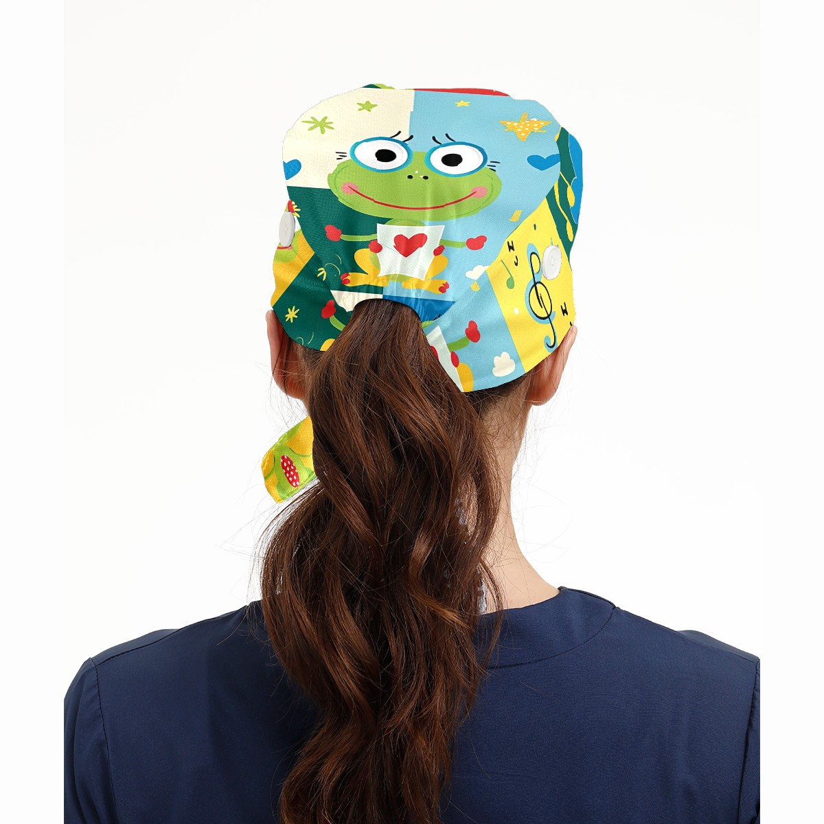 Working Caps with Button & Sweatband Satin Lined Cotton Adjustable Nurse Hats Elastic Band Scrub Cap Surgeon Hat Frog